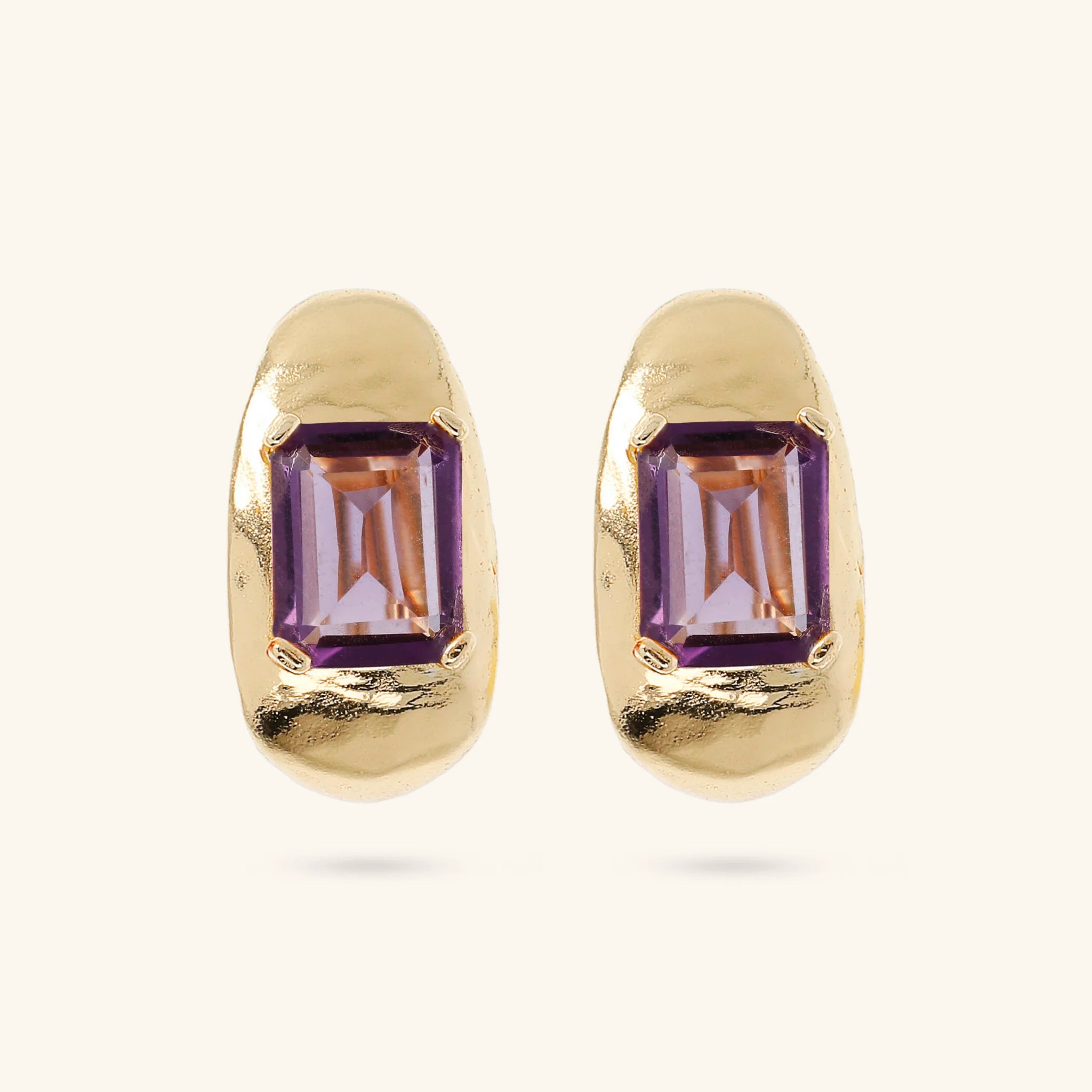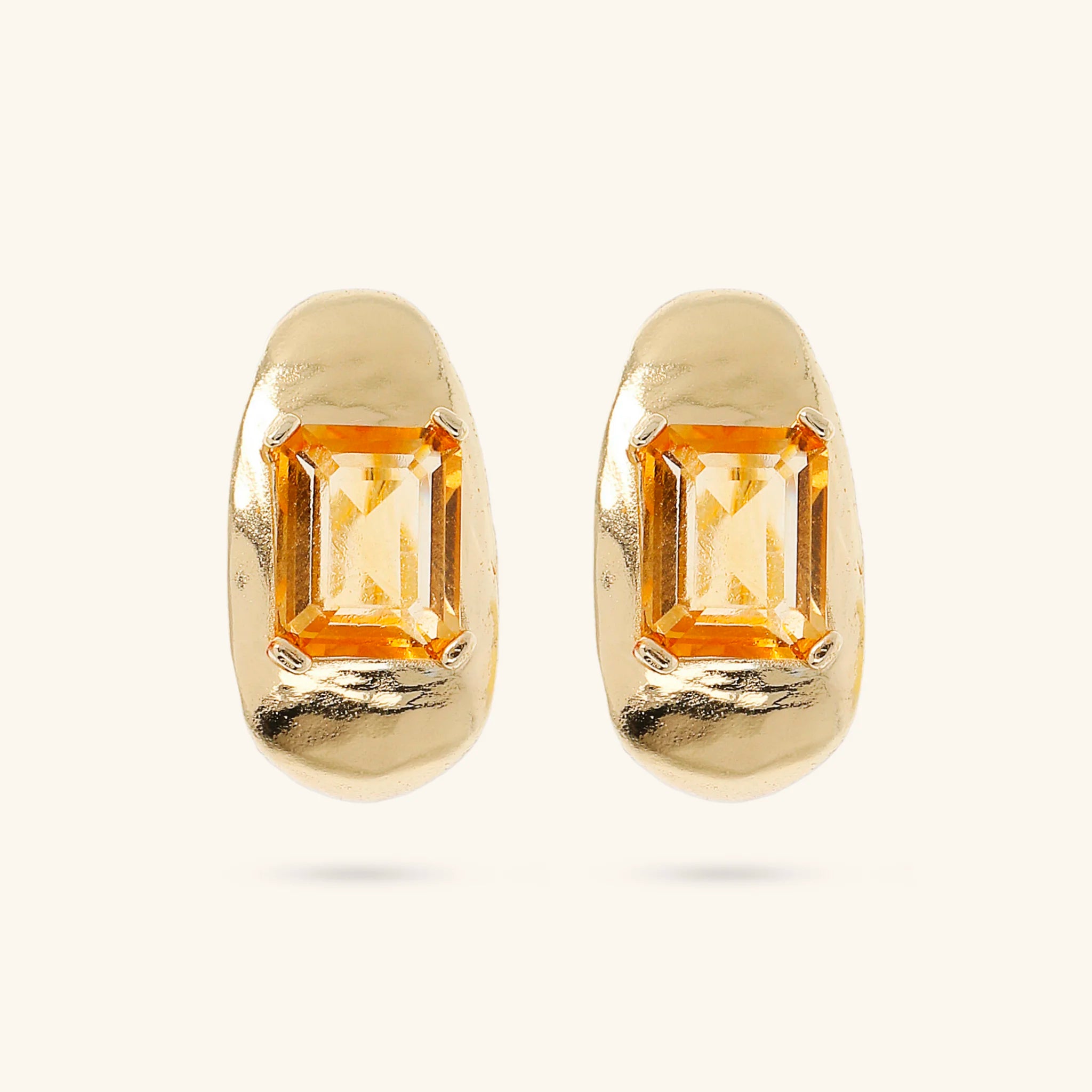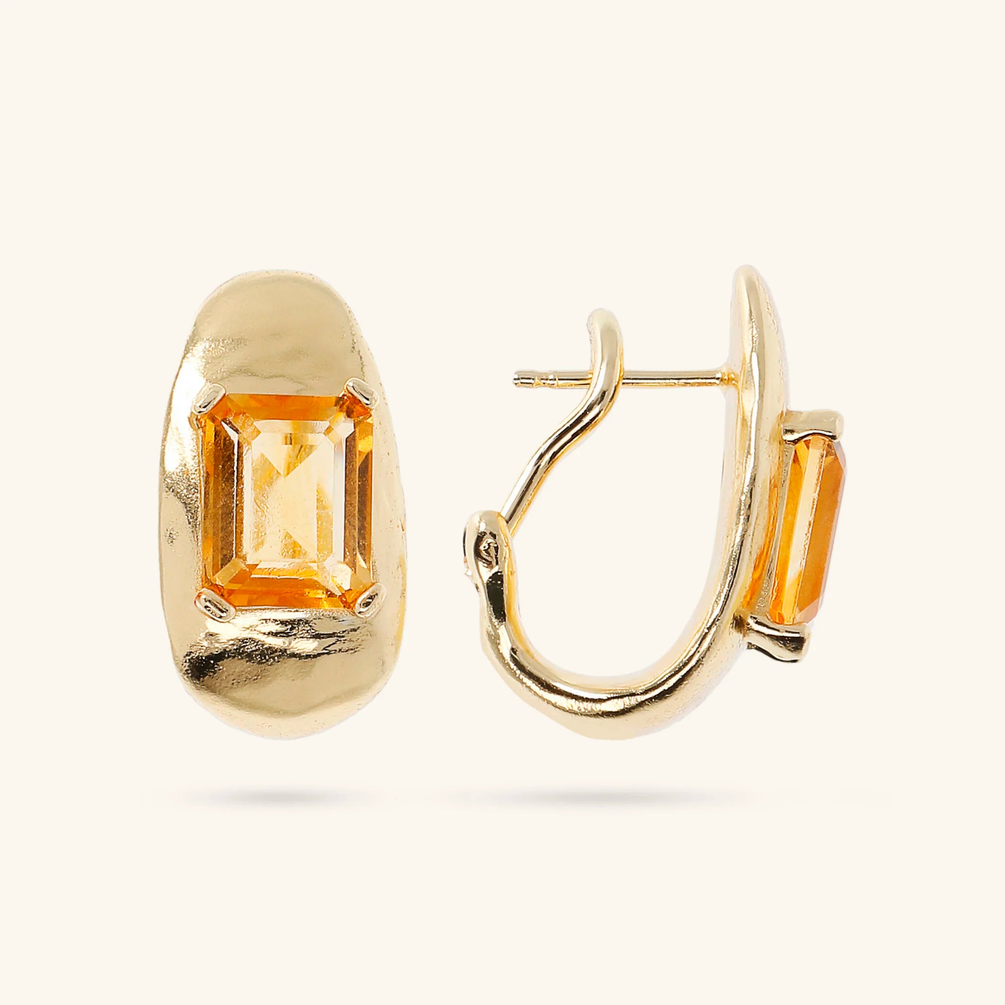 Ohrringe von Etrusca Gioielli, aus einer Gold-Legierung, 18 Karat Gelbgold plattiert, ovale Form mit zentralem Naturstein; Stift- und Clipverschluss.
