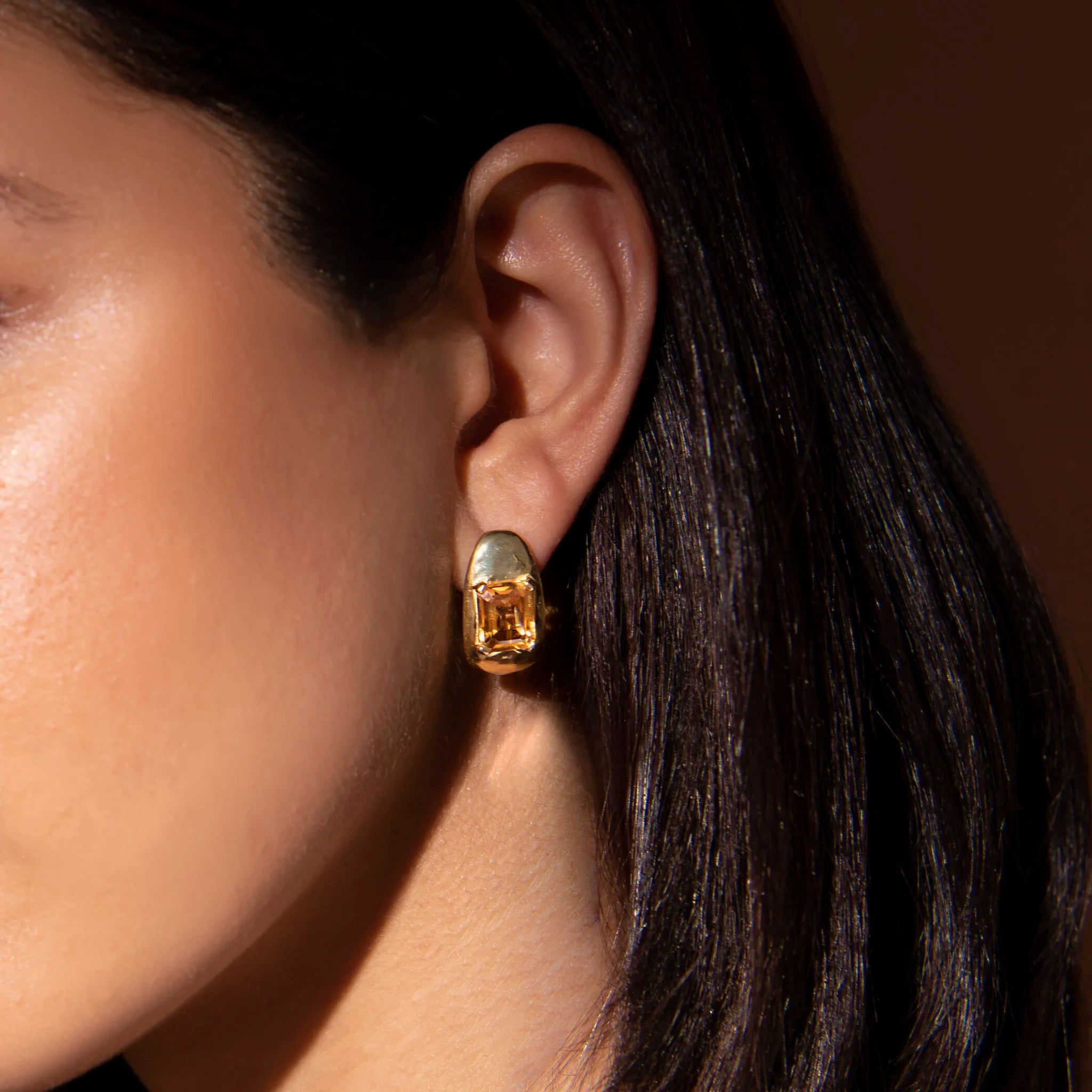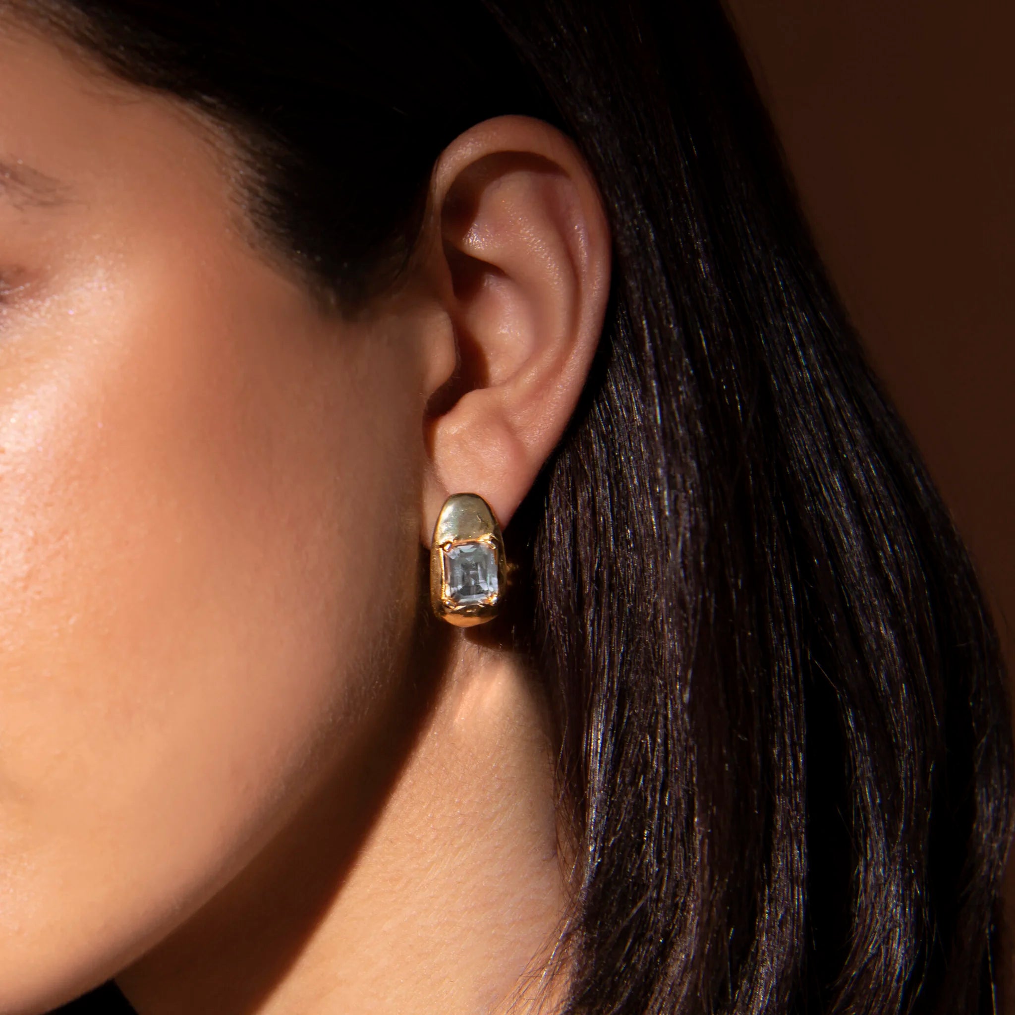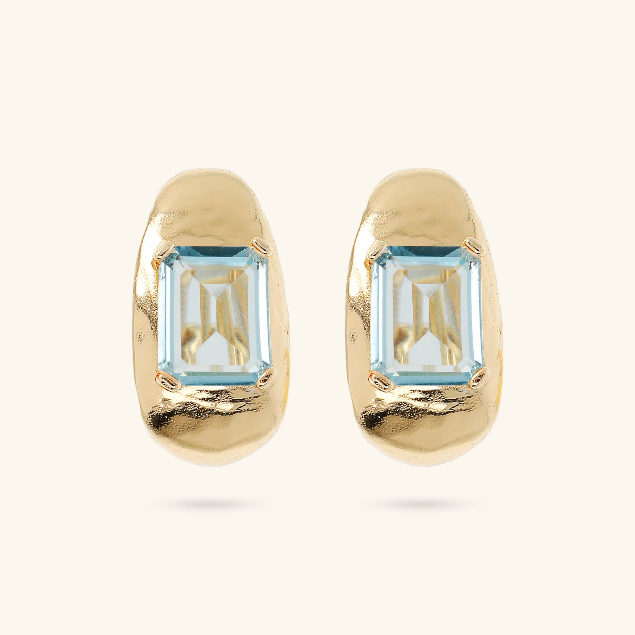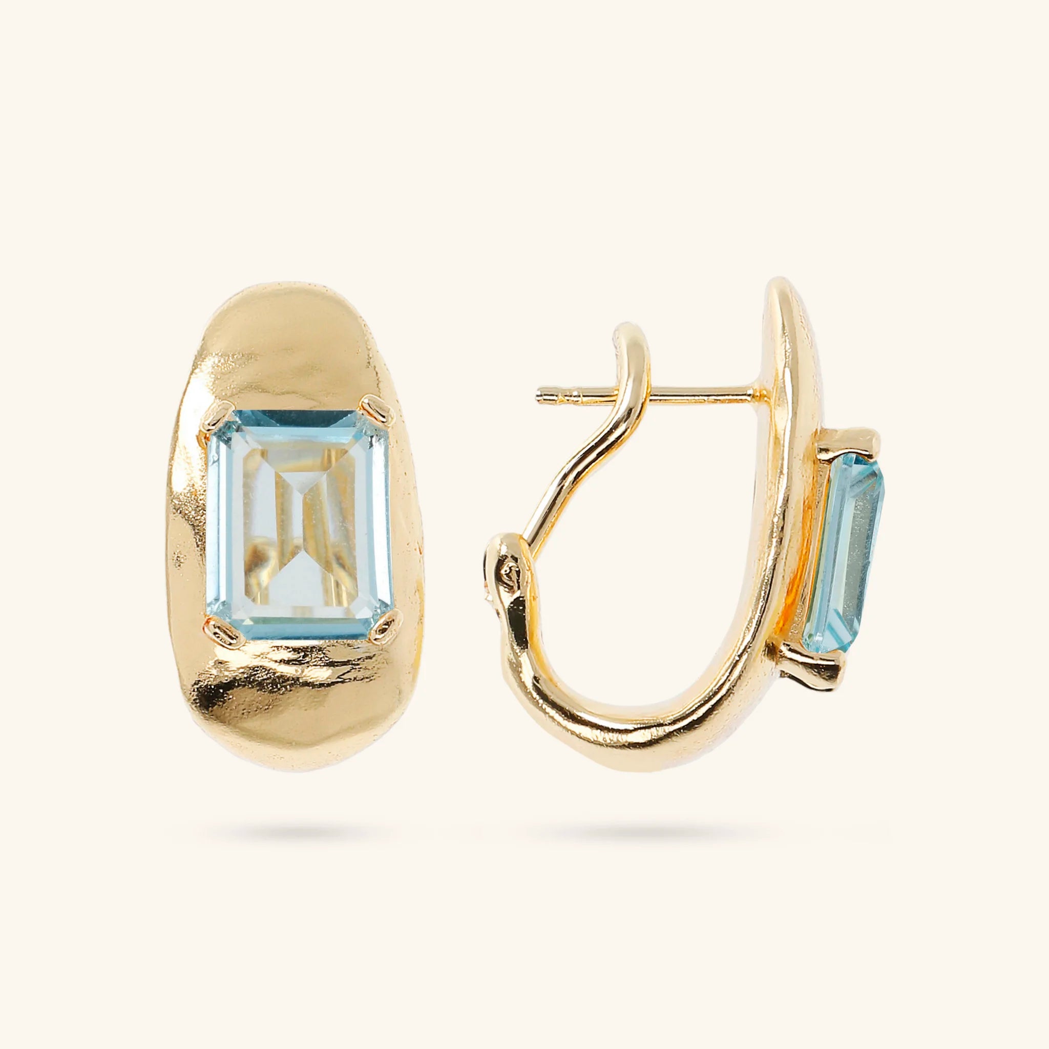 Ohrringe von Etrusca Gioielli, aus einer Gold-Legierung, 18 Karat Gelbgold plattiert, ovale Form mit zentralem Naturstein; Stift- und Clipverschluss.