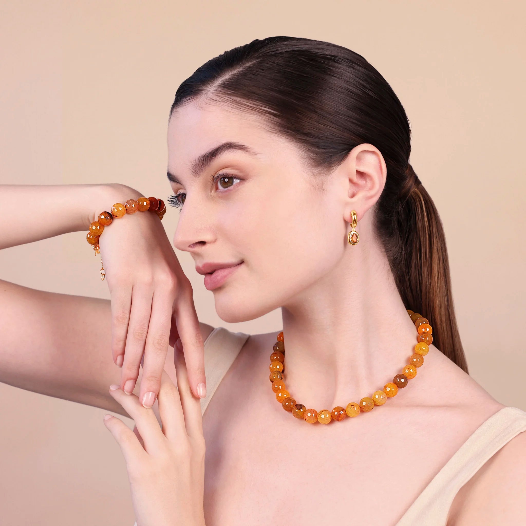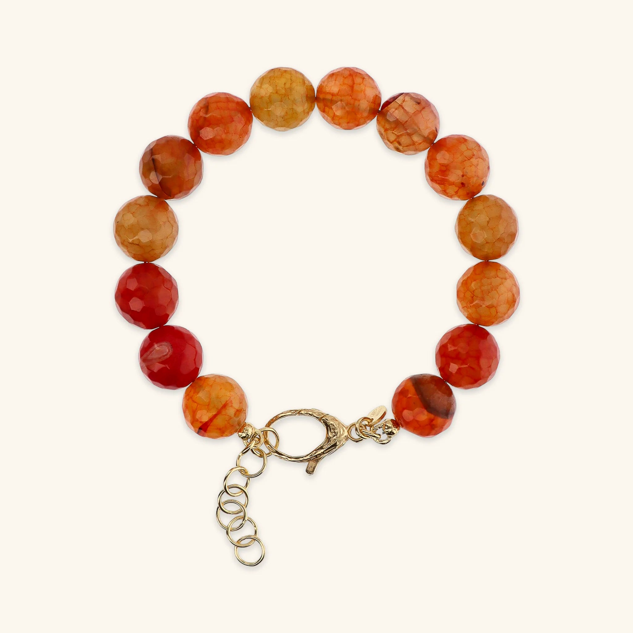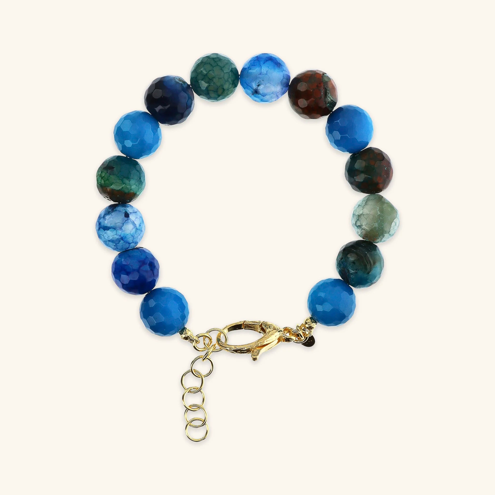 18Kt Yellow Gold Plated 925 Silver Bracelet with Faceted Agate Natural Stone
