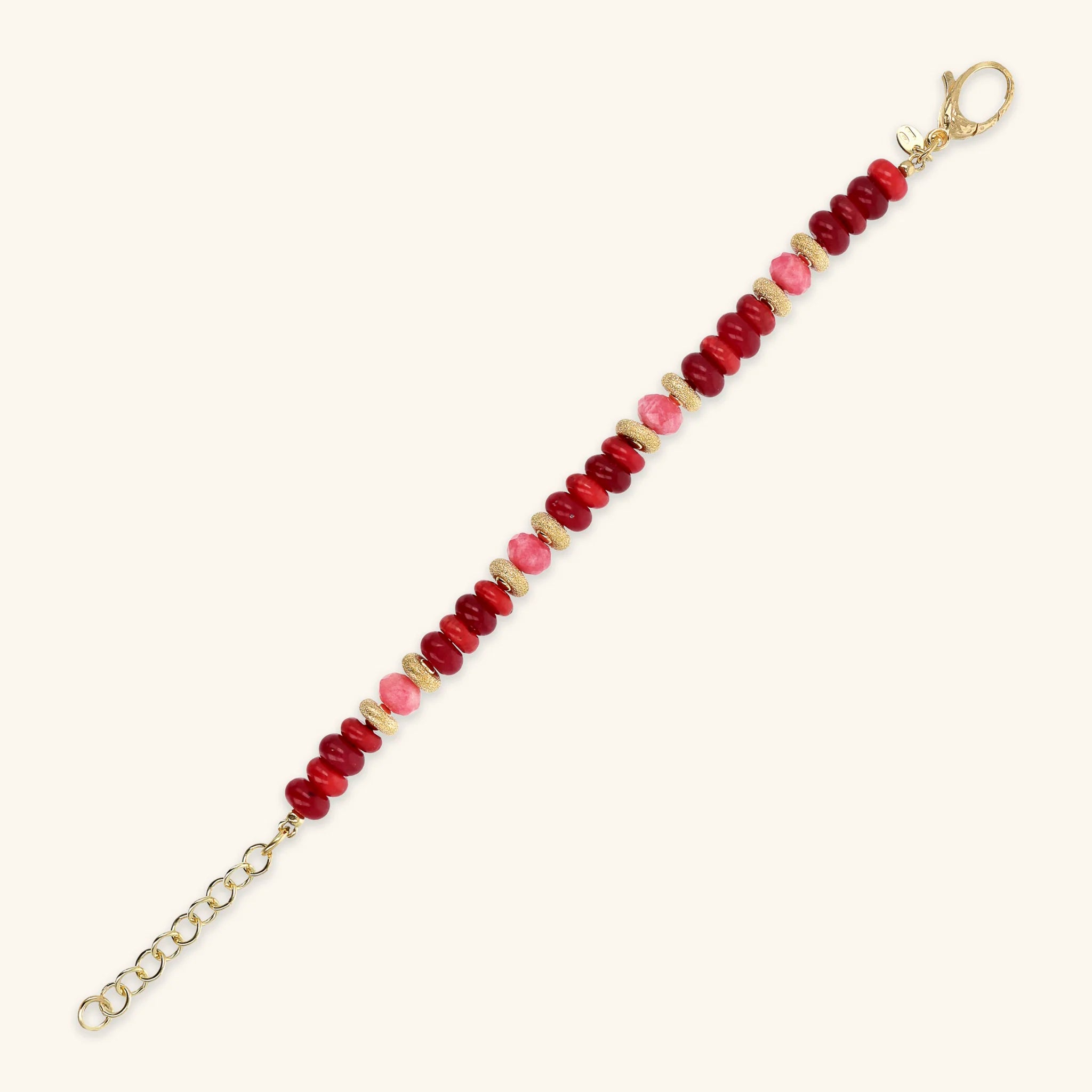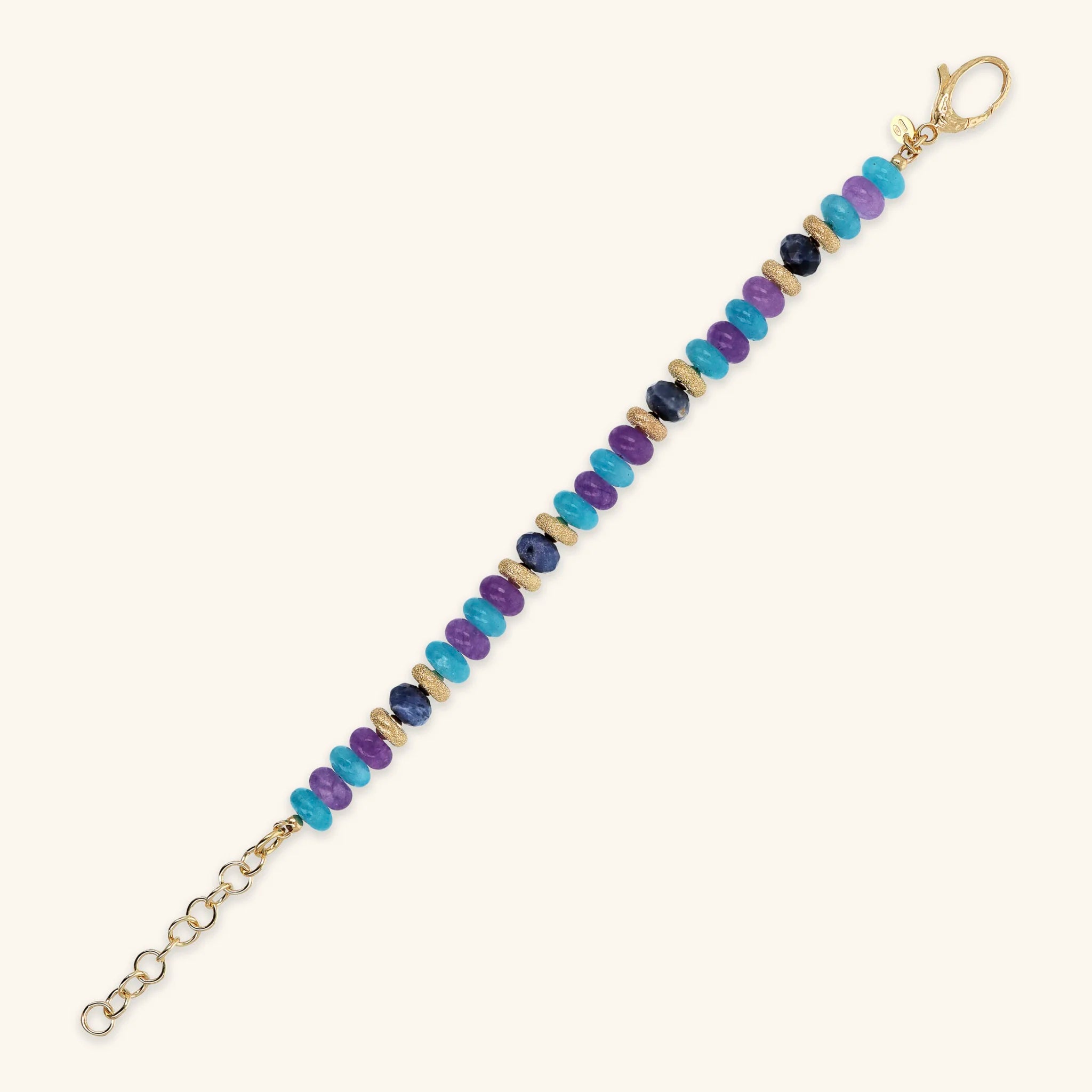 18Kt Yellow Gold Plated 925 Silver Bracelet with Worked Rondelle and Natural Stones