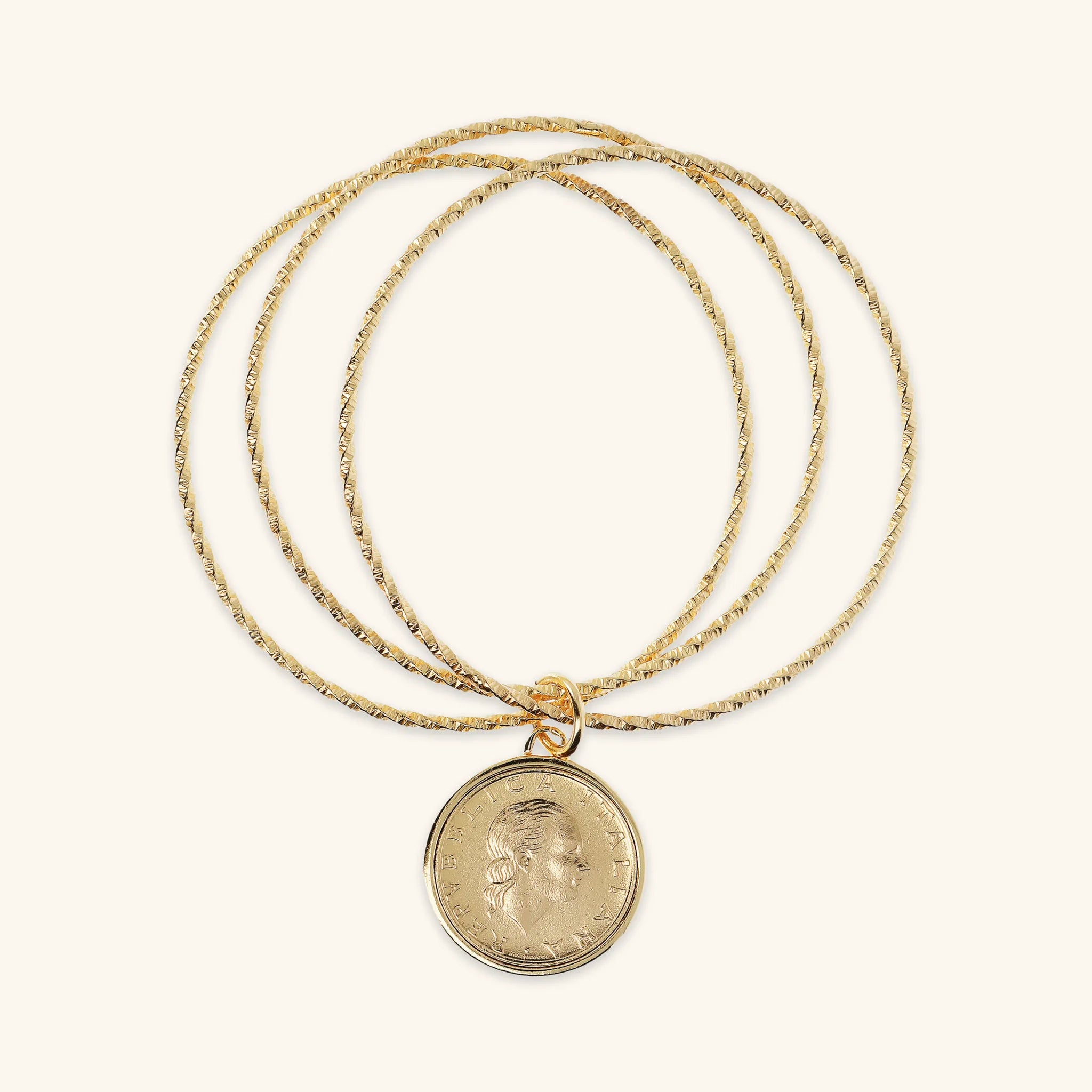 Multi-strand Rigid Bracelet with Original Coin Pendant