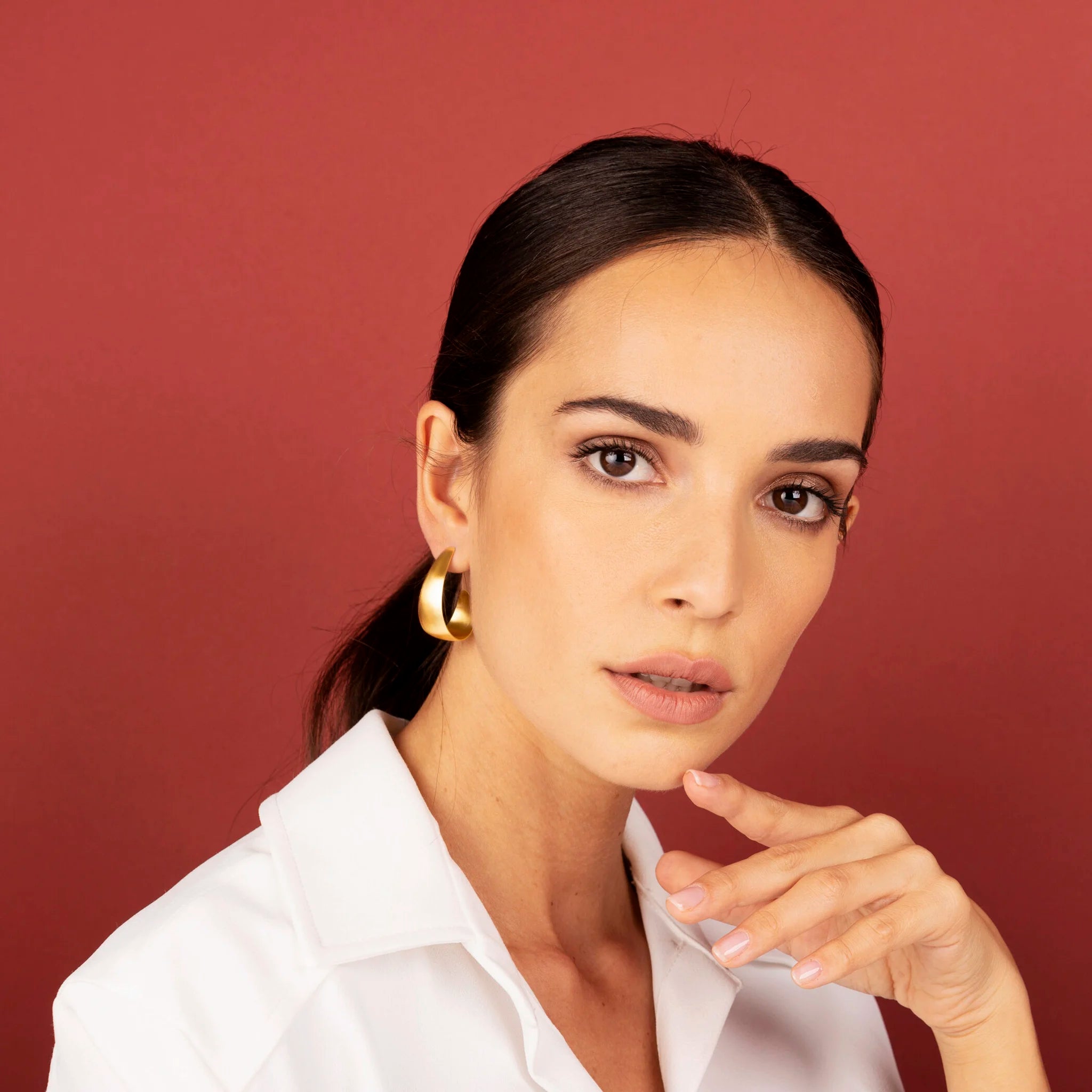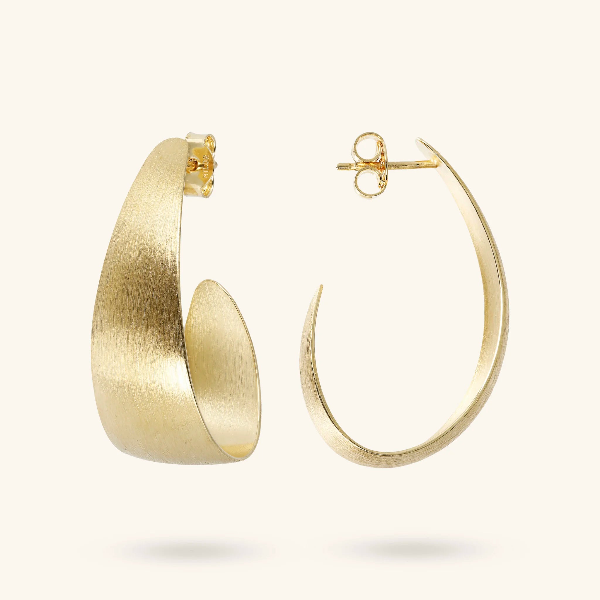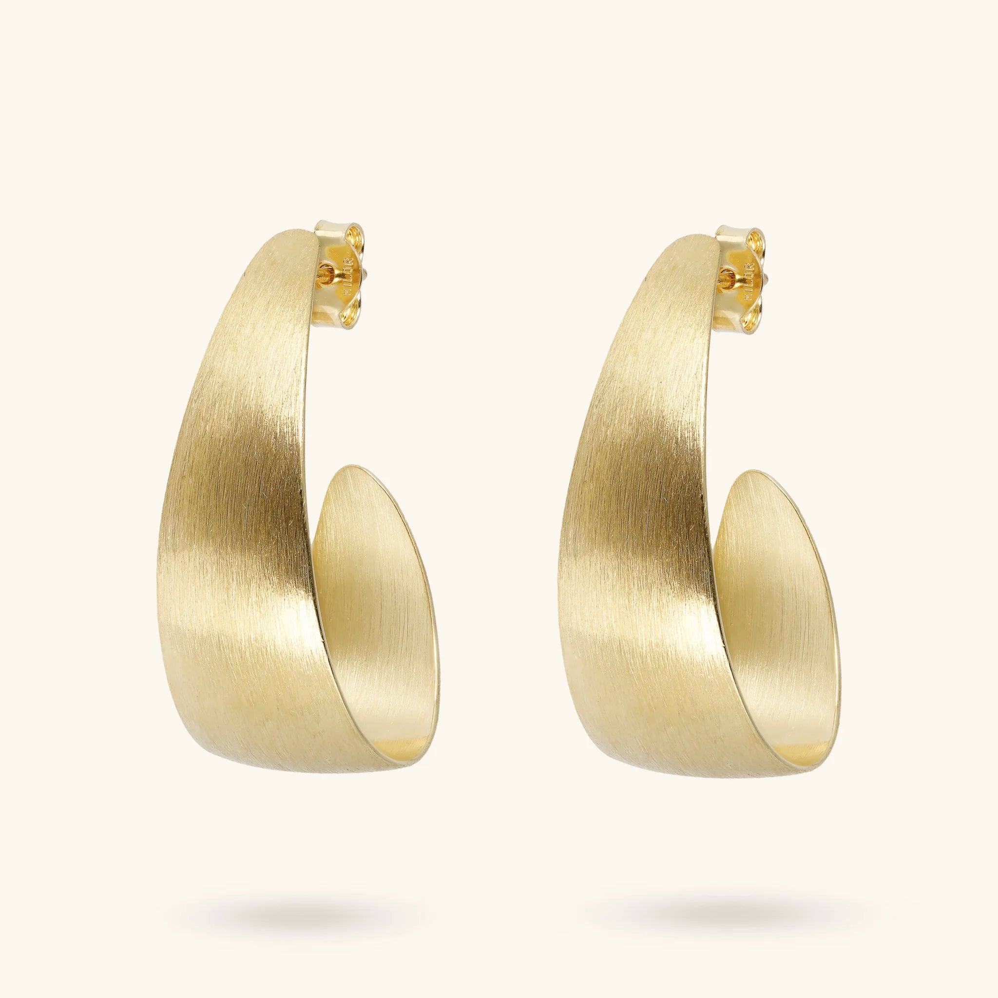 Etrusca Gioielli pendant earrings mounted on a Golden base, 18kt yellow gold plated, embellished with a curl design with a satin surface, velvet effect; stud and butterfly closure; length of 3.6cm.