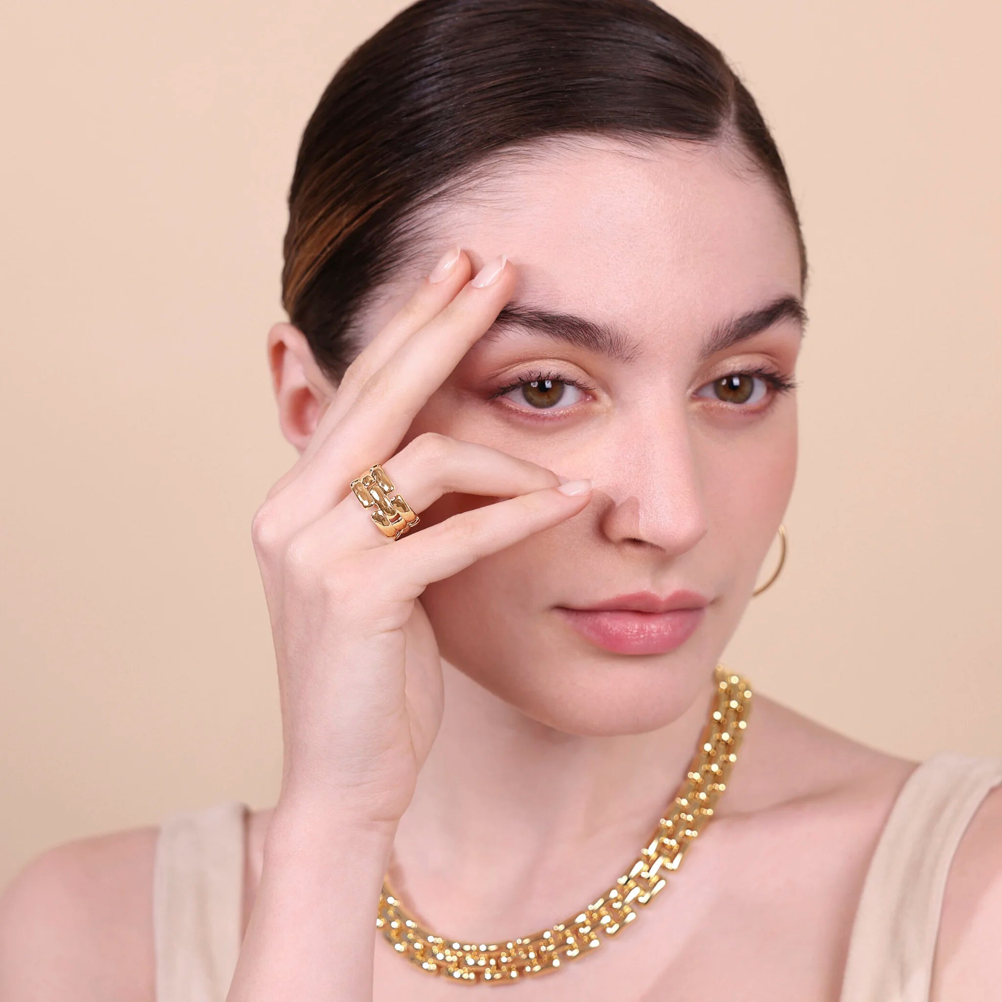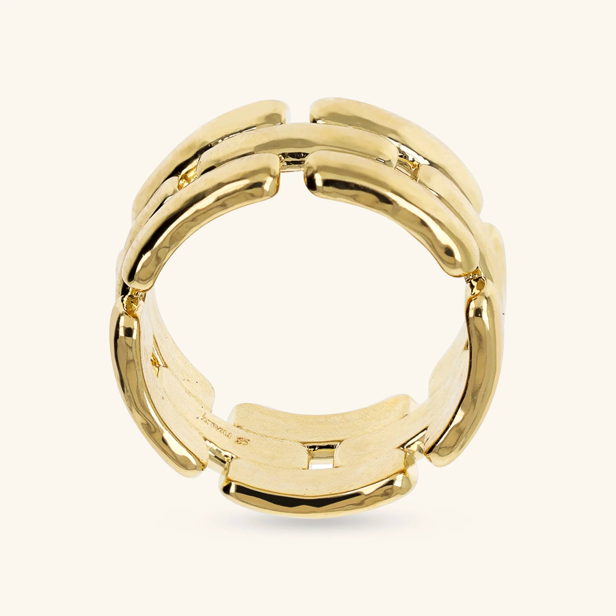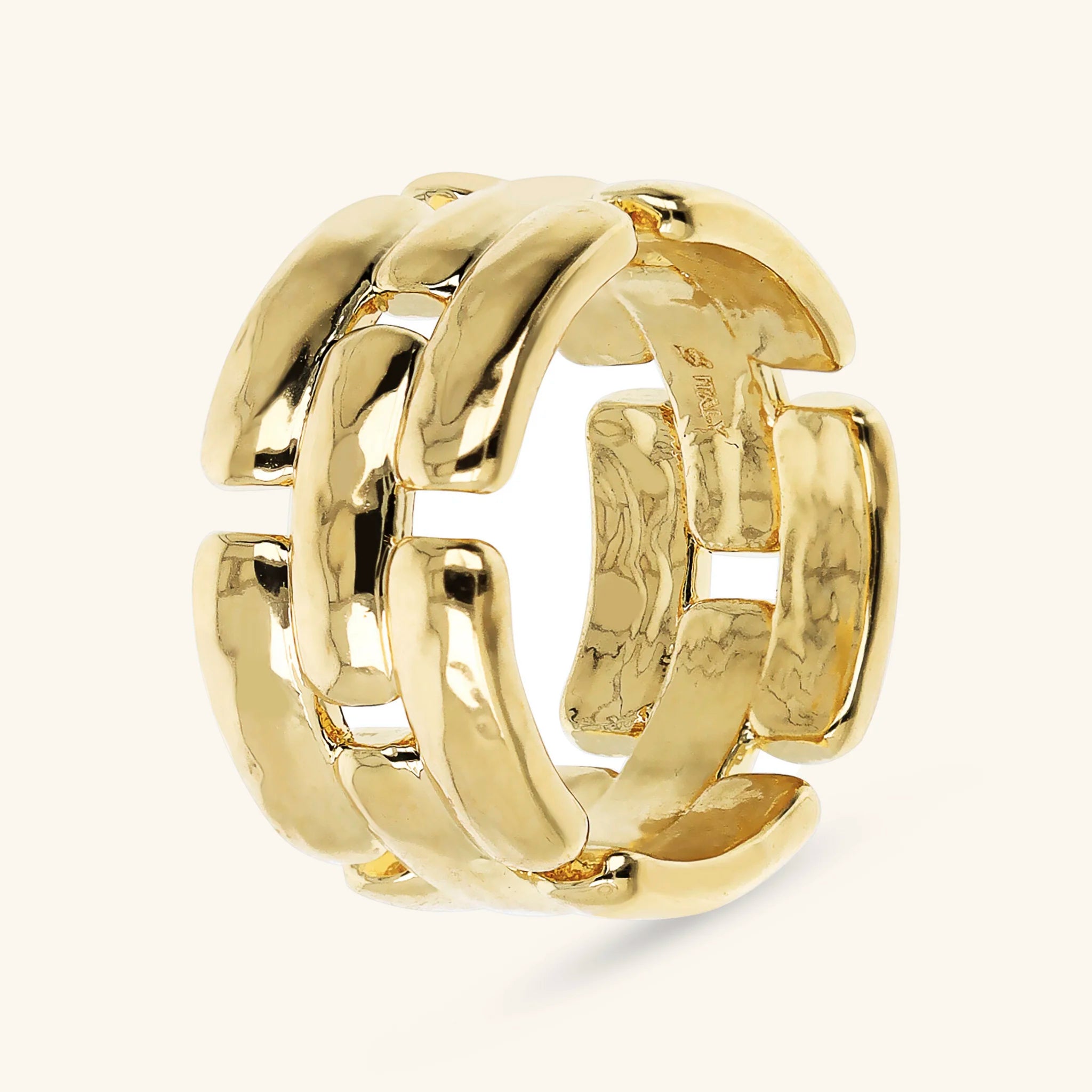 Band ring mounted on a Golden base, 18kt yellow gold plated, with hammered panther link.