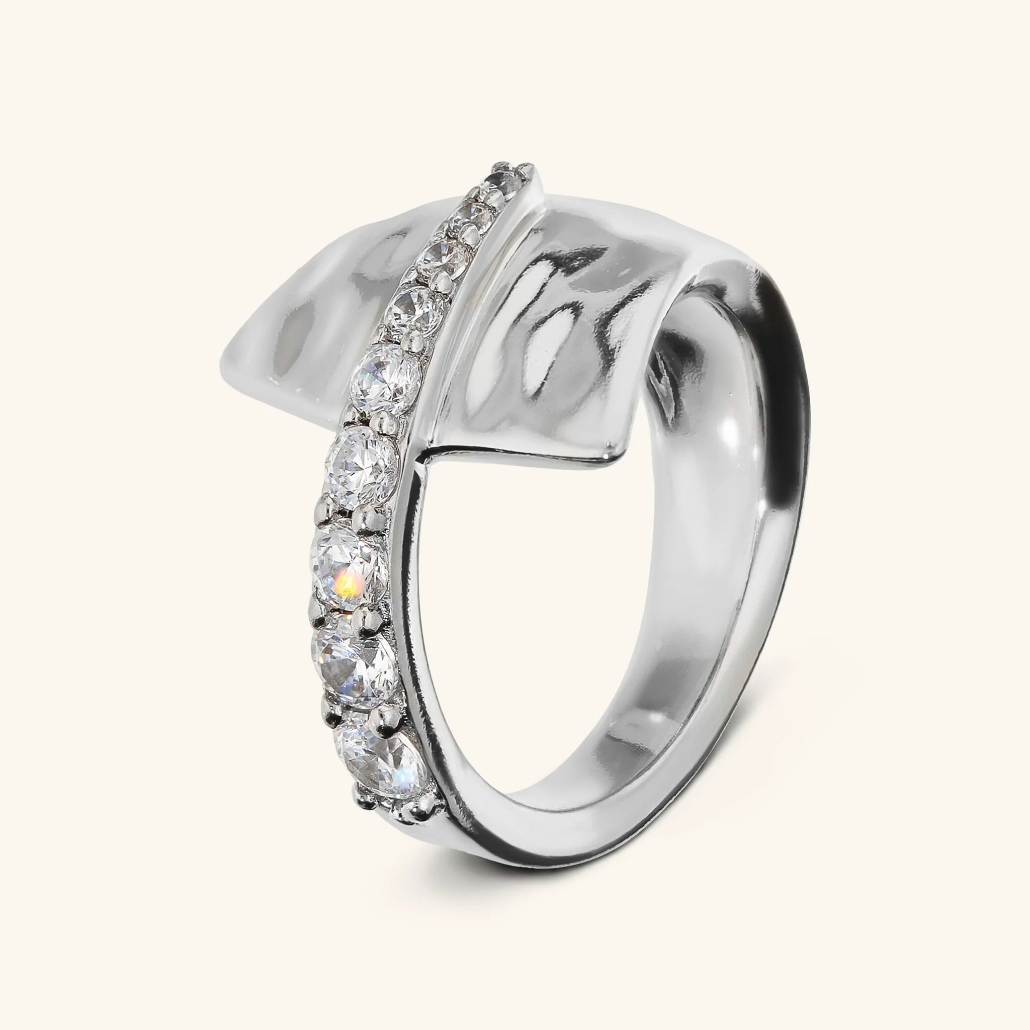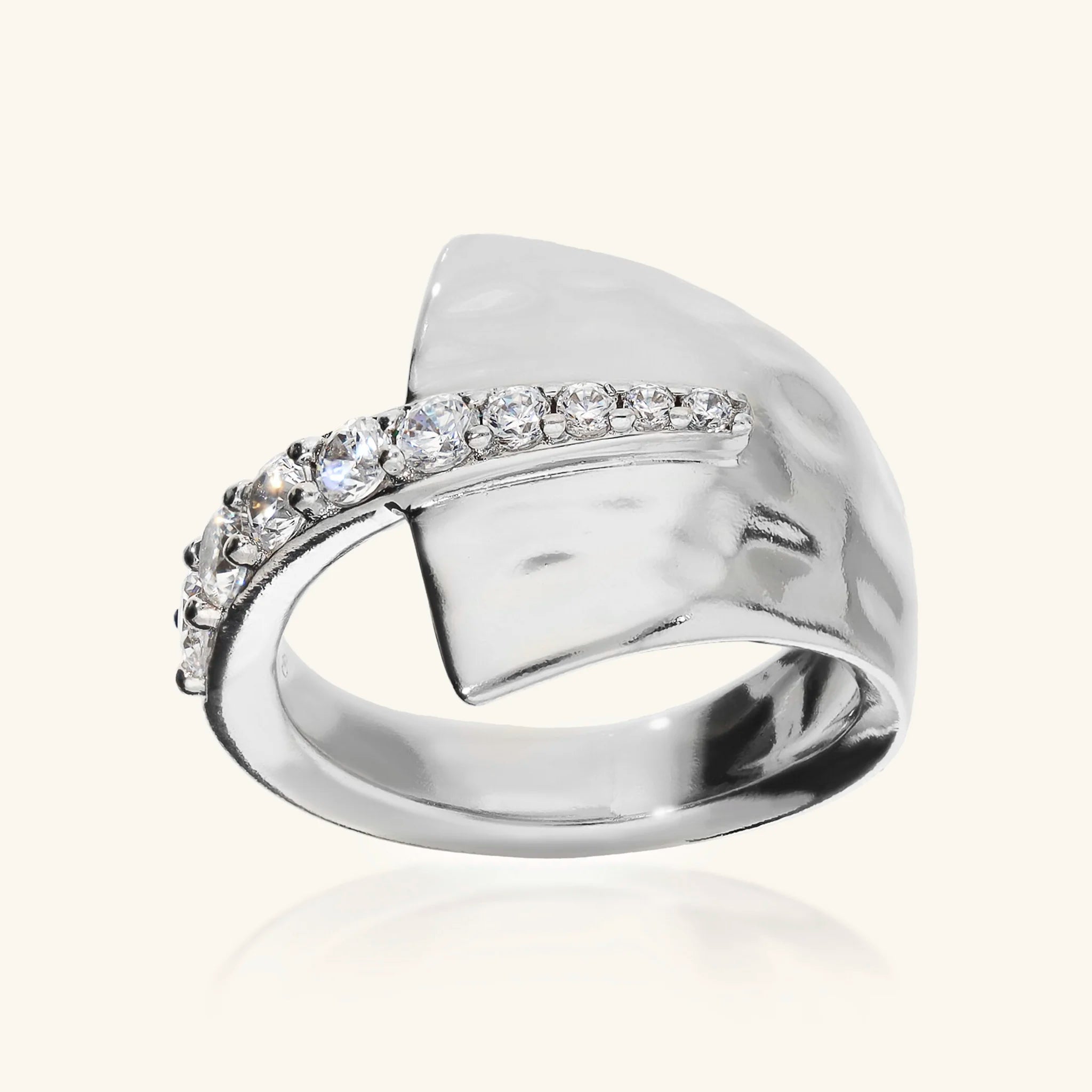 Hammered Reversible Ring with Cubic Zirconia Pavé