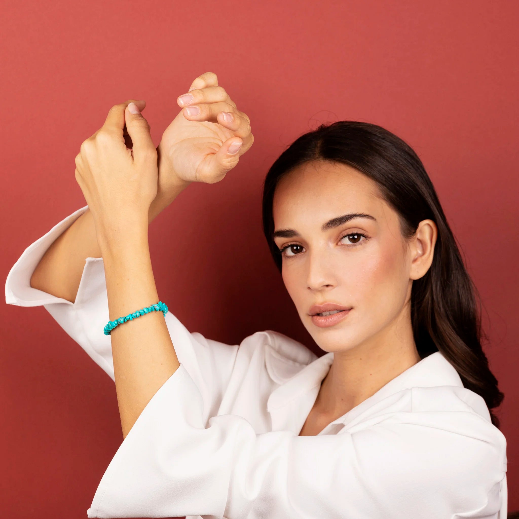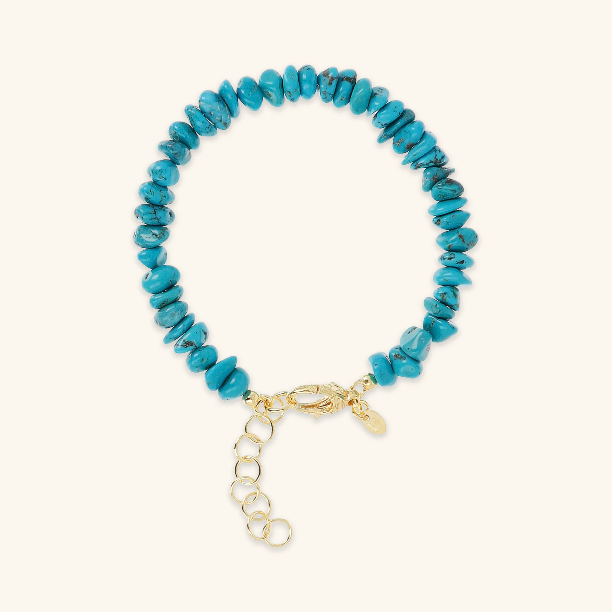 Etrusca Gioielli bracelet in 925 silver, 18kt yellow gold plated, embellished with small irregularly shaped turquoise; lobster clasp with extender.
