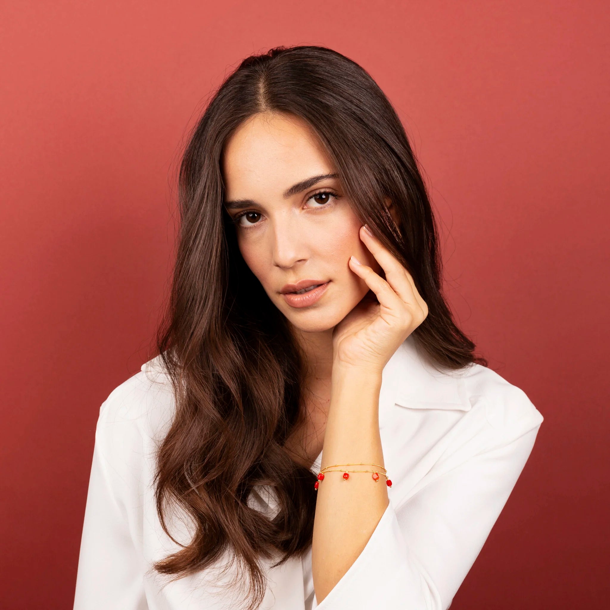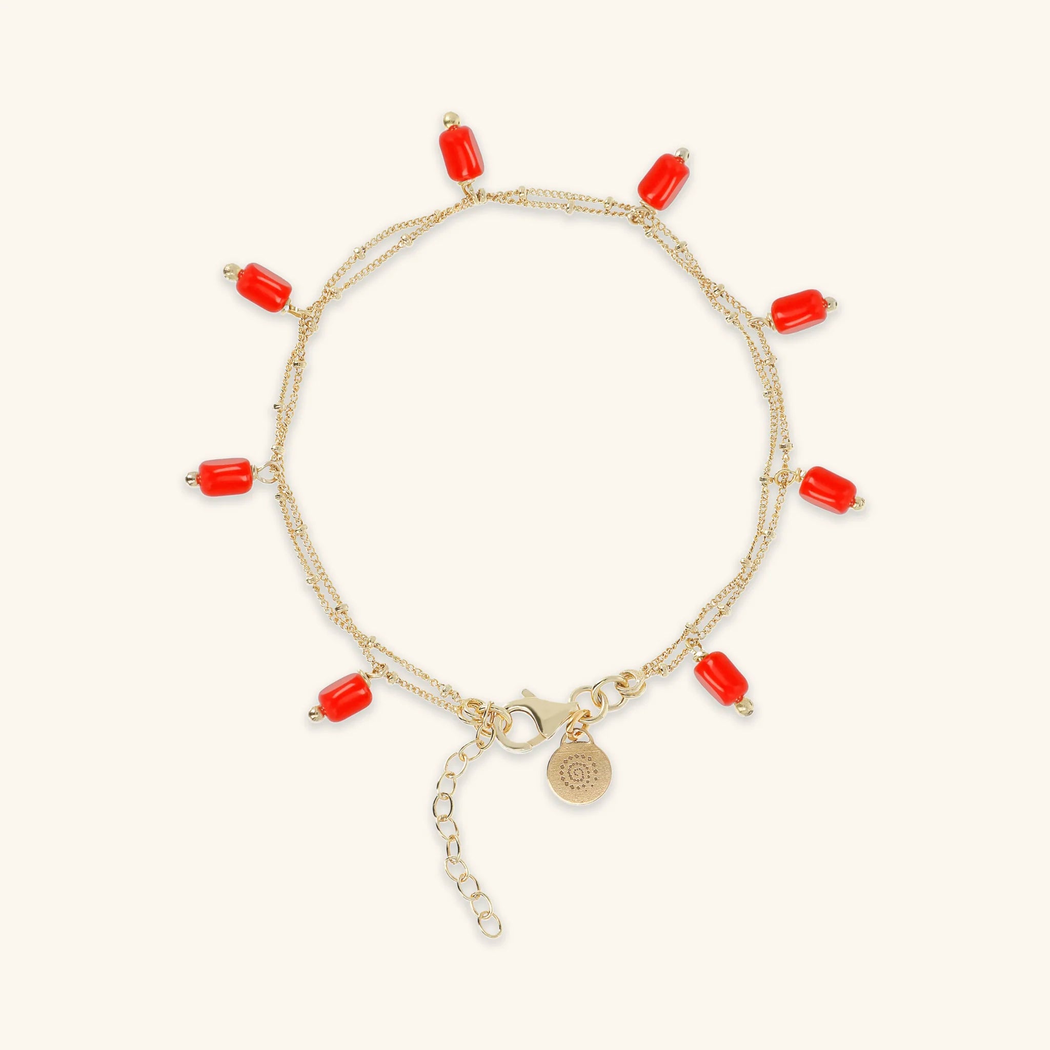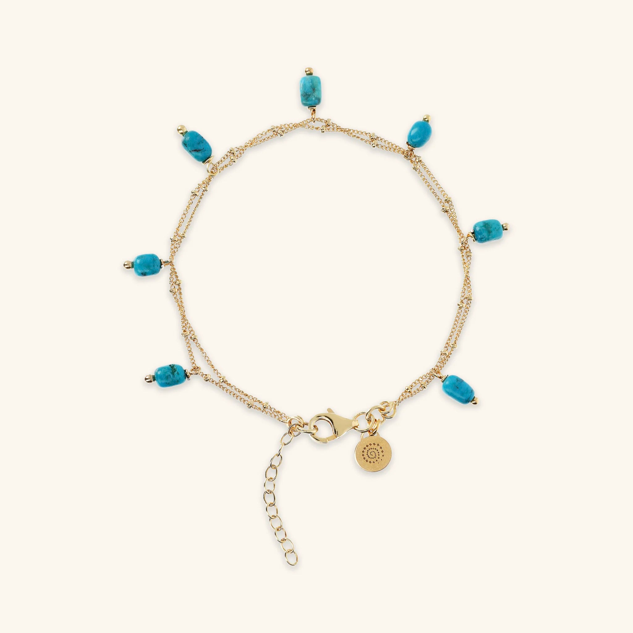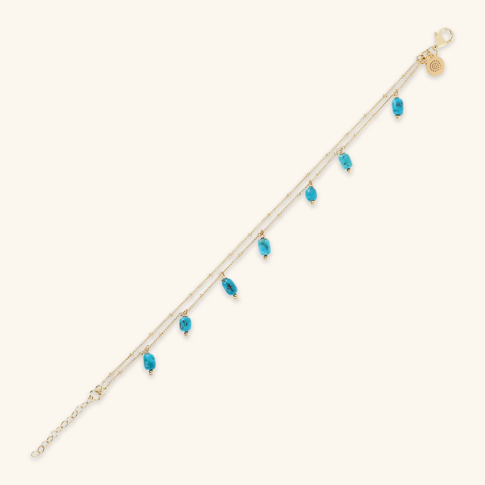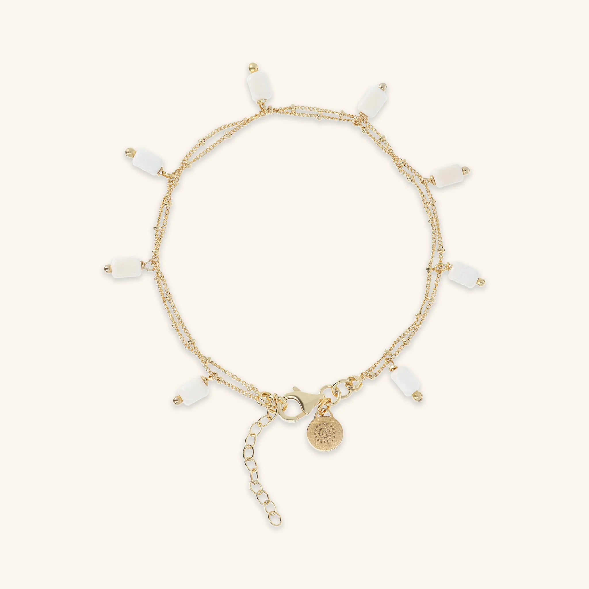 Etrusca Gioielli multi-strand rosary bracelet in 925 silver, 18kt yellow gold plated, embellished with two strands of chain with small pendants in natural stone; lobster clasp with extender.