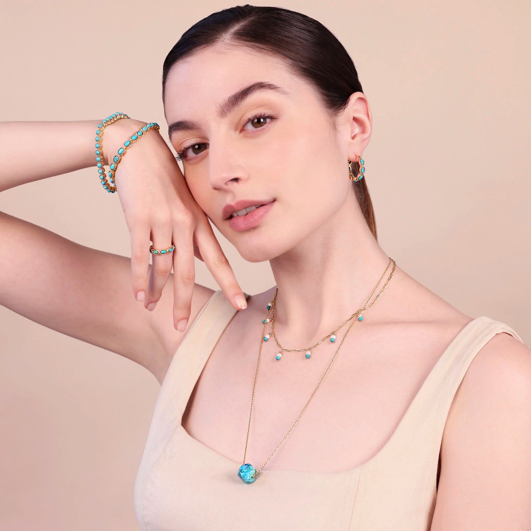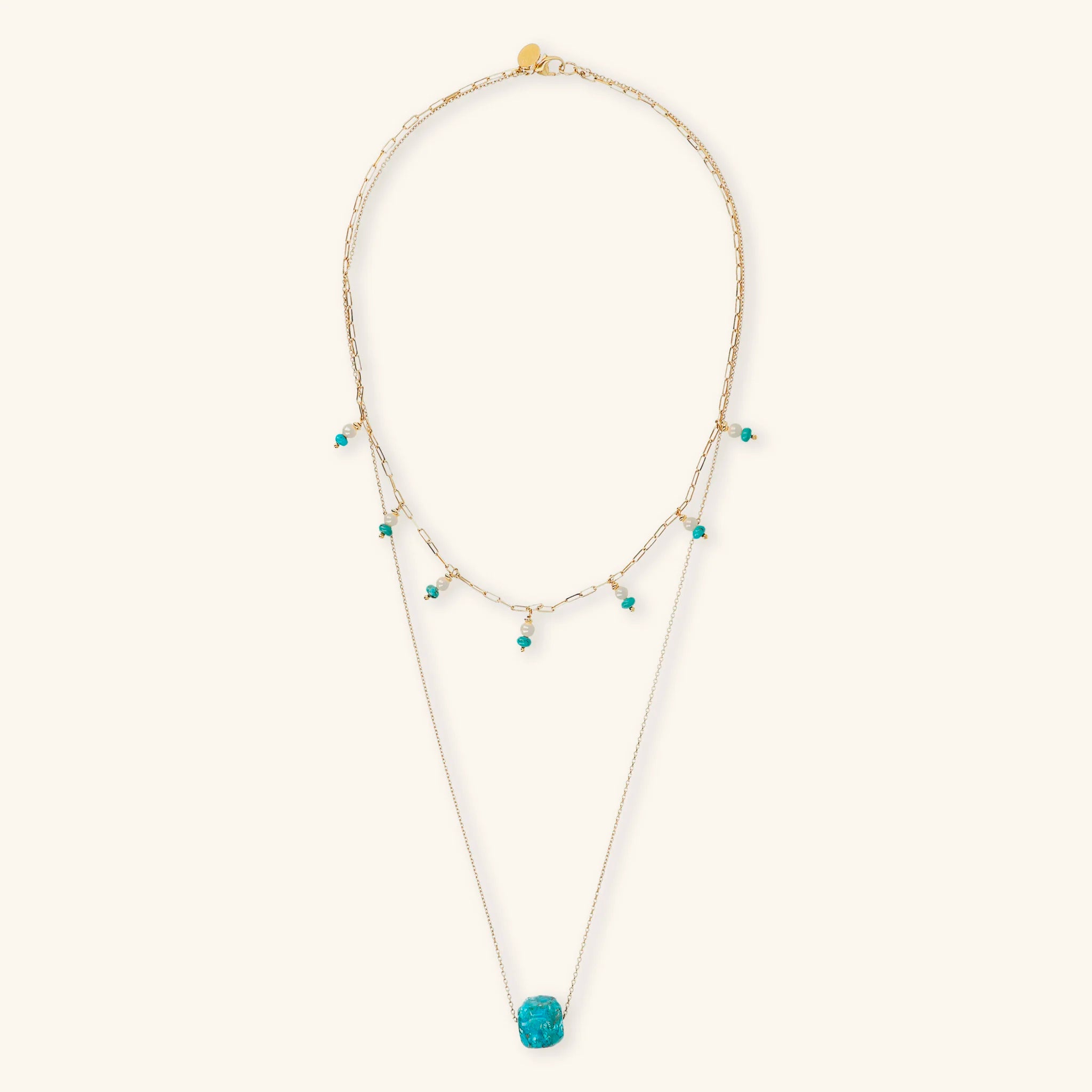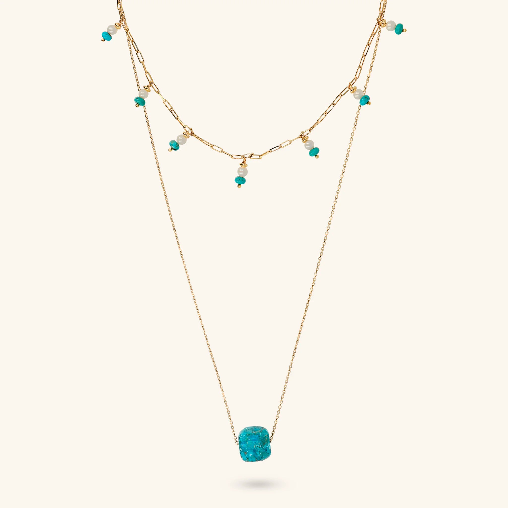 Multi-strand Chain Necklace with Turquoise Natural Stone and Pearl
