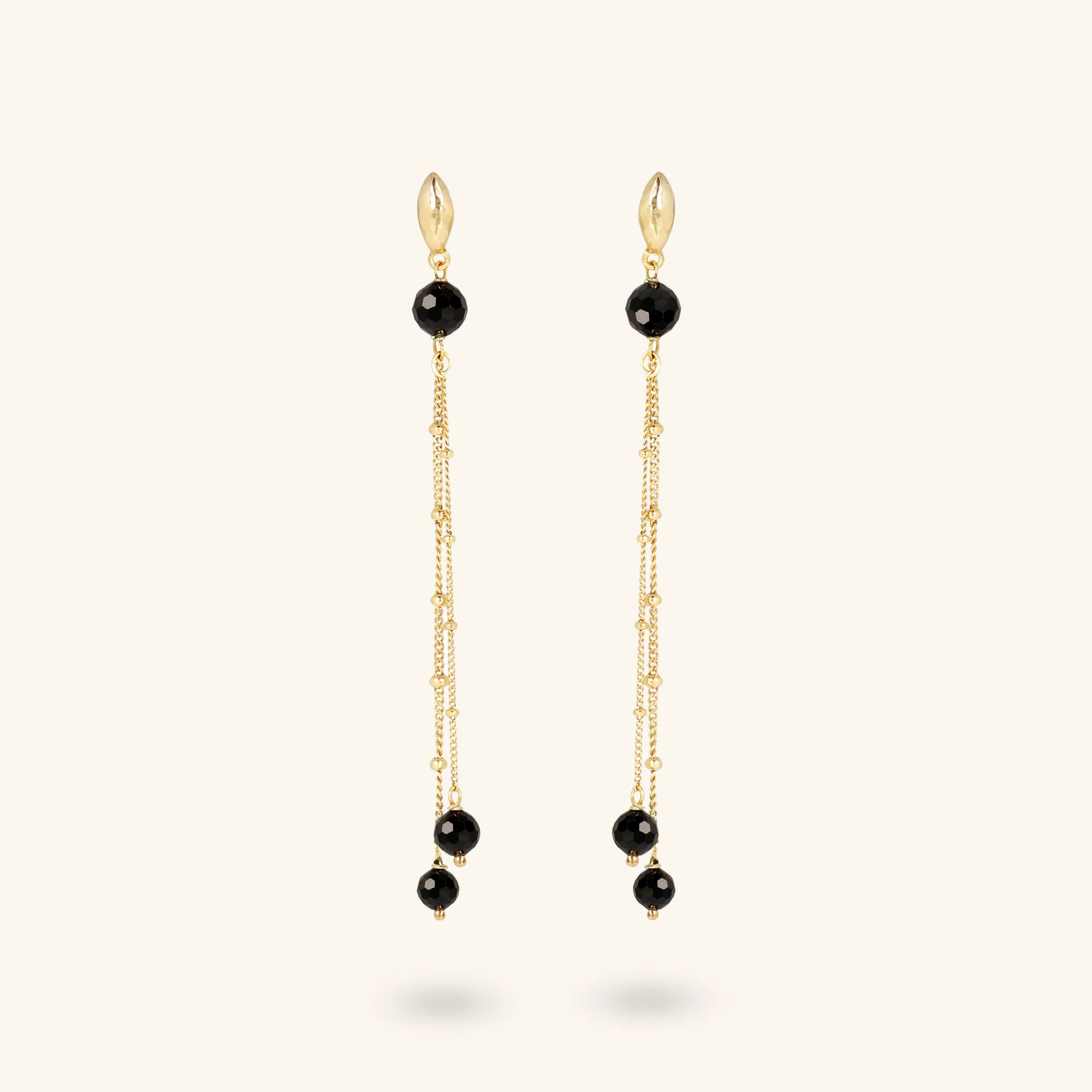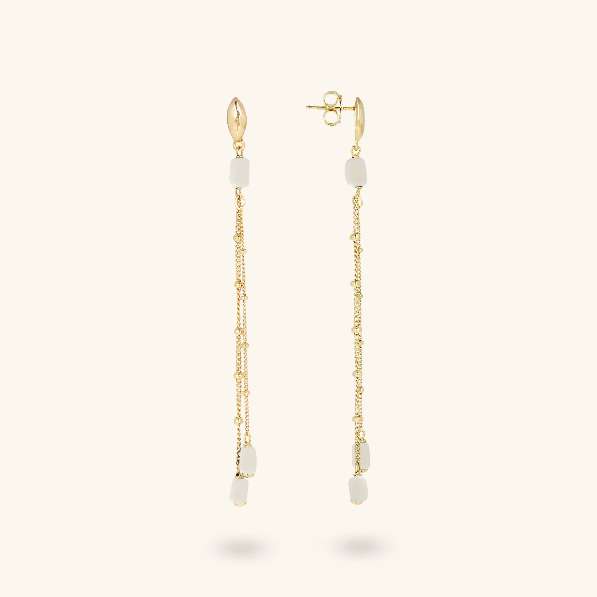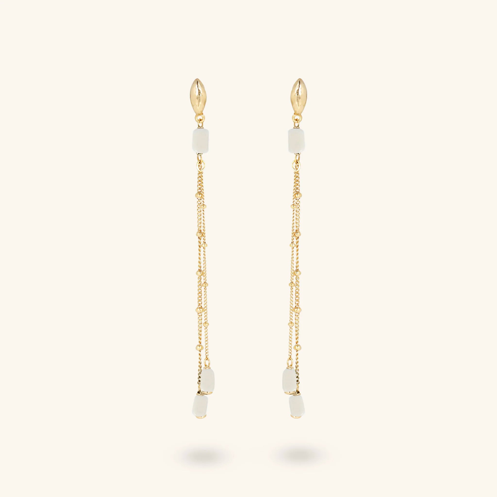 Multi-strand Rosary Chain Earrings with Natural Stones