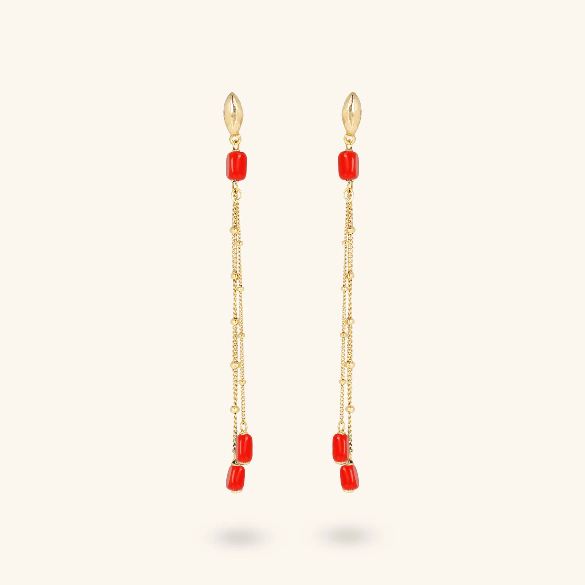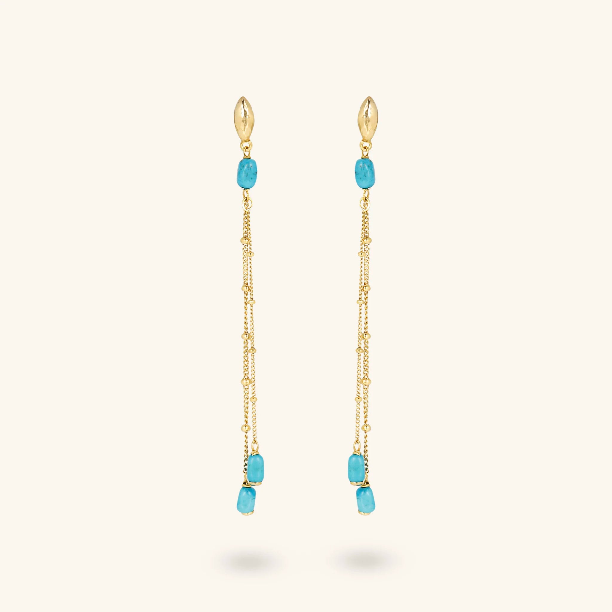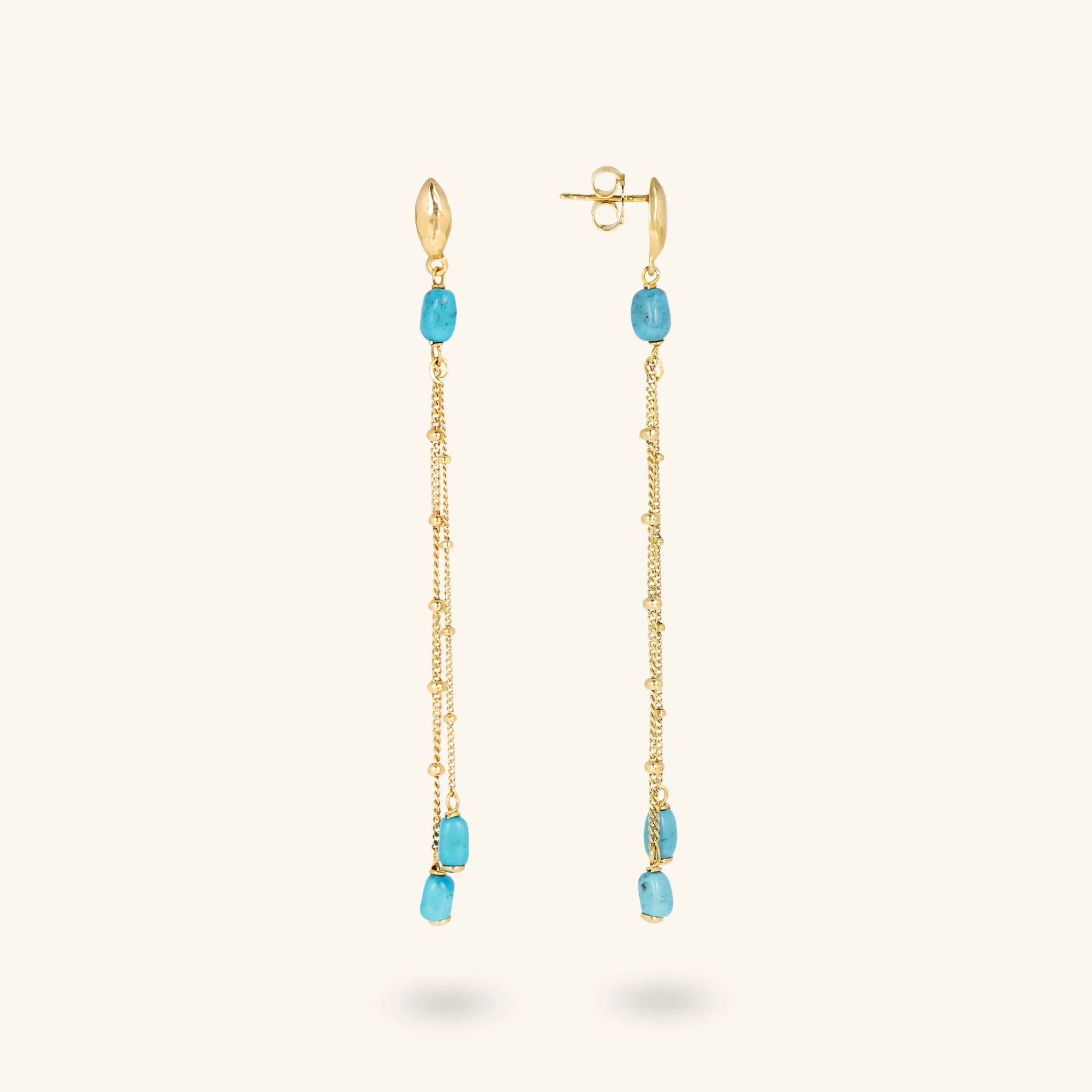Multi-strand Rosary Chain Earrings with Natural Stones
