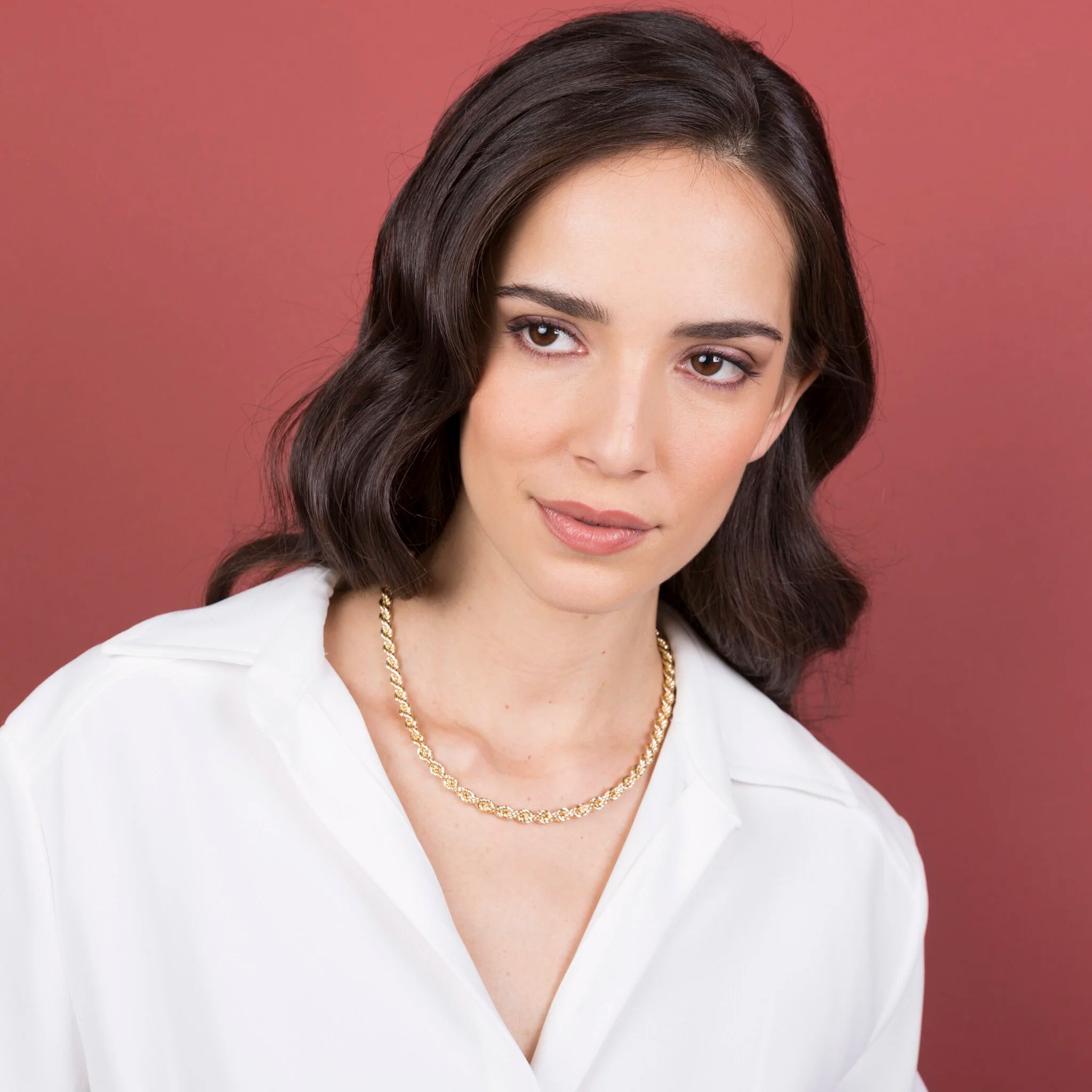 Etrusca Gioielli necklace mounted on a Golden base, 18kt yellow gold plated, embellished with a chain with a rope texture; lobster clasp. Available in two sizes: short (45cm) and long (90cm).