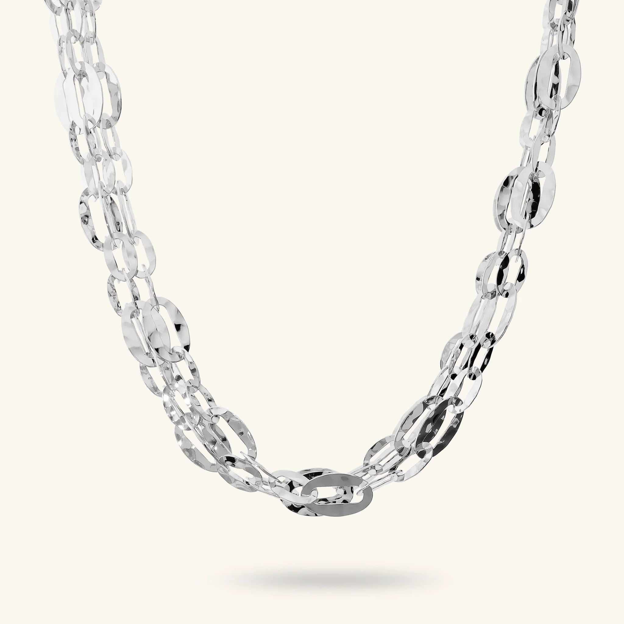 Multifilament Necklace Hammered Oval Chain