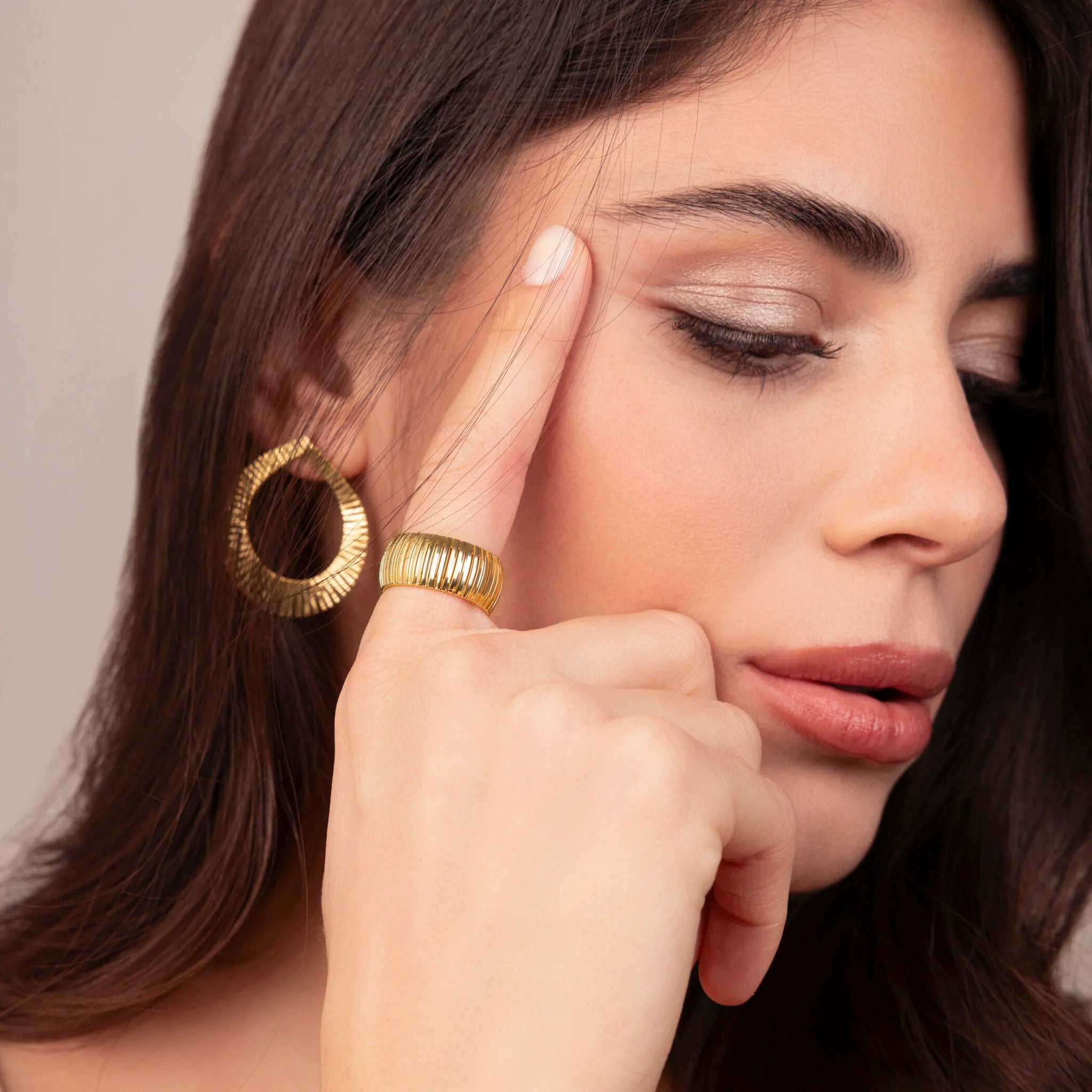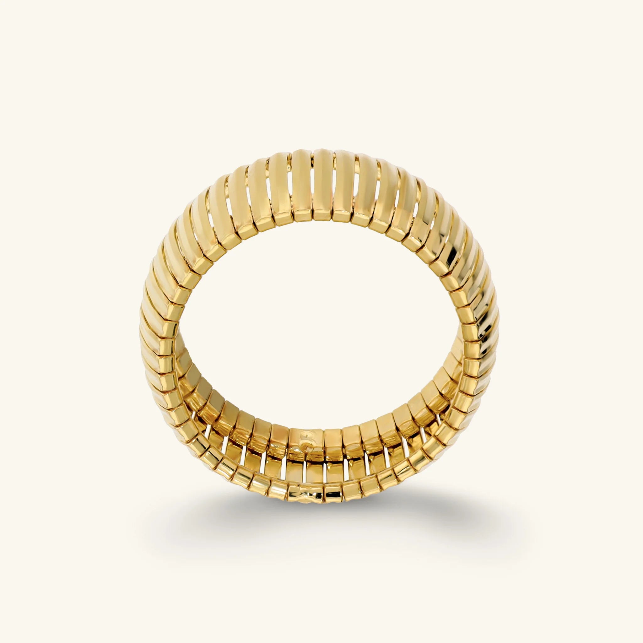 Etruscan band ring by Gioielli made of Golden alloy, plated with 18kt yellow gold, featuring a diamond-cut omega mesh.