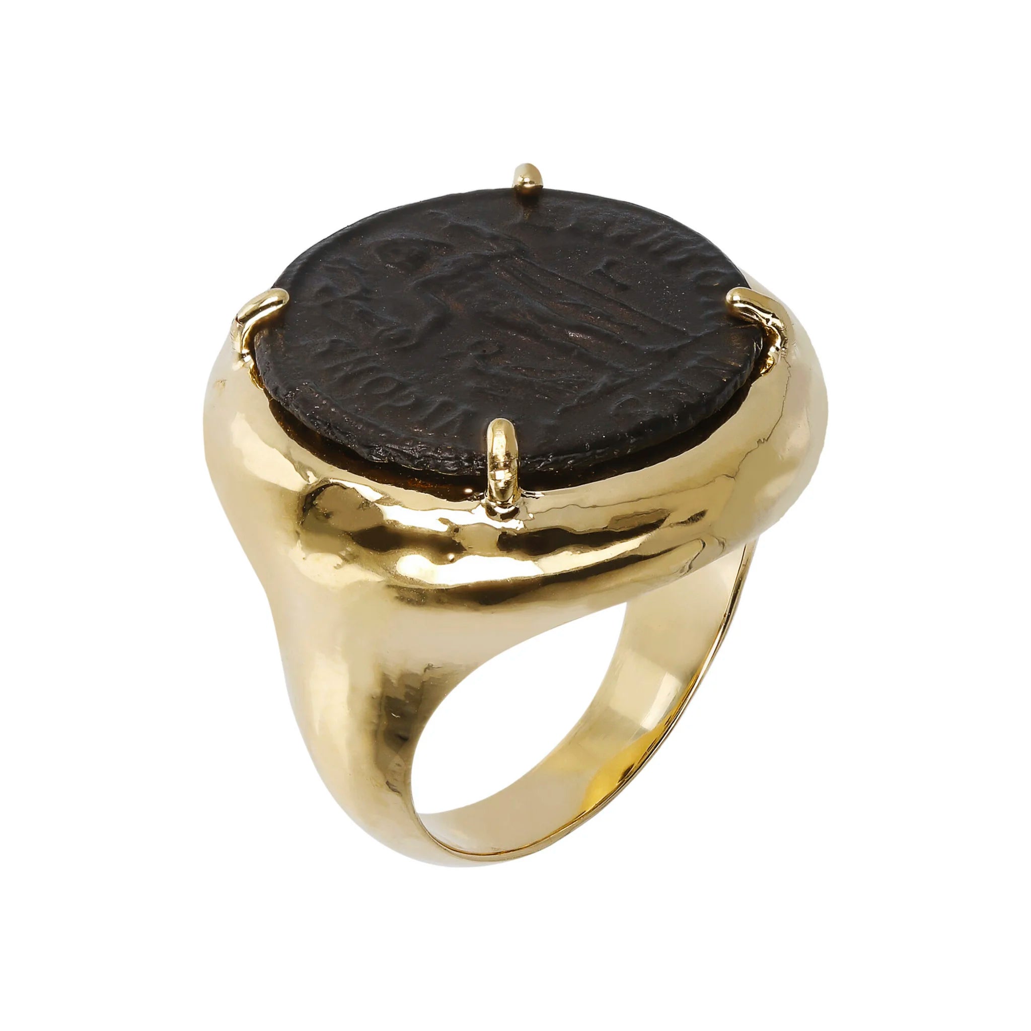 18K yellow gold plated ring with large black coin, fruit of the best goldsmith craftsmanship. A sumptuous jewel with maxi volumes so as not to go unnoticed. Combine this coin ring with other Etrusca Gioielli creations and complete your look.
