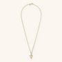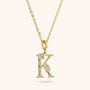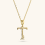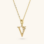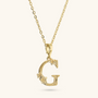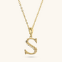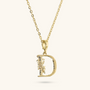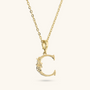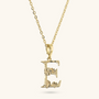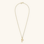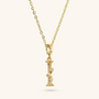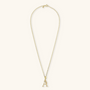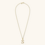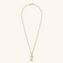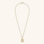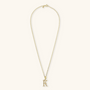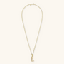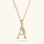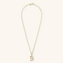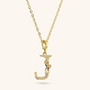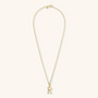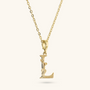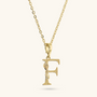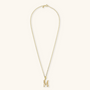 Set of Necklace + 'Initial' Pendant mounted on a Golden base, 18kt yellow gold plated, with diamond-cut rolo chain embellished with a pendant with a letter with a hammered surface and a decorative floral element; lobster clasp.