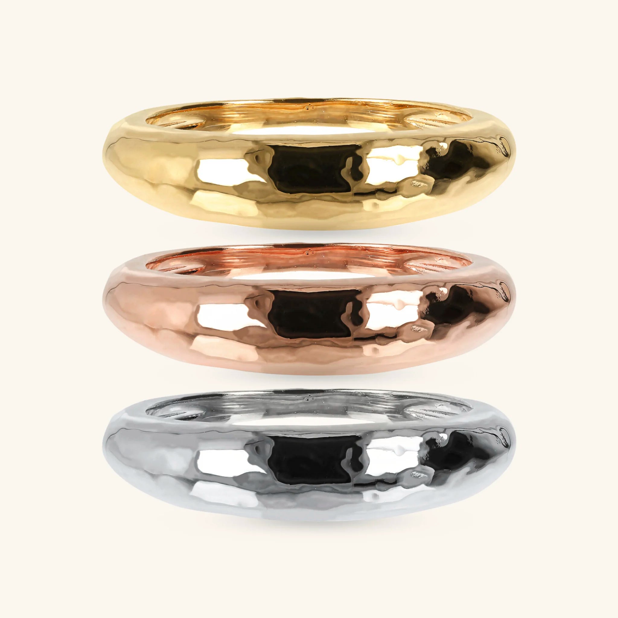 Set Of Three Tricolor Hammered Rings