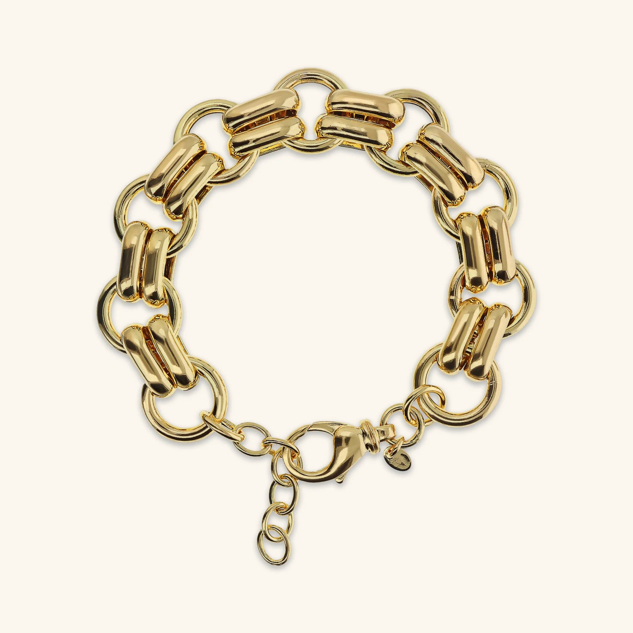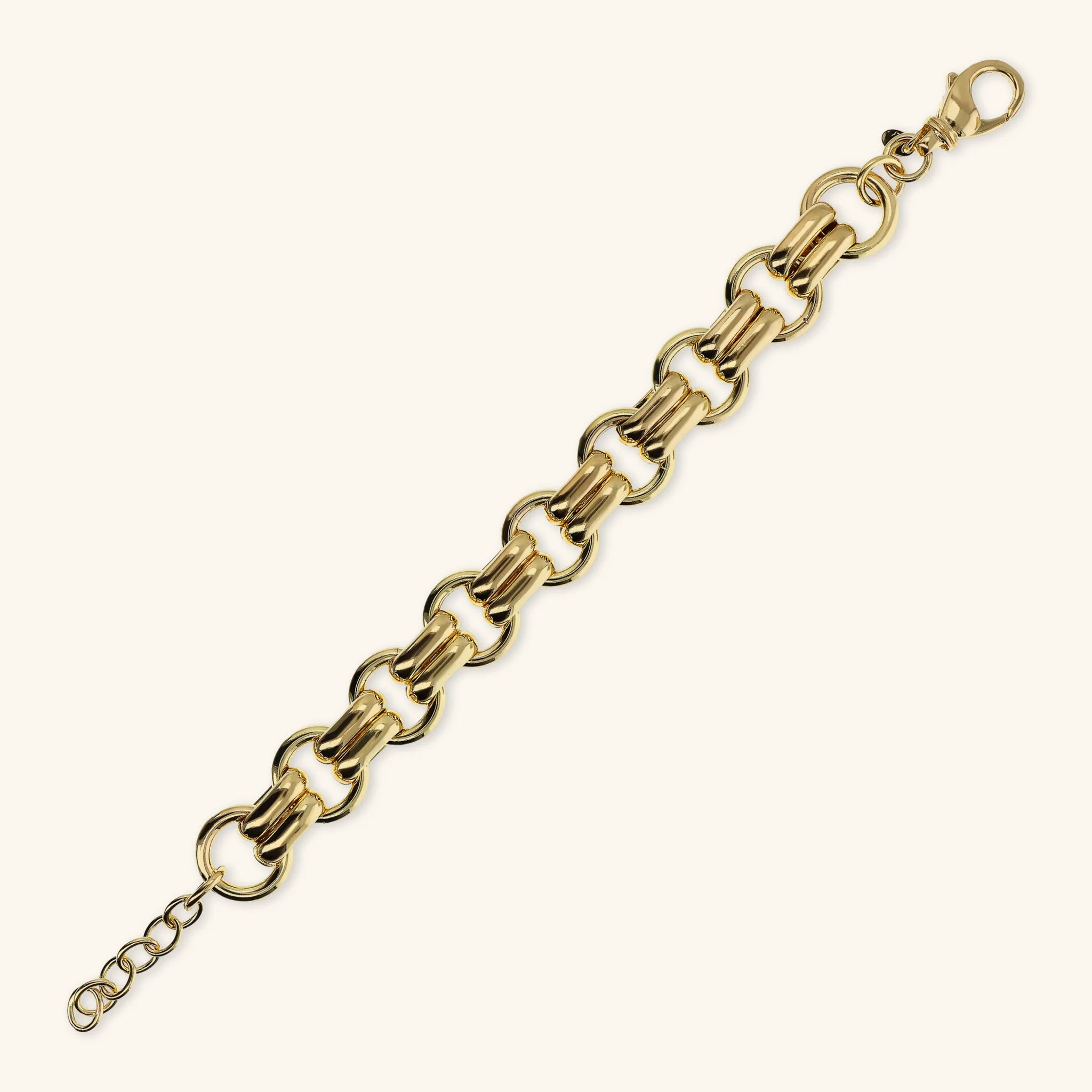 Bracelet Etrusca Gioielli en alliage Golden, doré à l'or jaune fin 18ct, avec doubles maillons ovales alternés avec des maillons anneaux. Fermoir mousqueton. Disponible en deux tailles : Petit 17+3 cm / Grand 19+3 cm.