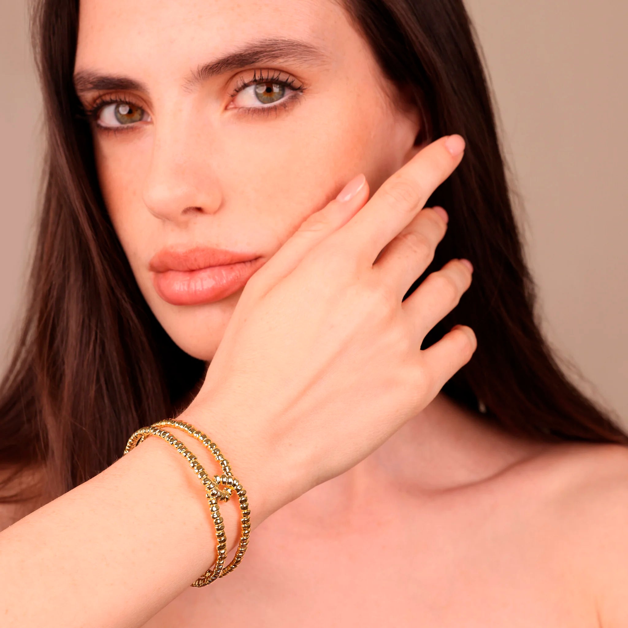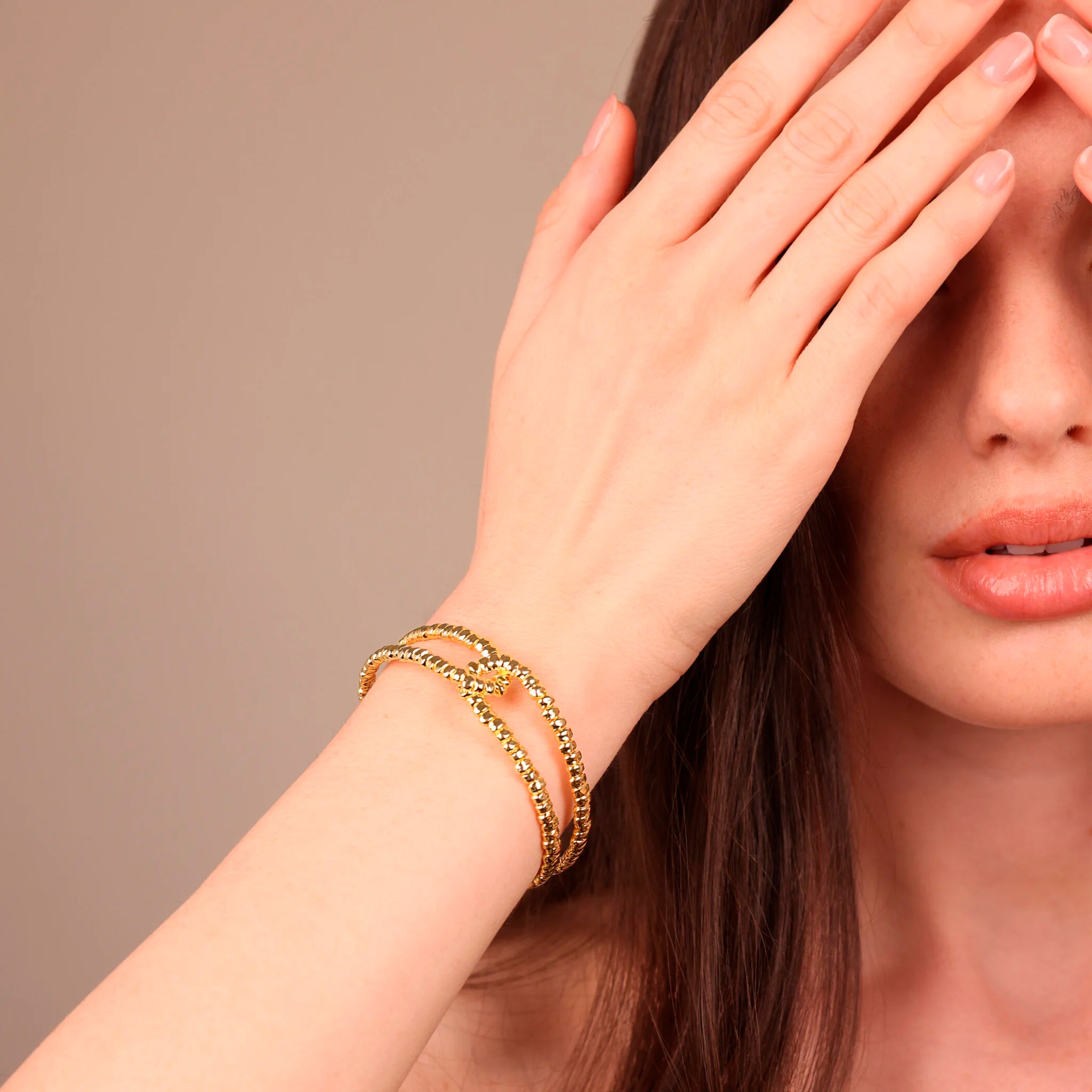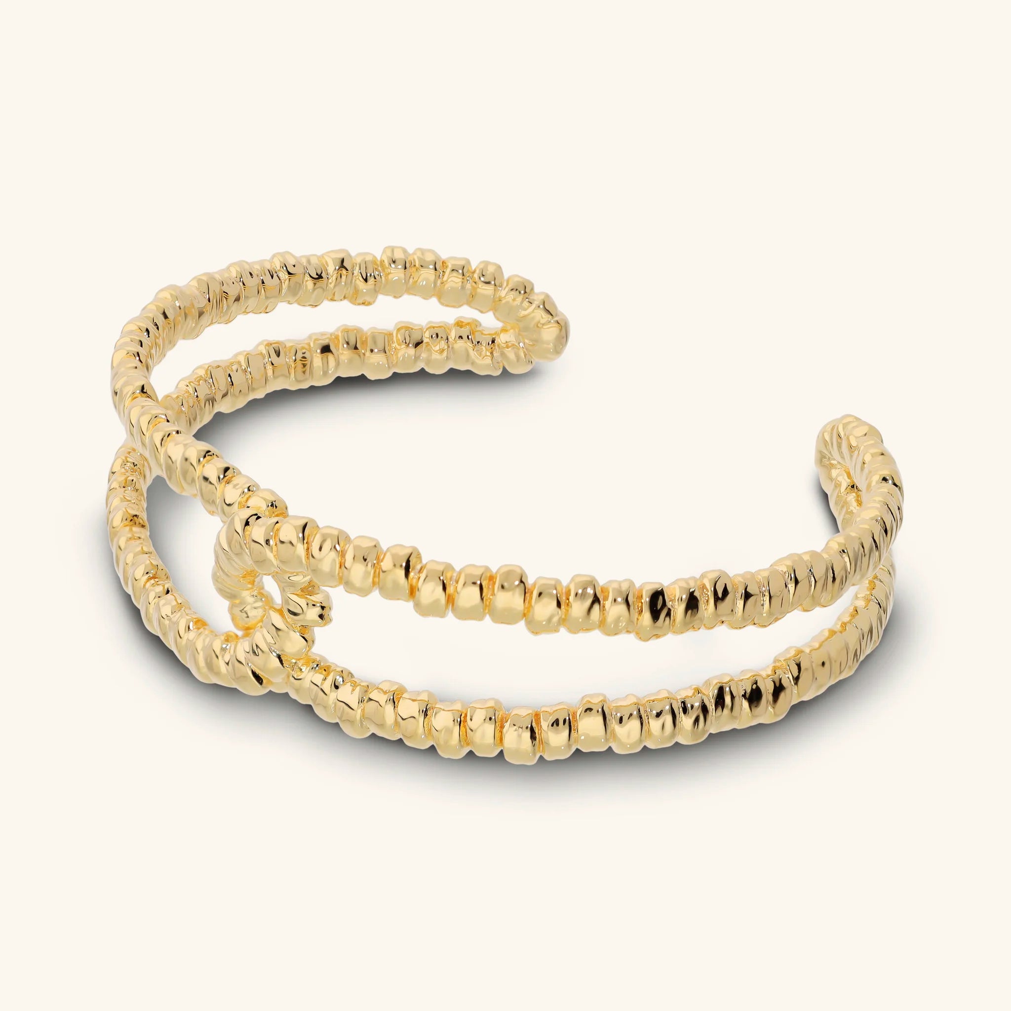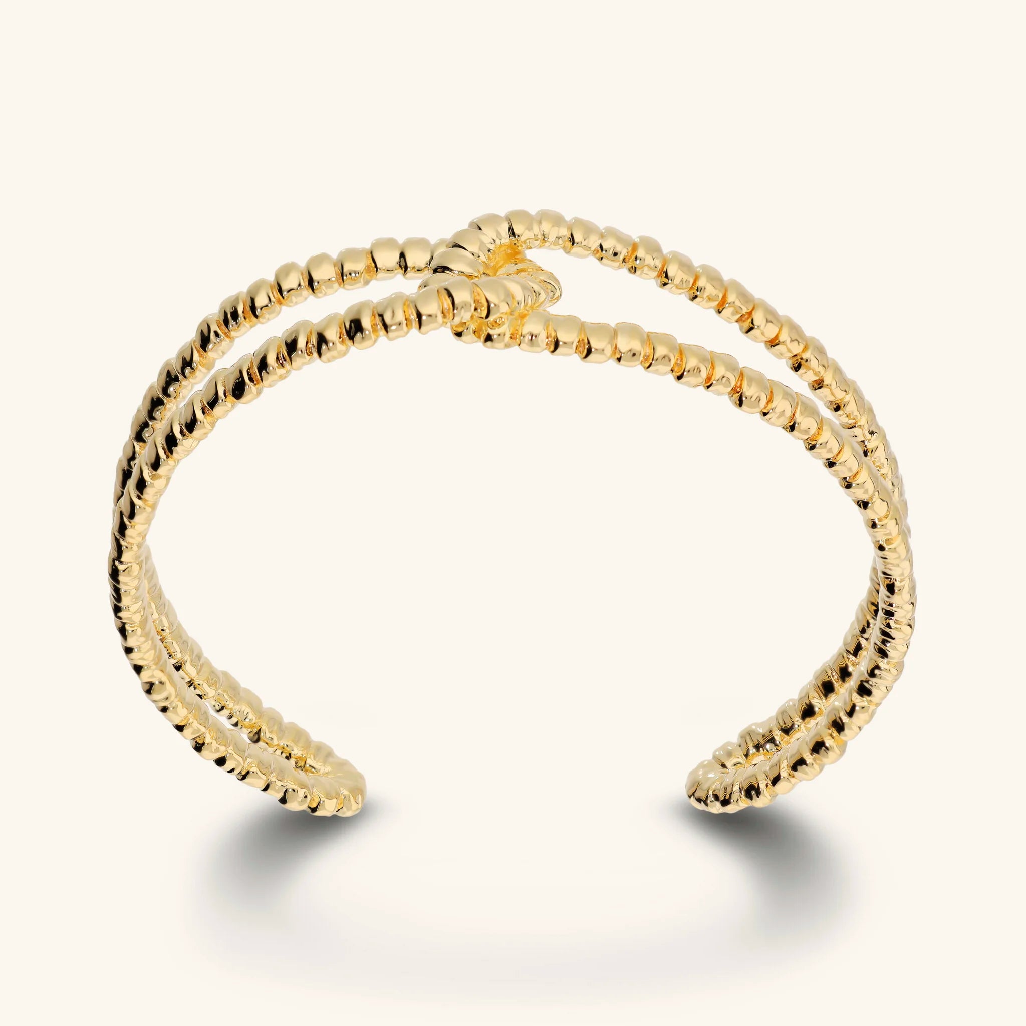 Bracelet rigide Etrusca Gioielli réalisé en alliage Golden, plaqué or jaune 18kt, au design tressé avec texture corde. Finition brillante.