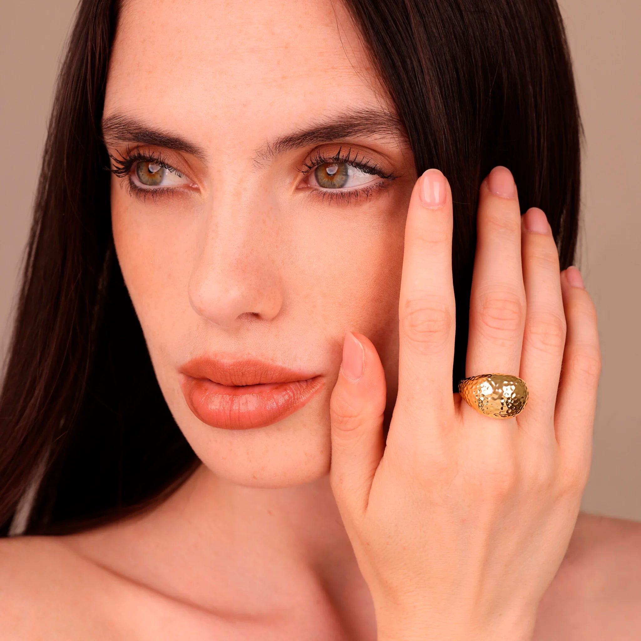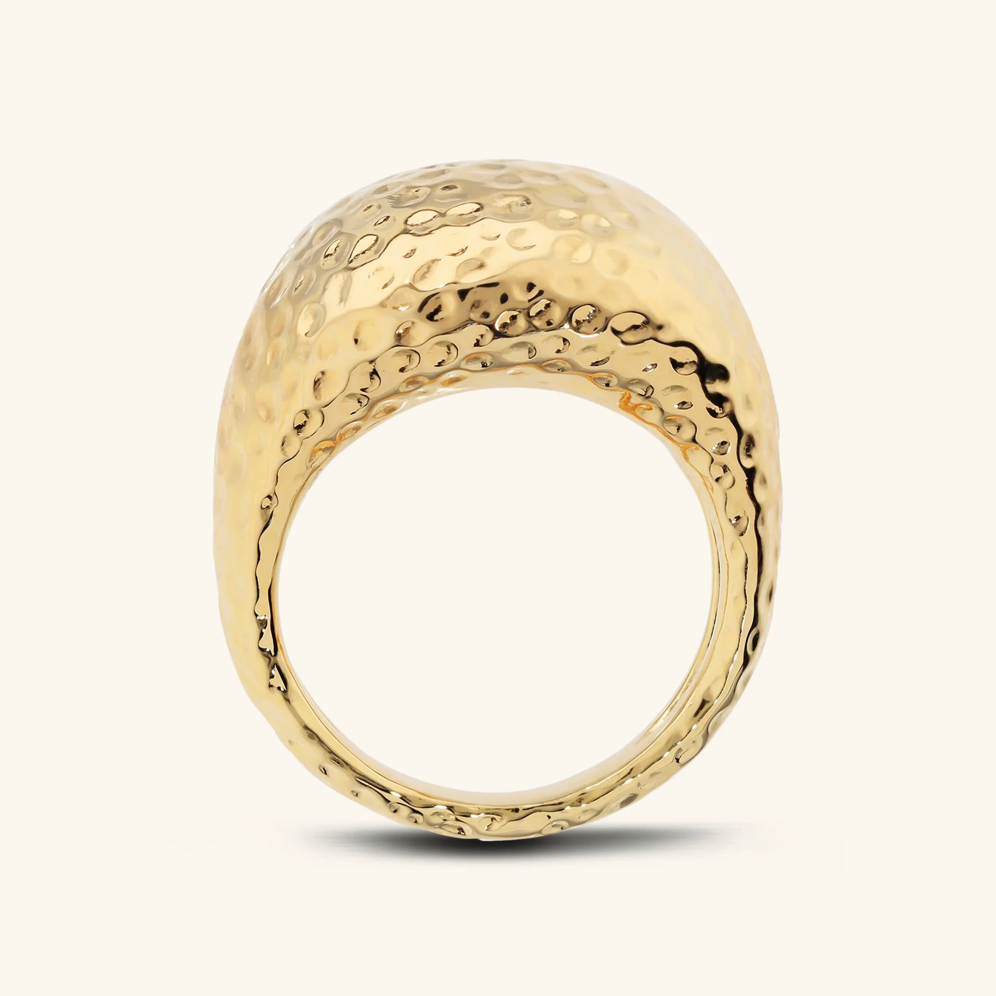 Bague cocktail Etrusca Gioielli réalisée en alliage Golden, plaquée or jaune 18kt, avec une surface finement martelée. Finition brillante.