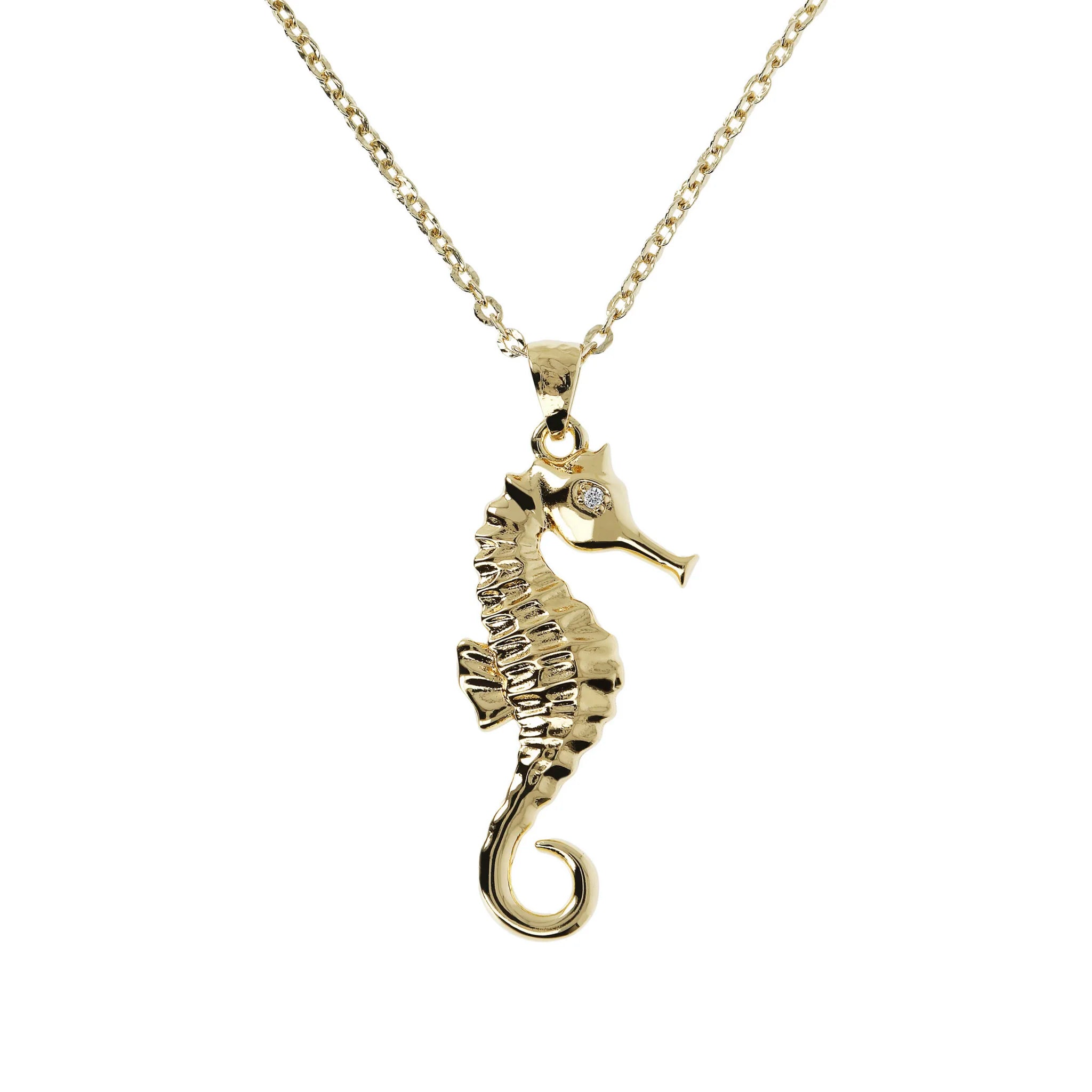Collier chaîne taille diamant avec pendentif hippocampe et zircon cubique
