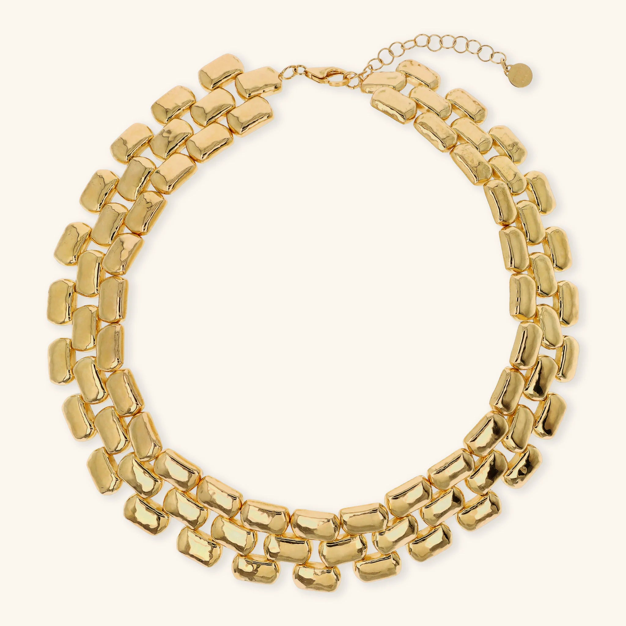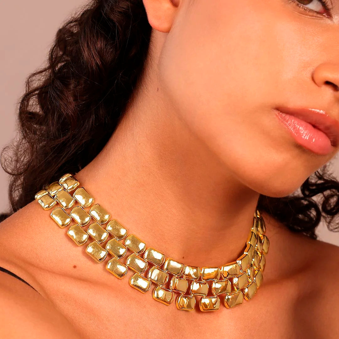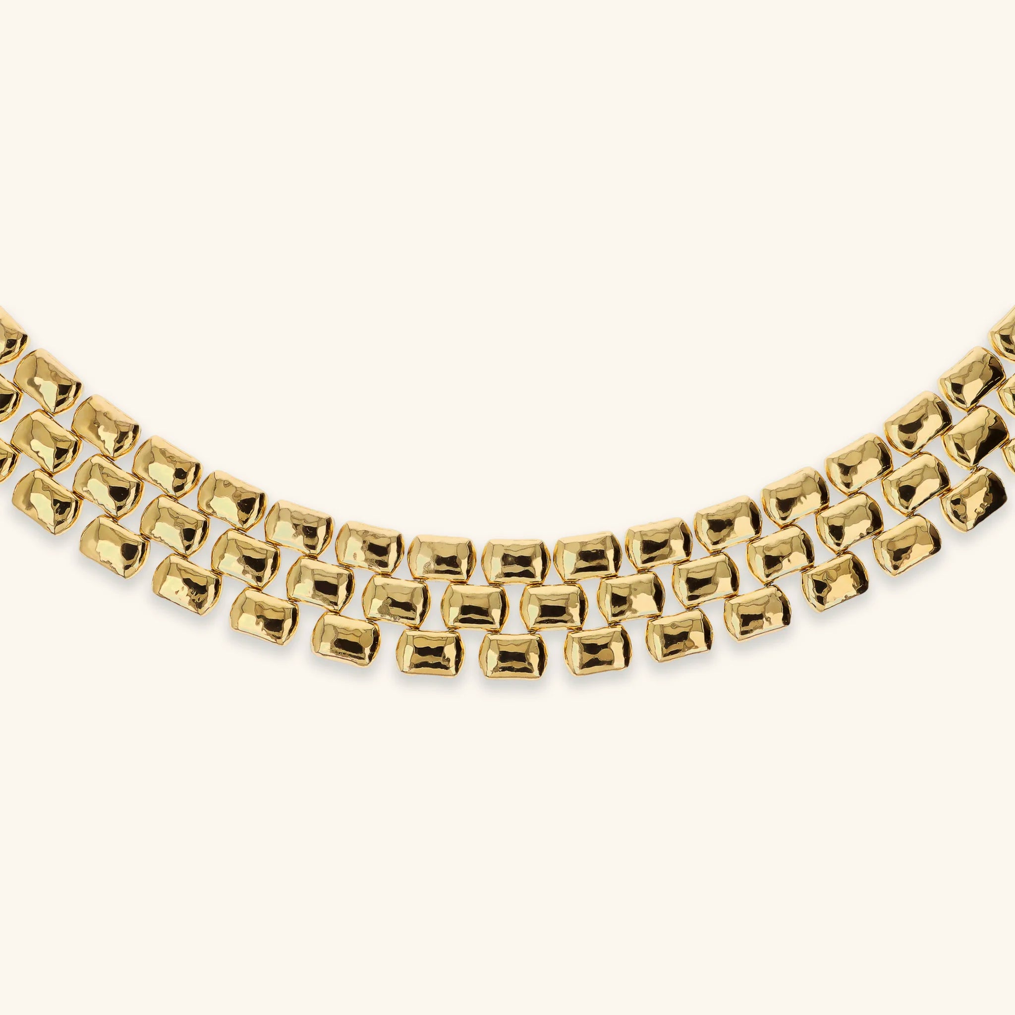 Collier ras du cou Etrusca Gioielli en alliage doré, doré à l'or jaune fin 18ct, avec maillon maxi panthère à surface martelée. Largeur de surface (3 cm). Longueur 40+extension 5,5 cm. Fermoir mousqueton.