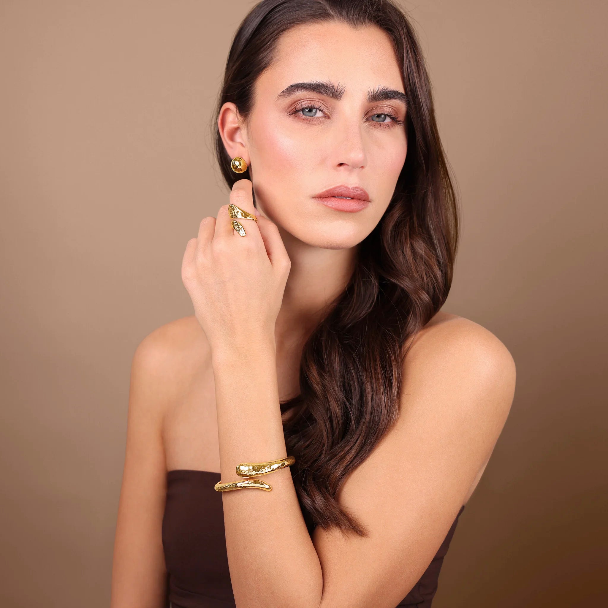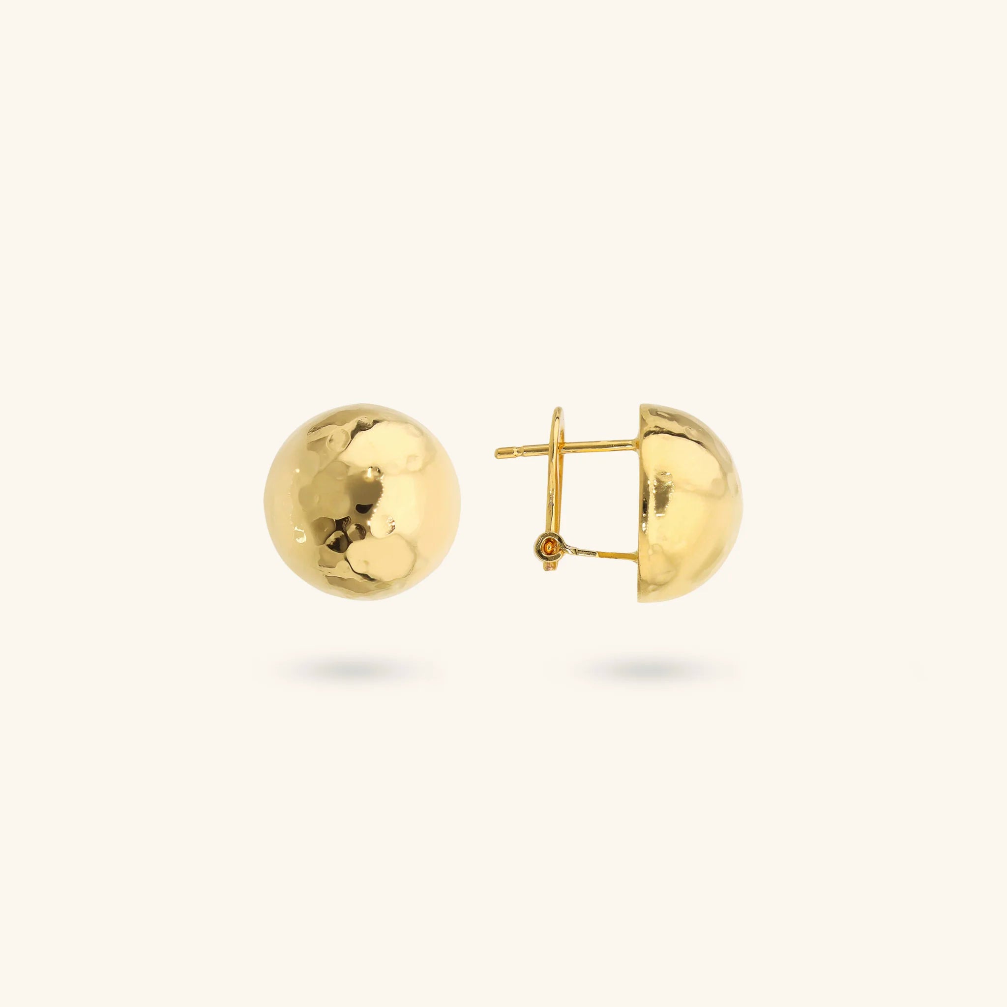 Boucles d'oreilles à bouton Etrusca Gioielli réalisées en alliage Golden, doré à l'or jaune fin 18ct, en forme de sphère martelée (12 mm). Fermeture avec tige et clip.