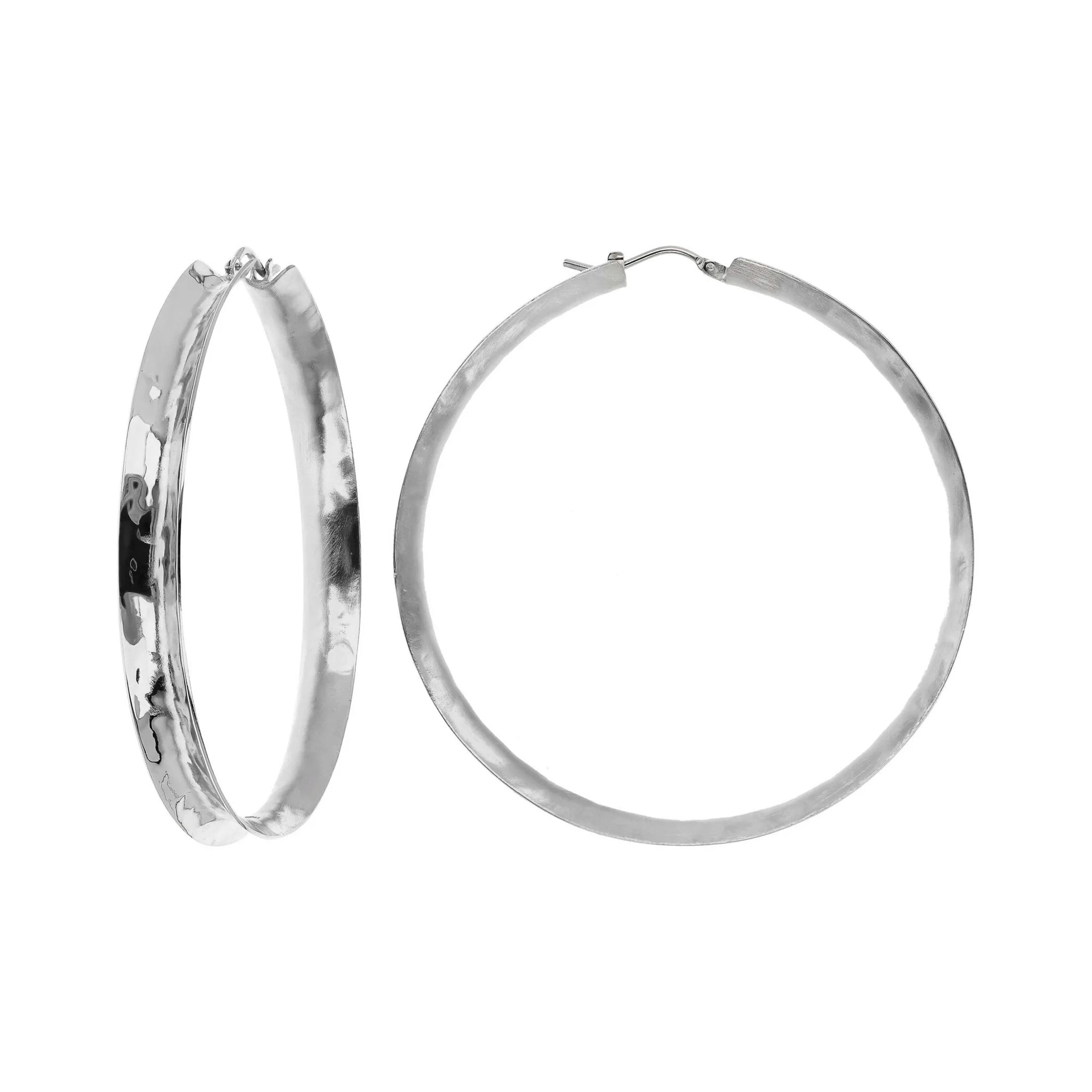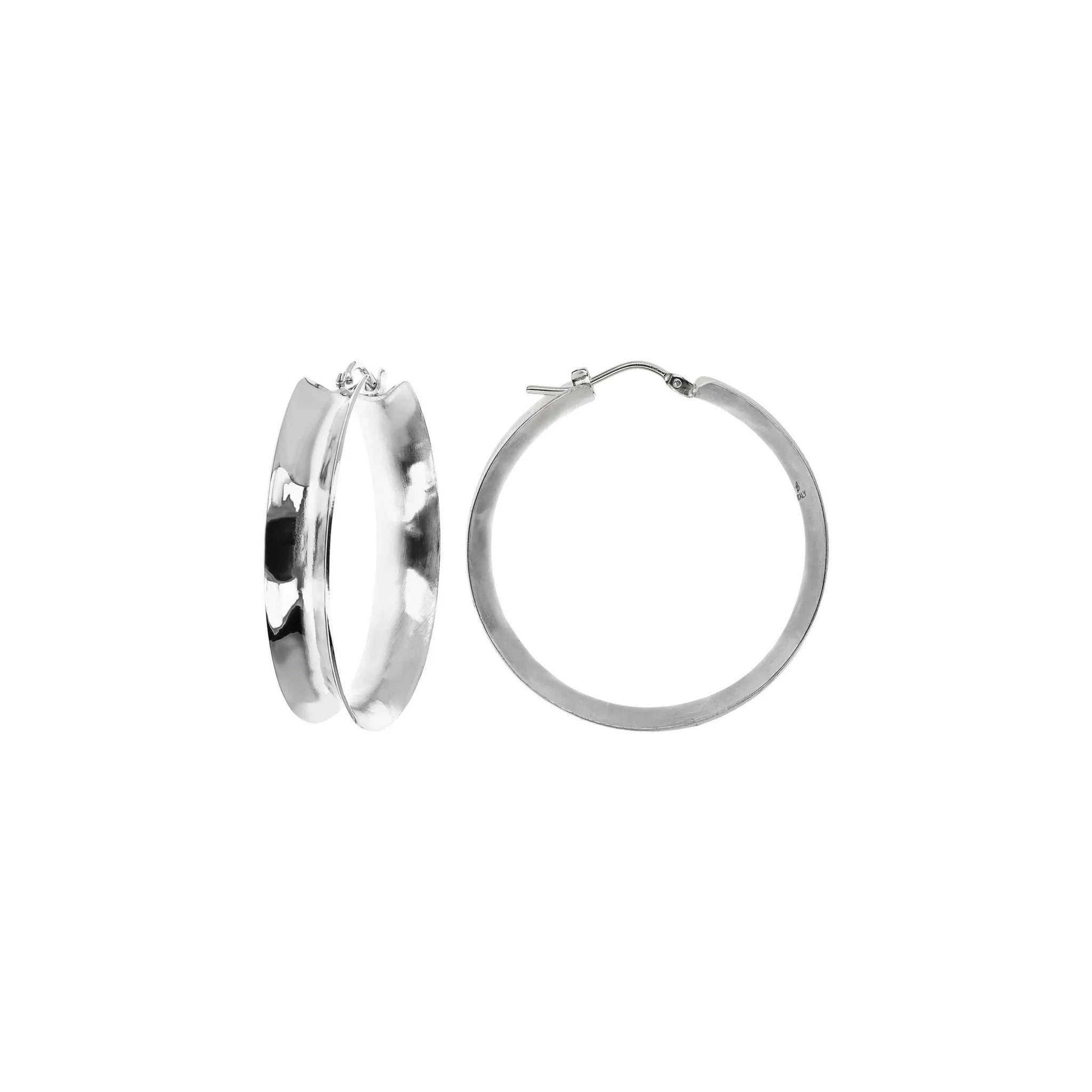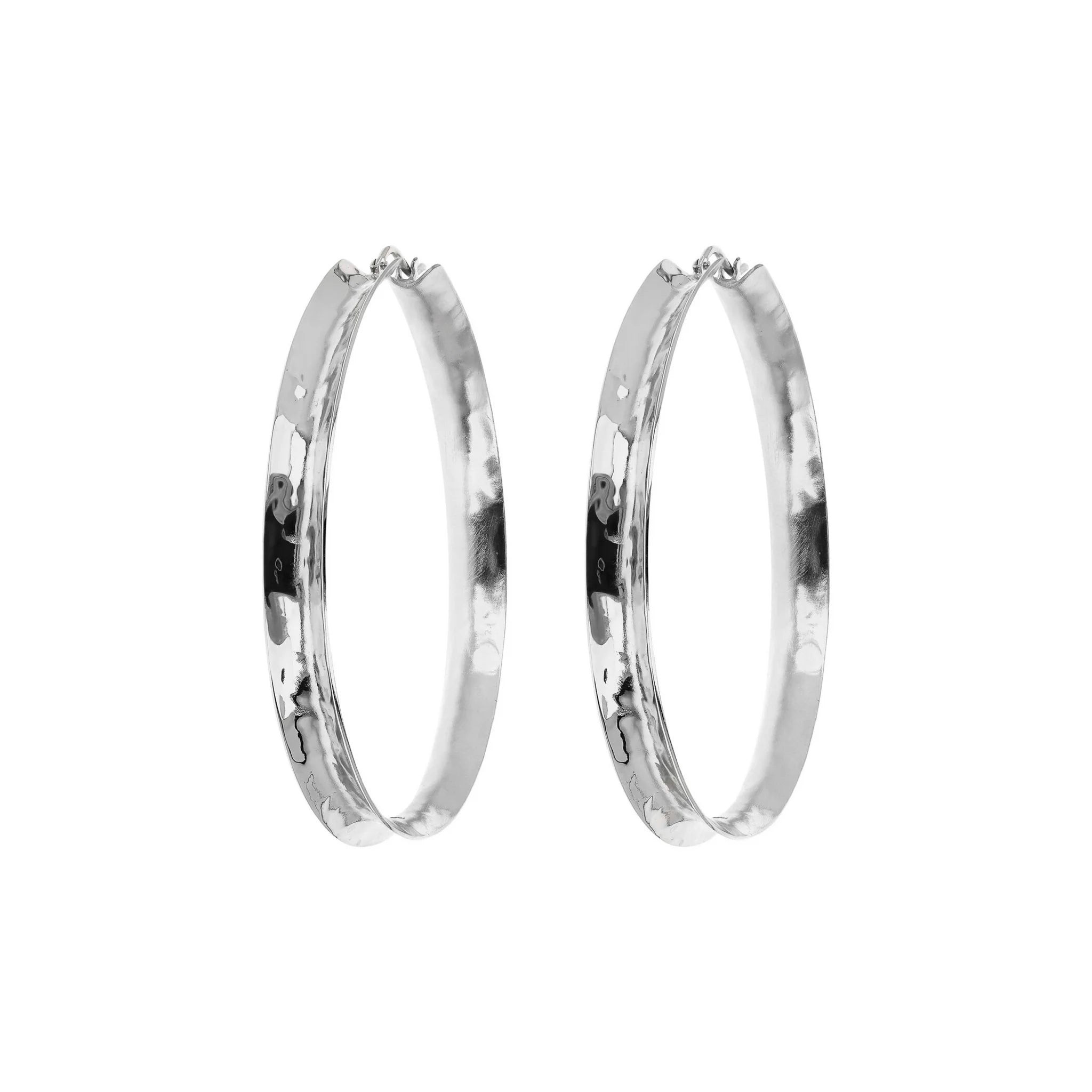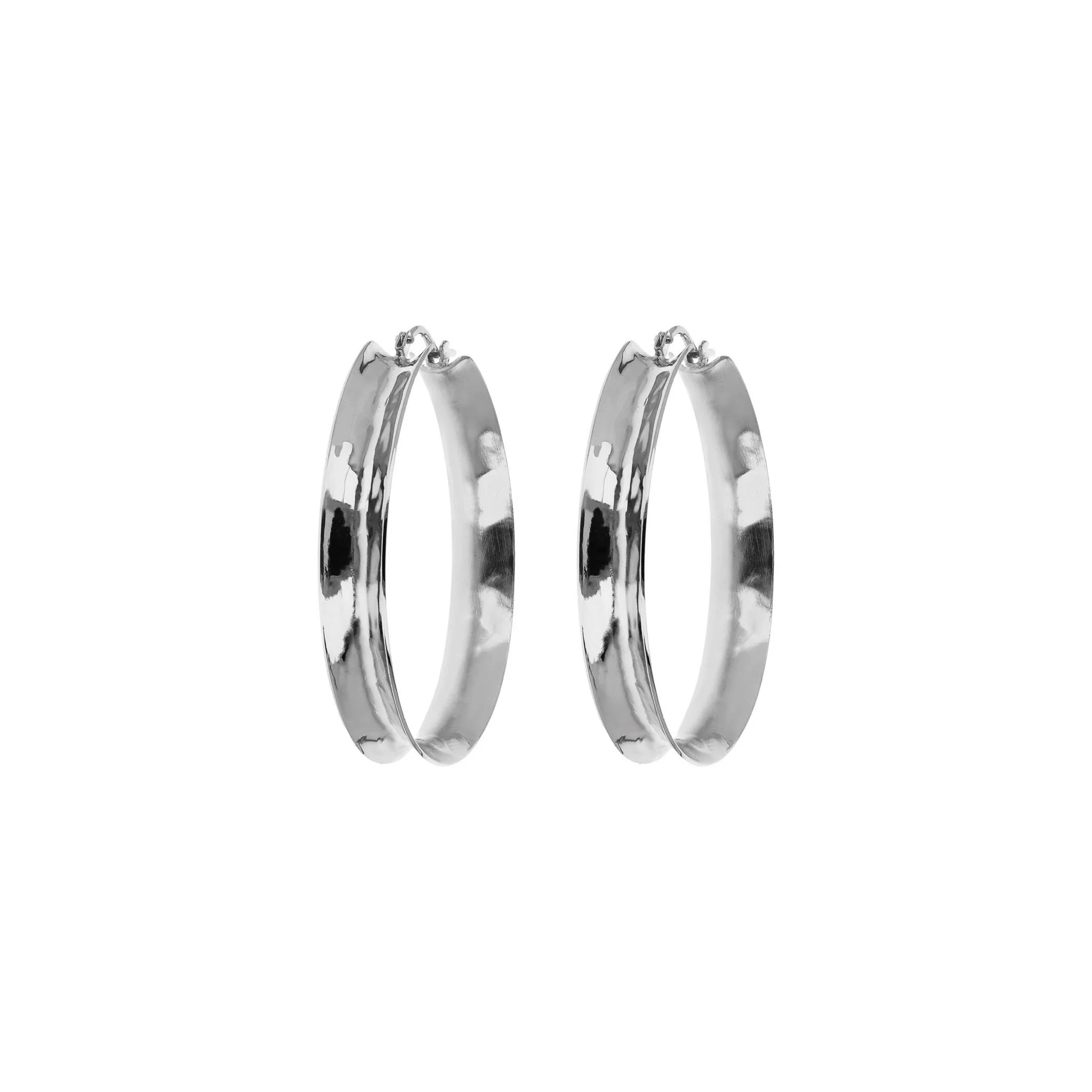 Boucles d'oreilles créoles Etrusca Gioielli en alliage Golden, doré à l'or jaune fin 18ct, avec surface concave martelée. Fermeture à baïonnette. Disponible en trois tailles : Small (diamètre externe 2,5 cm) / Medium (diamètre externe 4 cm) / Large (diamètre externe 5 cm).