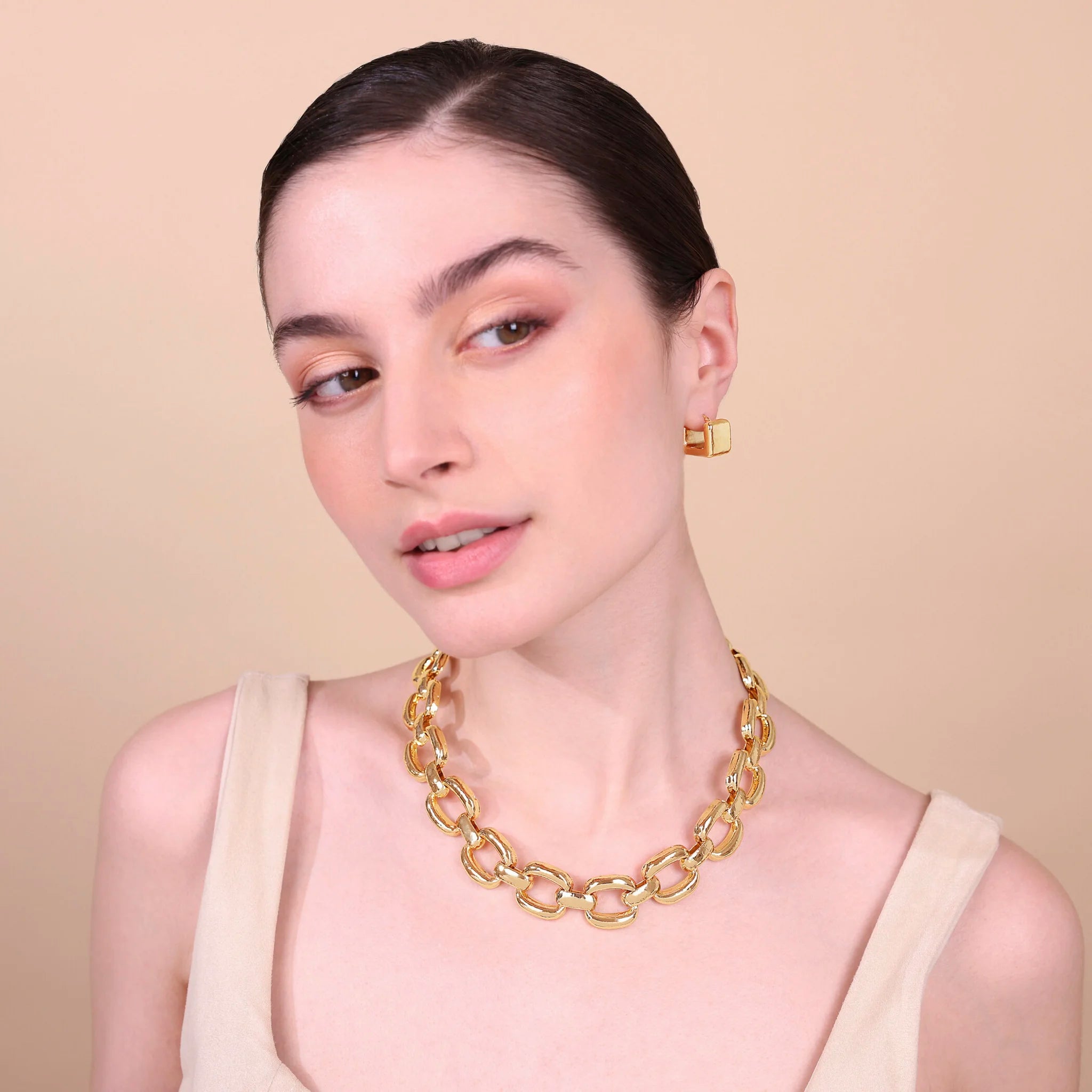 Boucles d'Oreilles Créoles Martelée Forme Carrée
