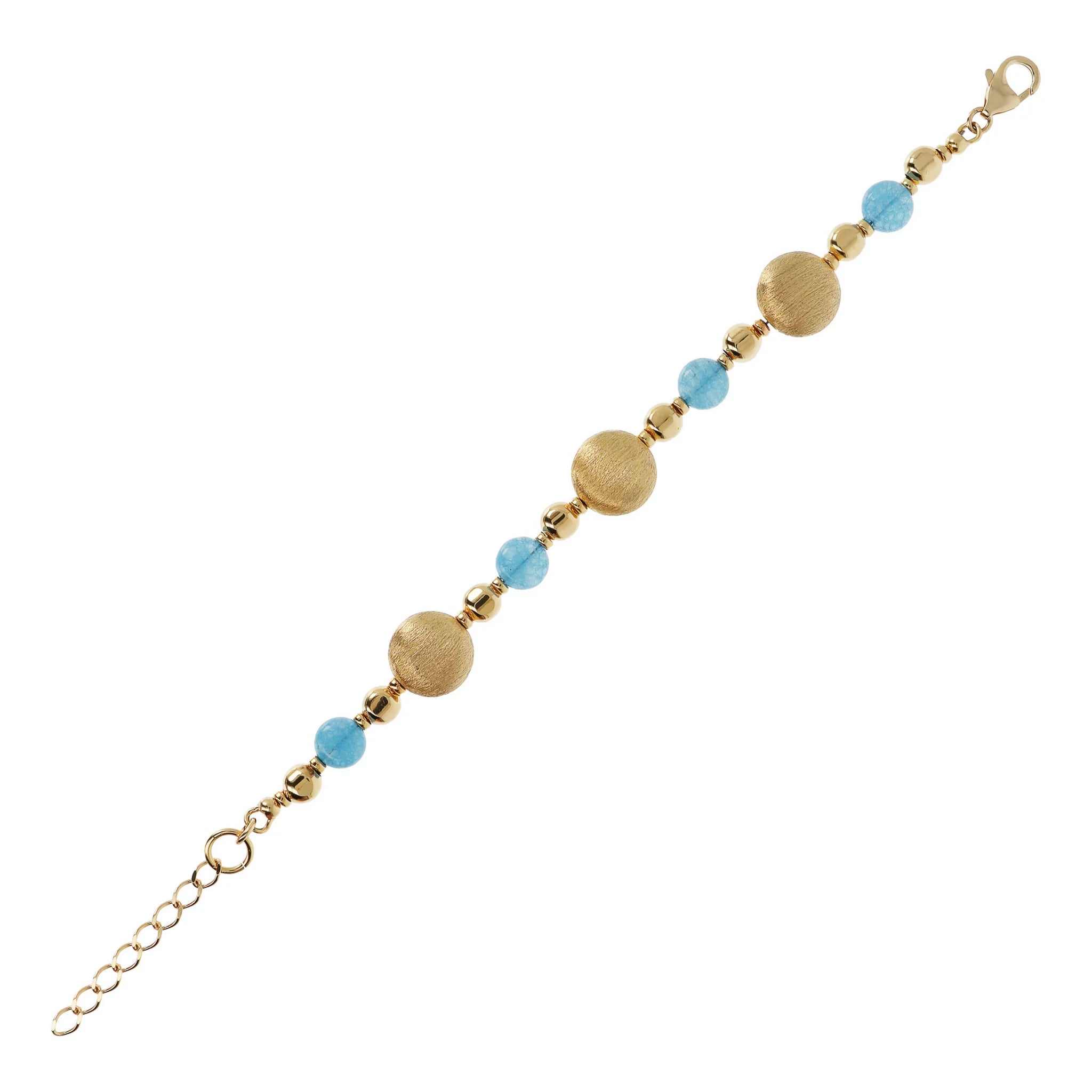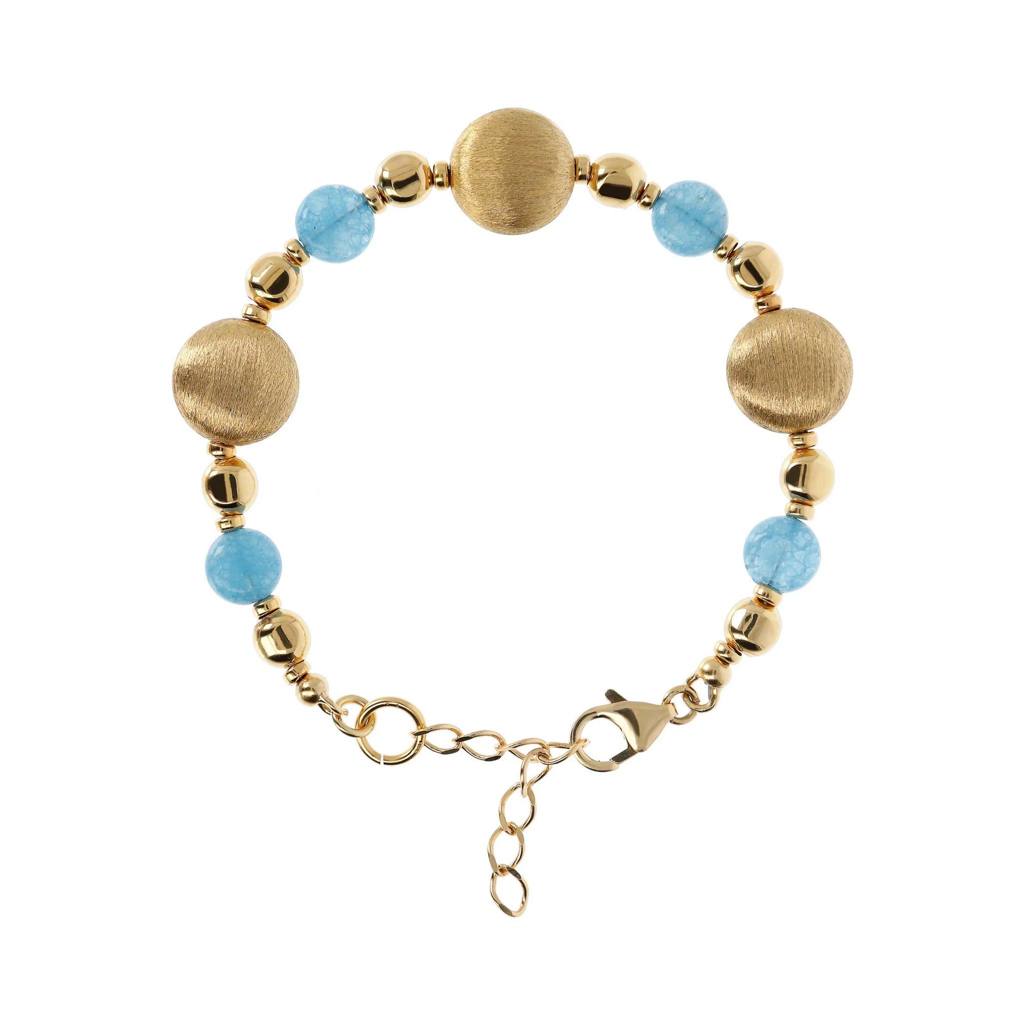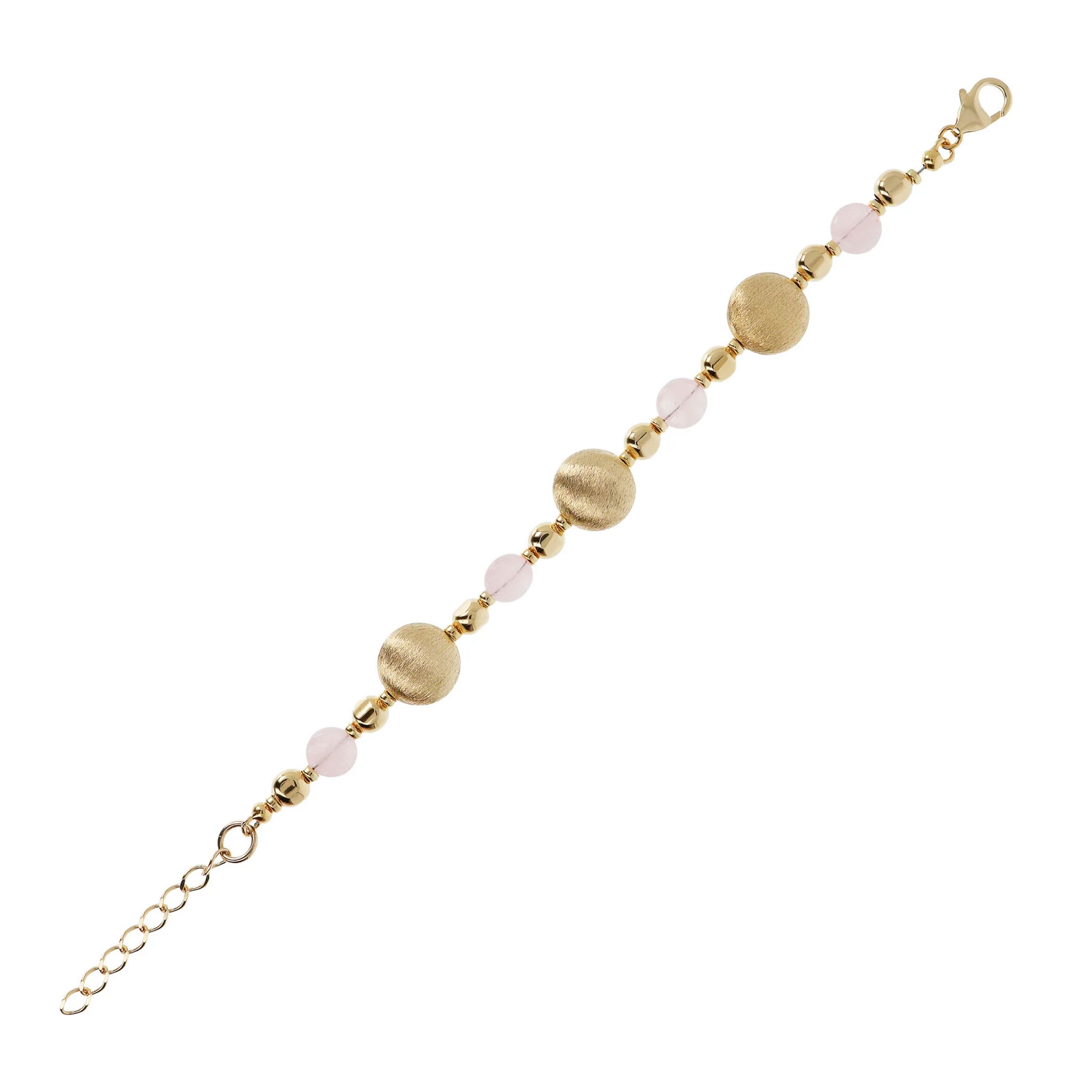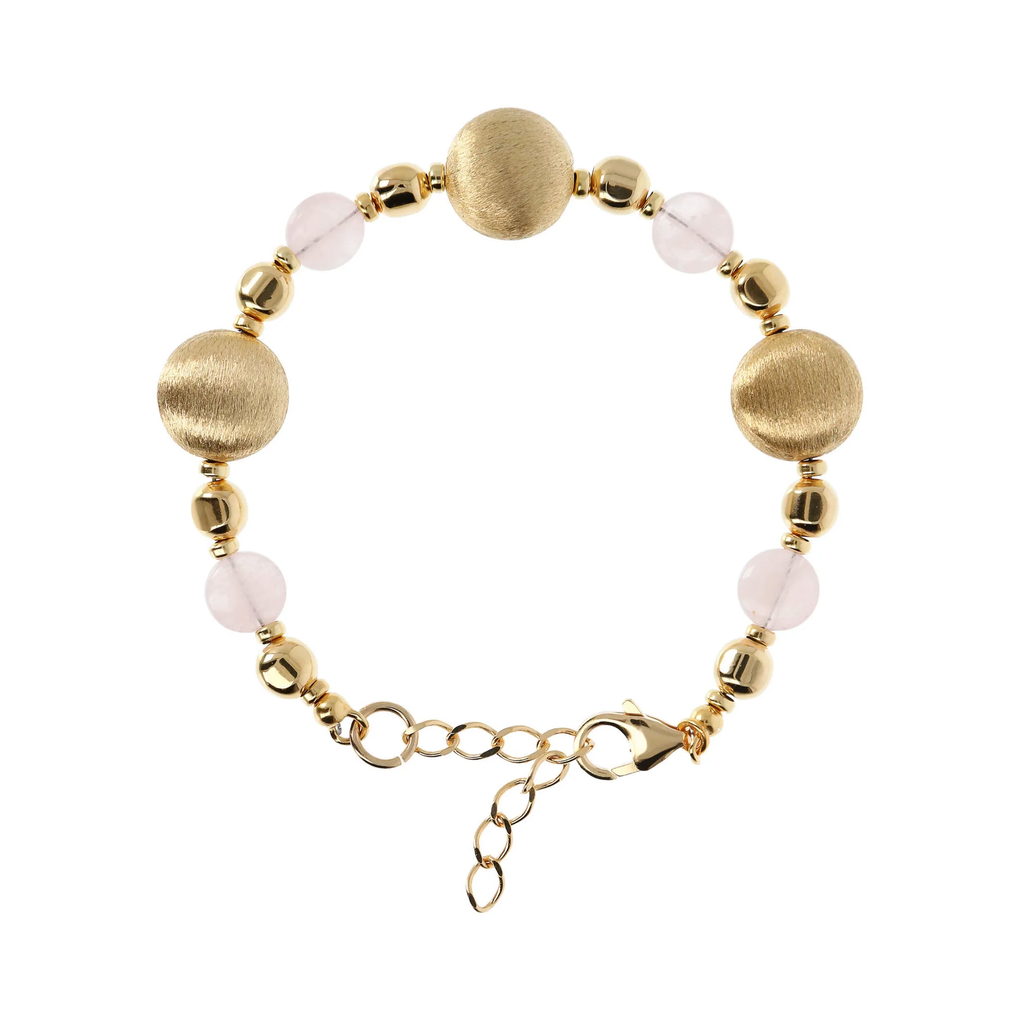 Bracelet Etrusca Gioielli en alliage Golden, doré à l'or fin 18ct, agrémenté d'une alternance de petites sphères dorées, de sphères en pierre naturelle (quartz céleste ou rose) et d'éléments ronds à surface satinée; fermoir mousqueton avec rallonge.