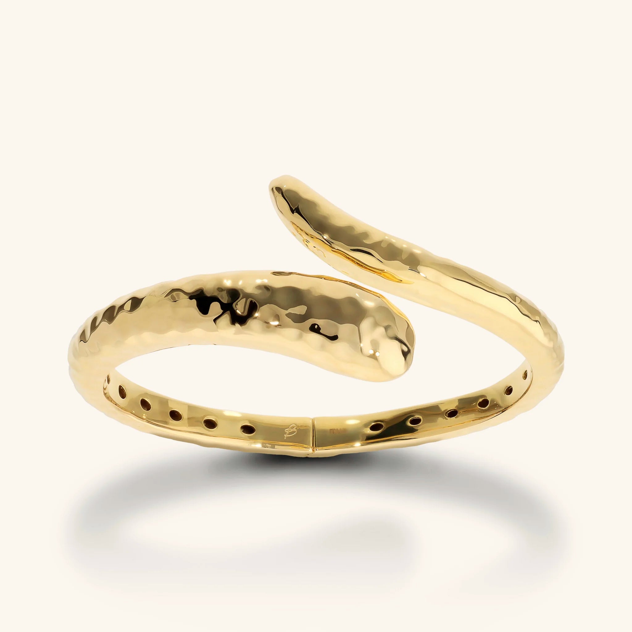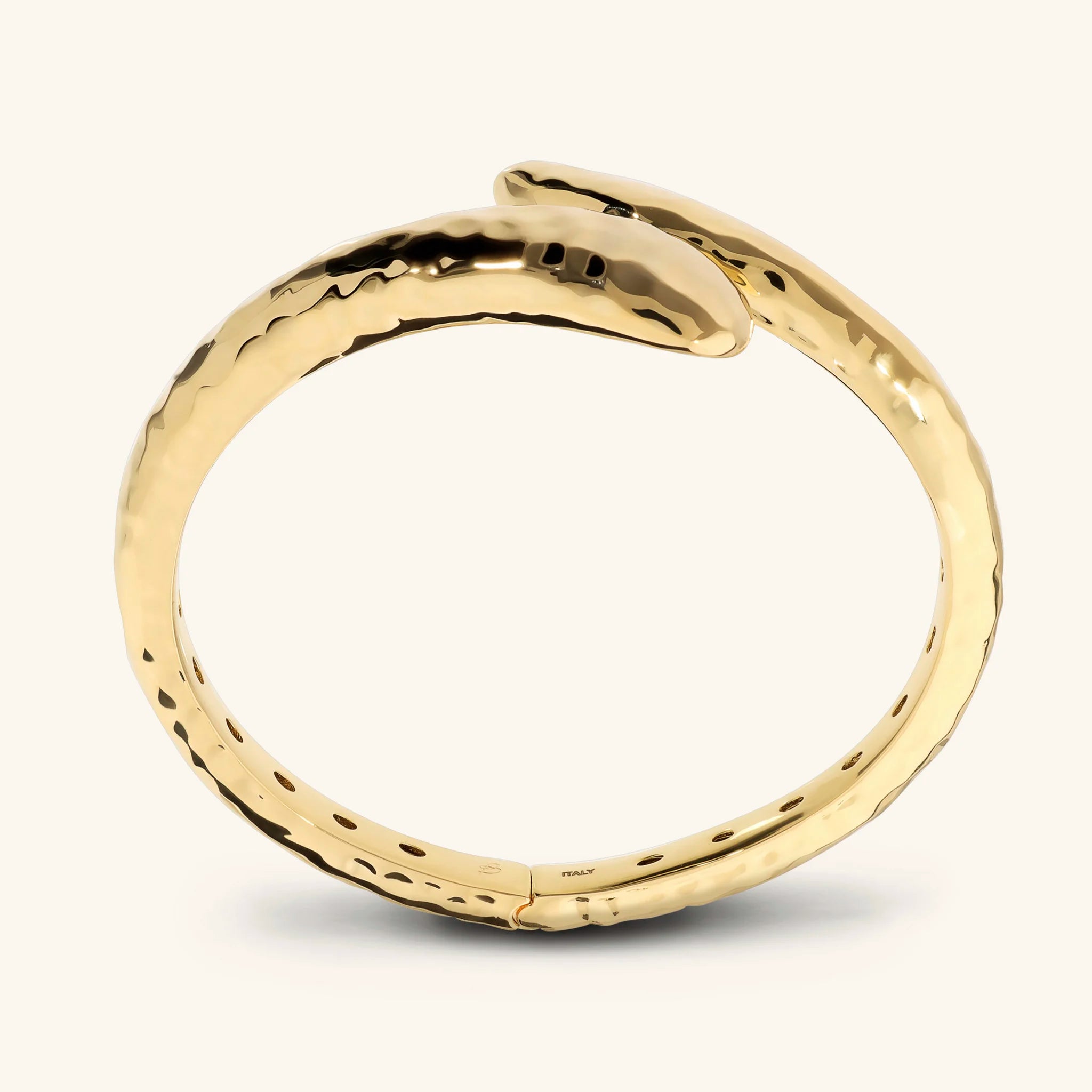 Bracelet contrarié Etrusca Gioielli réalisé en alliage Golden, doré à l'or jaune fin 18ct, avec surface martelée.