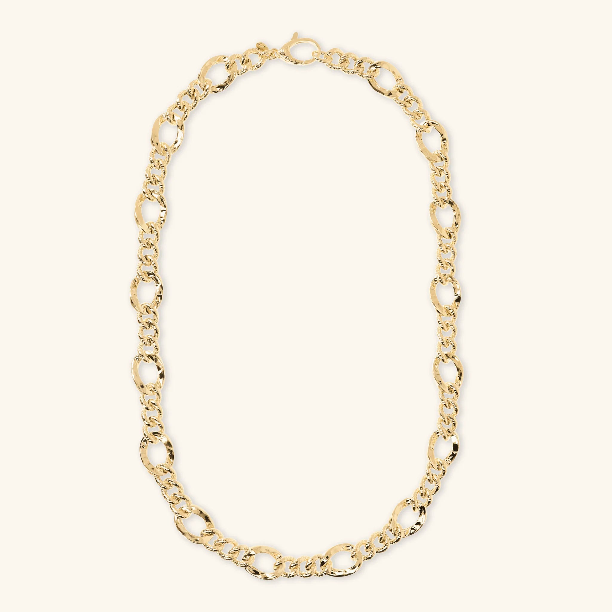 Collier matinée Etrusca Gioielli en alliage Golden, doré à l'or fin 18ct, agrémenté d'une chaîne figaro composée d'une alternance de mailles gourmettes à surface martelée; Fermoir à homard.