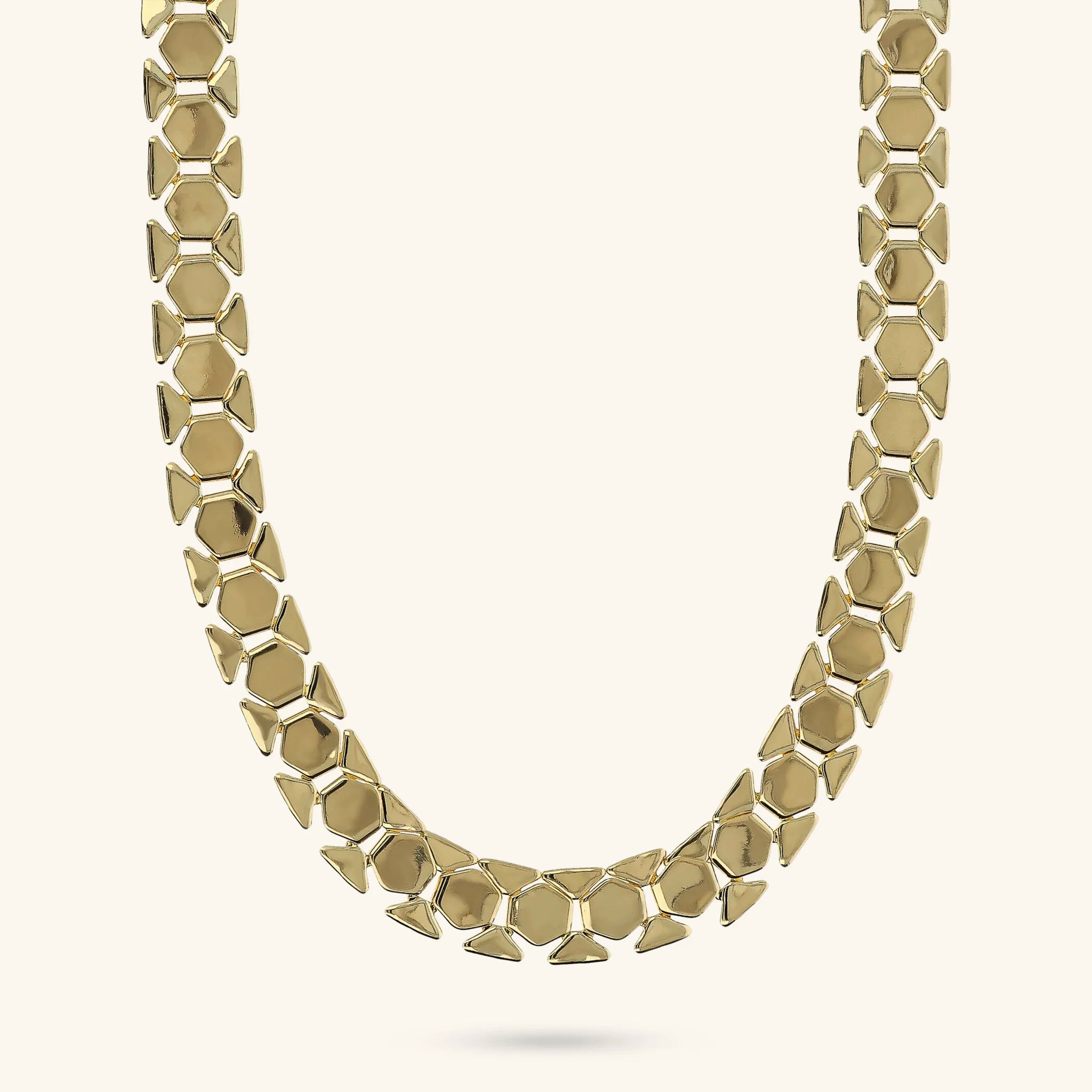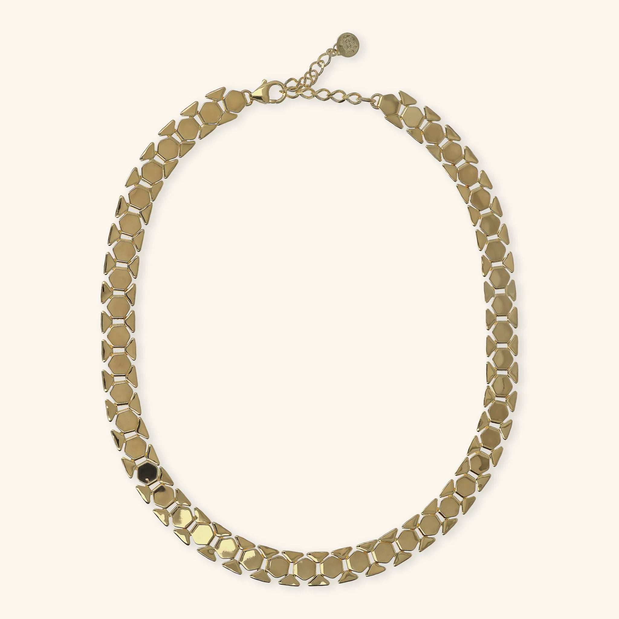 Collier ras du cou Etrusca Gioielli en alliage doré, doré à l'or jaune fin 18ct, avec lien géométrique plat. Longueur 44,5+5 cm de rallonge. Fermoir mousqueton.