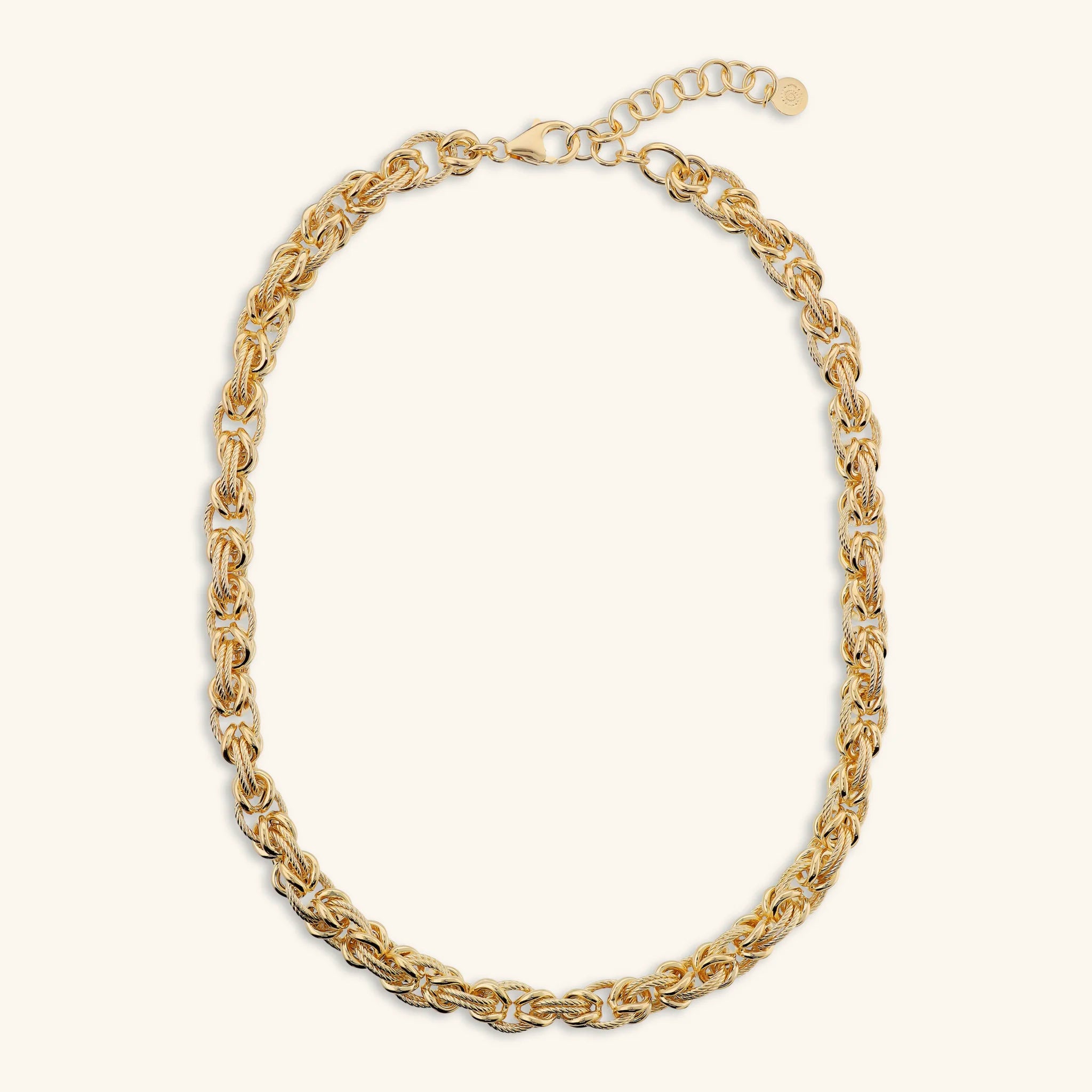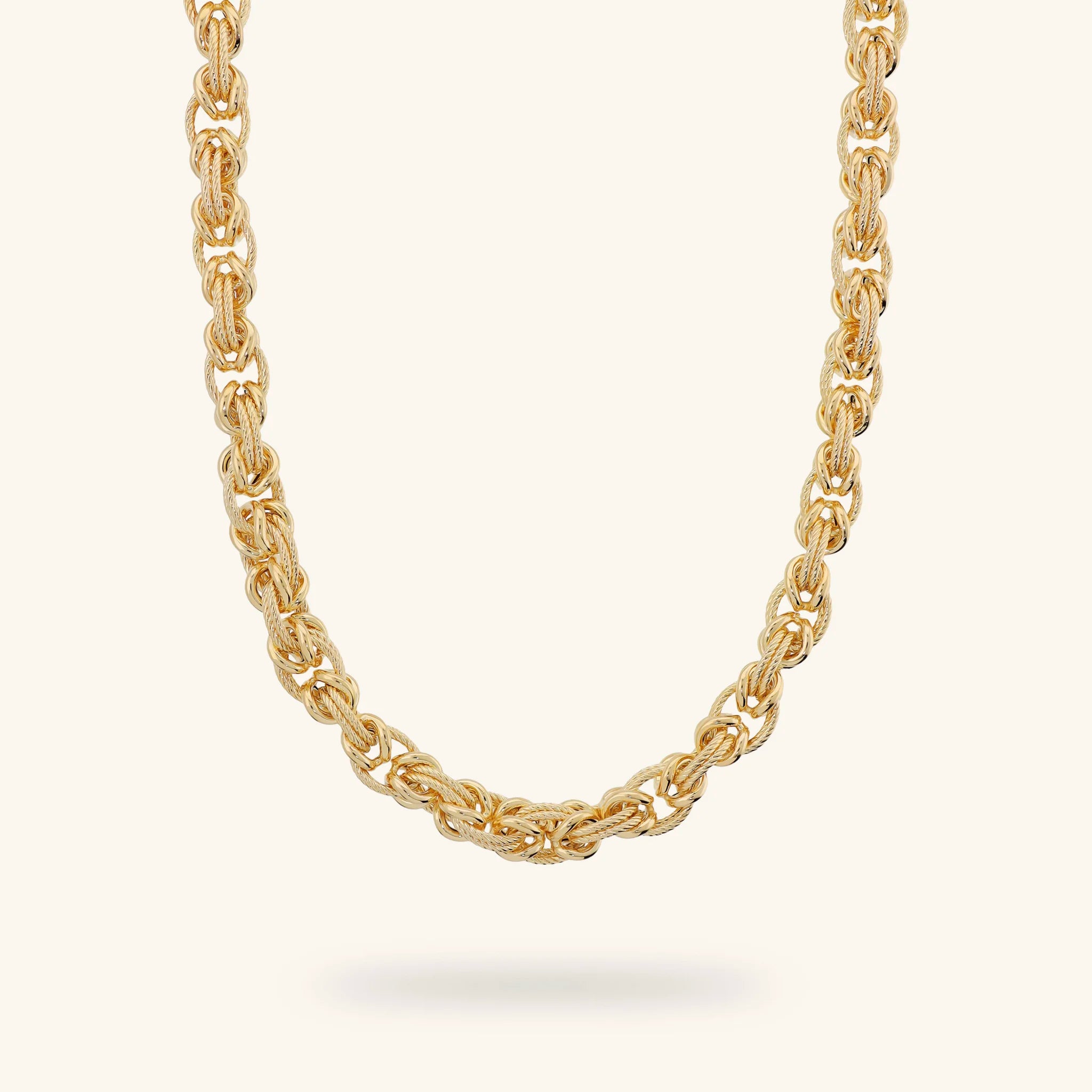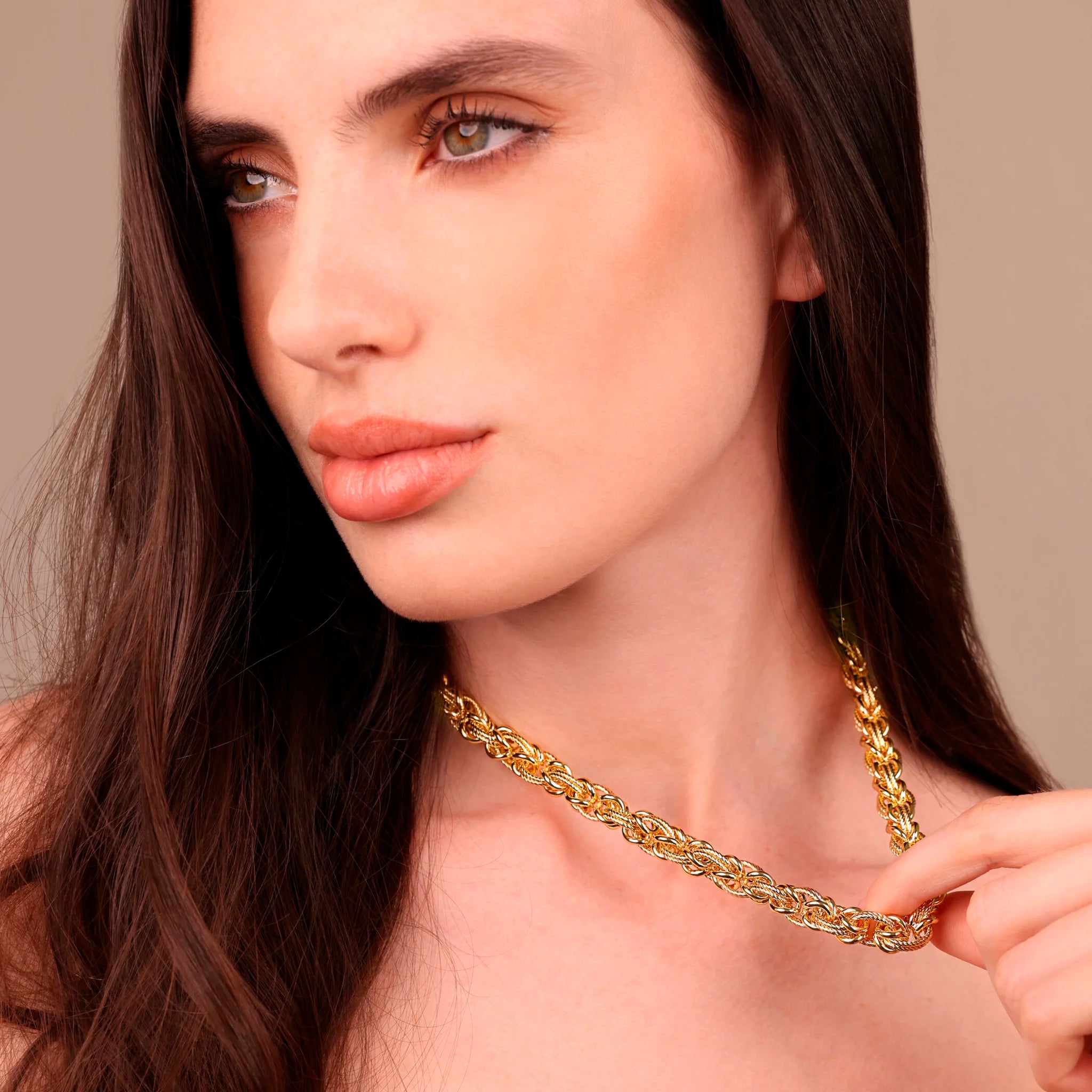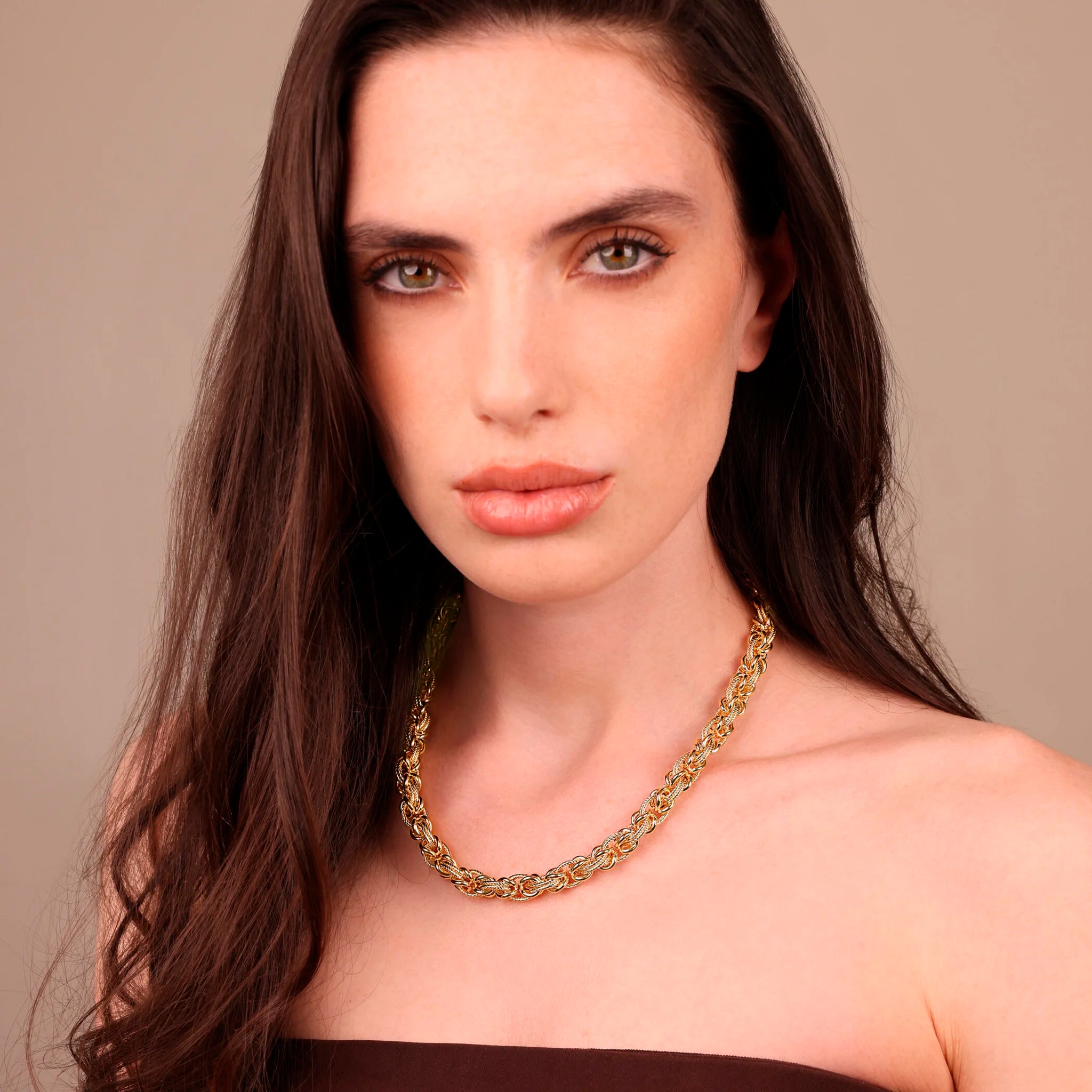 Collier ras du cou Etrusca Gioielli réalisé en alliage Golden, plaqué or jaune 18kt, avec des maillons ovales entrelacés et une surface finement travaillée. Fermoir mousqueton.