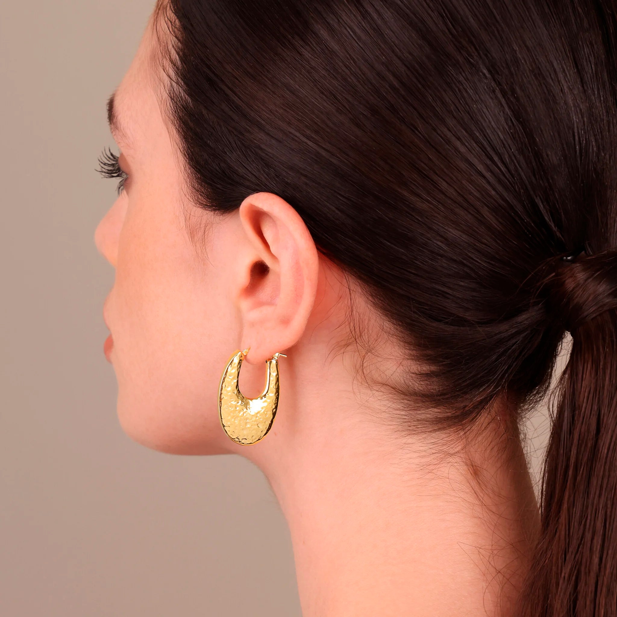 Boucles d'oreilles à anneau ovales électroformées martelées