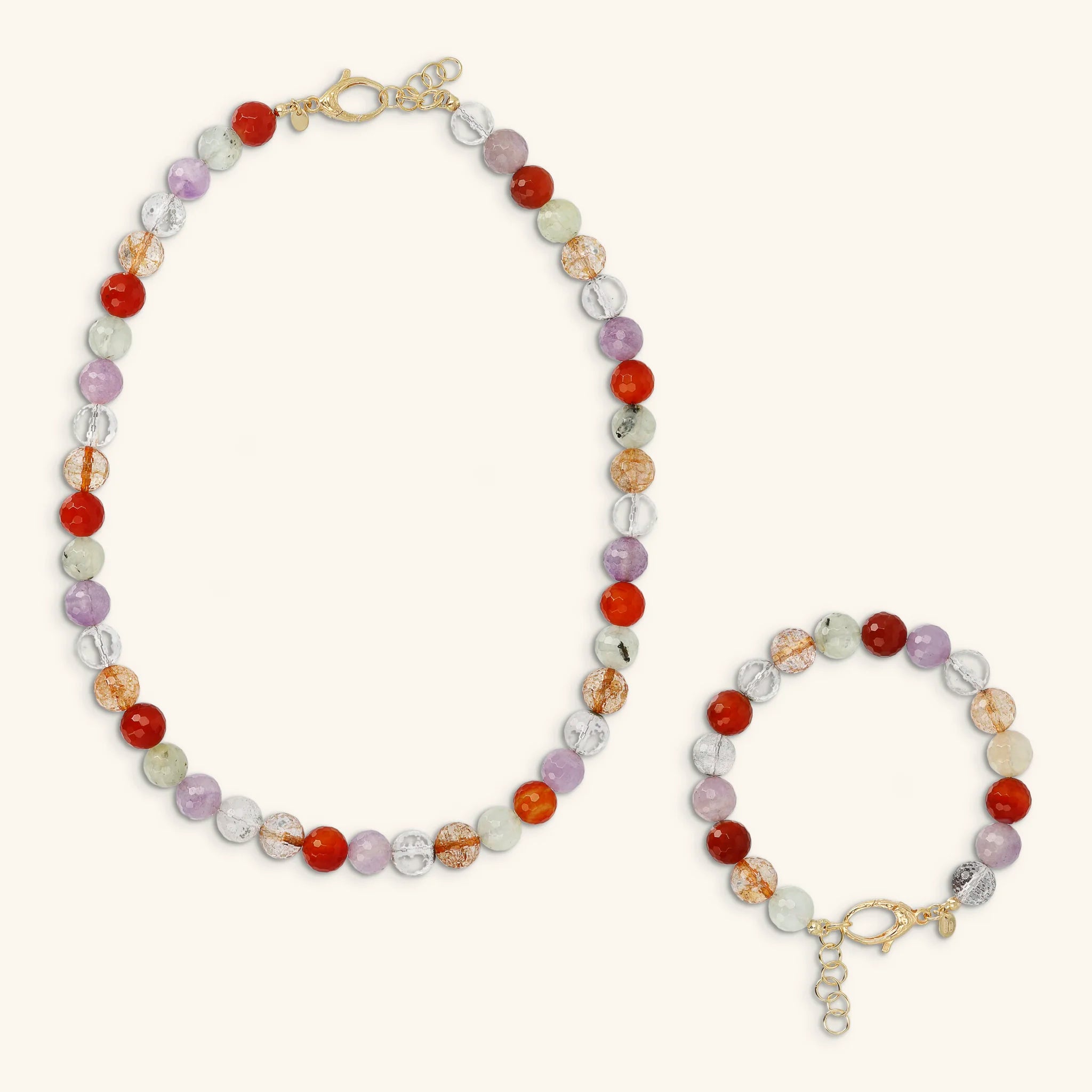 Ensemble Collier + Bracelet en Argent 925 plaqué Or Jaune 18kt avec Quartz Multicolore