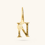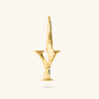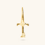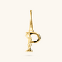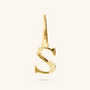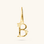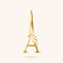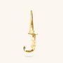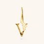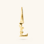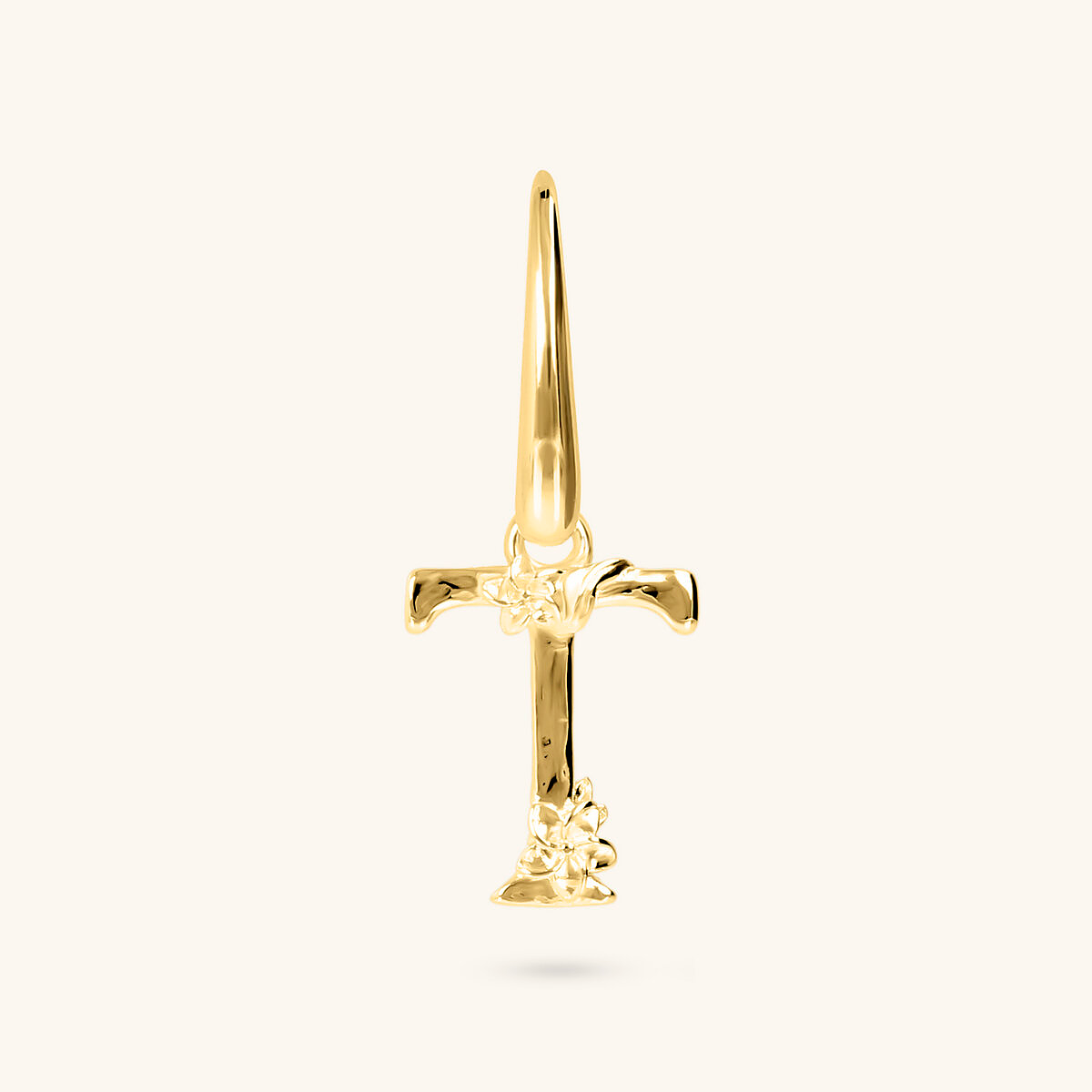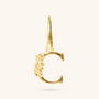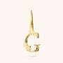 Boucle d'oreille unique initiale Etrusca Gioielli montée sur une base dorée, dorée à l'or fin 18ct, avec surface martelée et élément floral décoratif ; longueur de 2,2 cm.