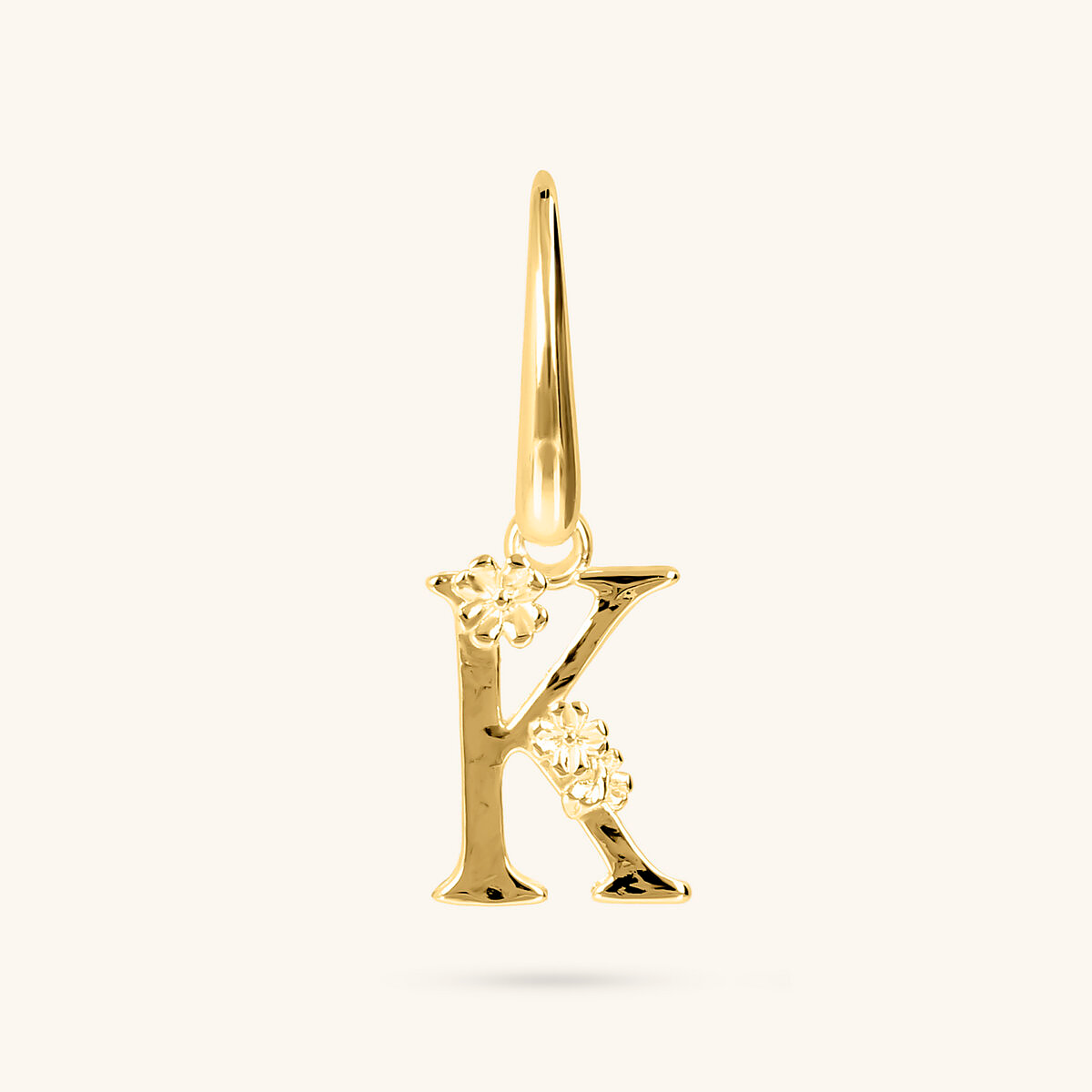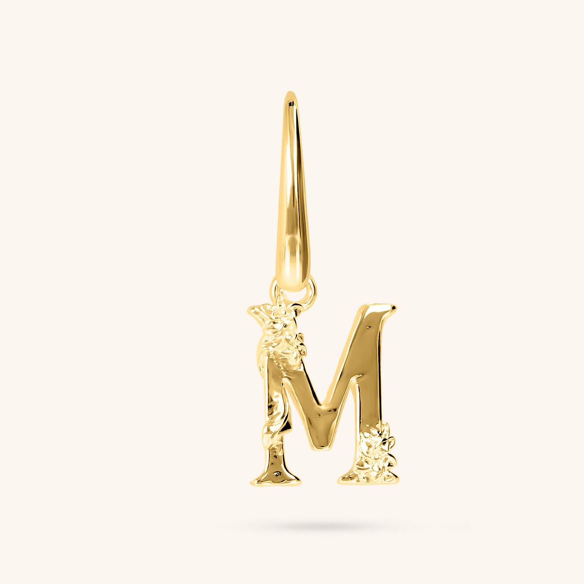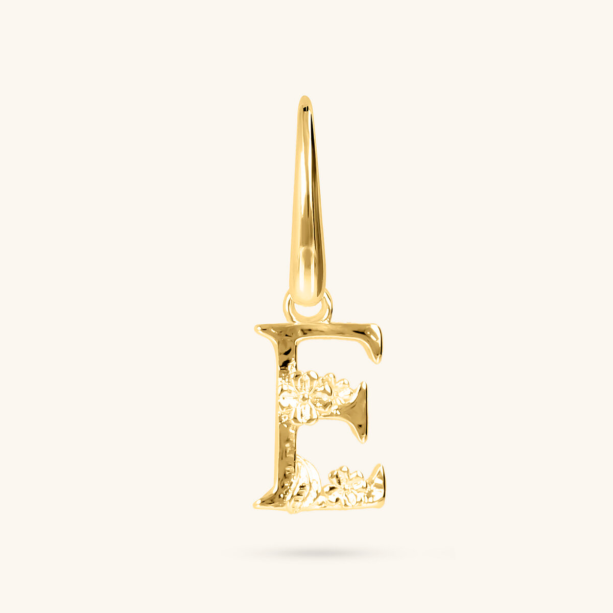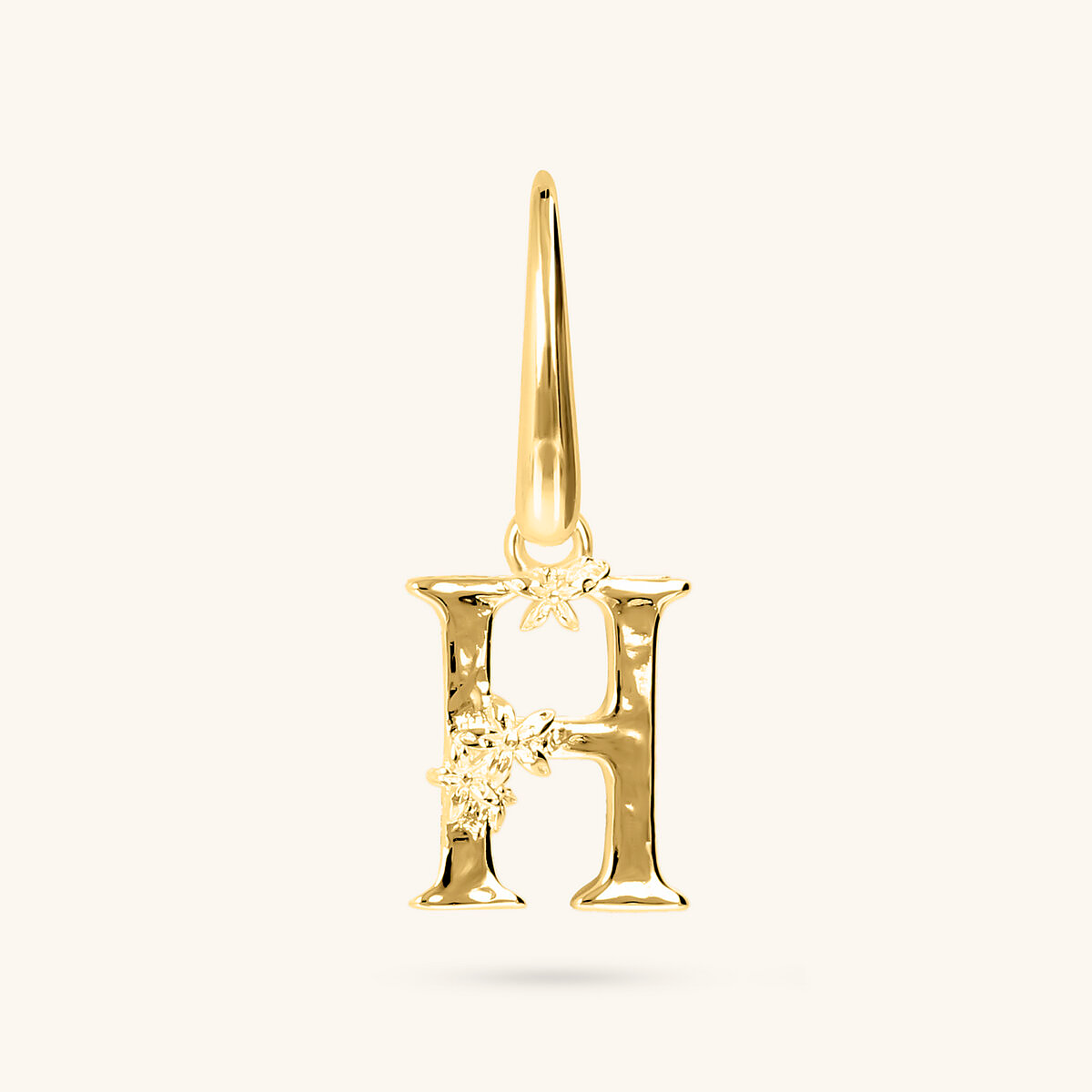 Boucle d'oreille unique initiale avec fleur et surface martelée