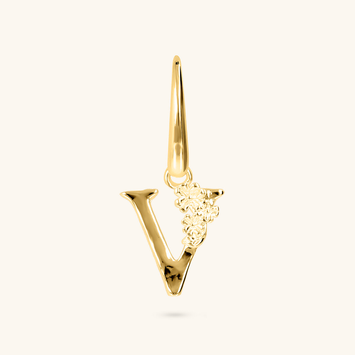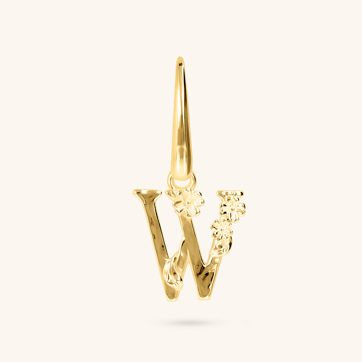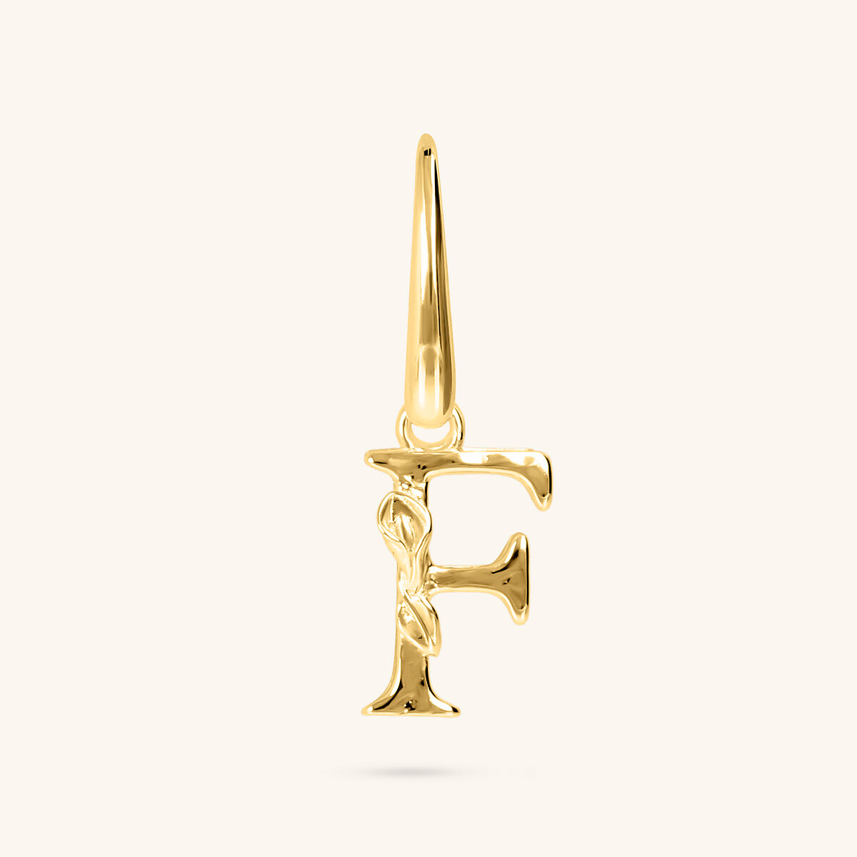 Boucle d'oreille unique initiale avec fleur et surface martelée