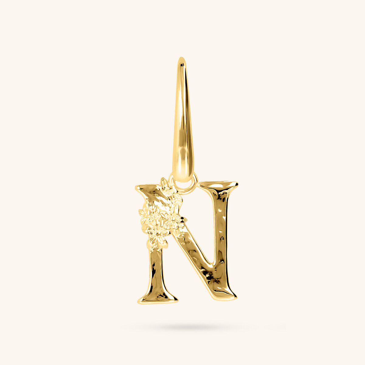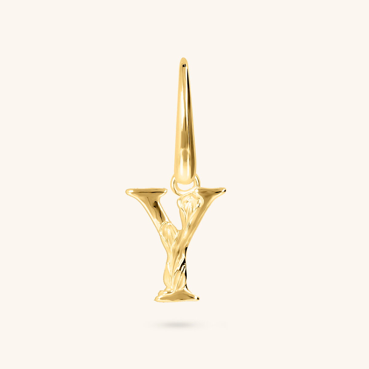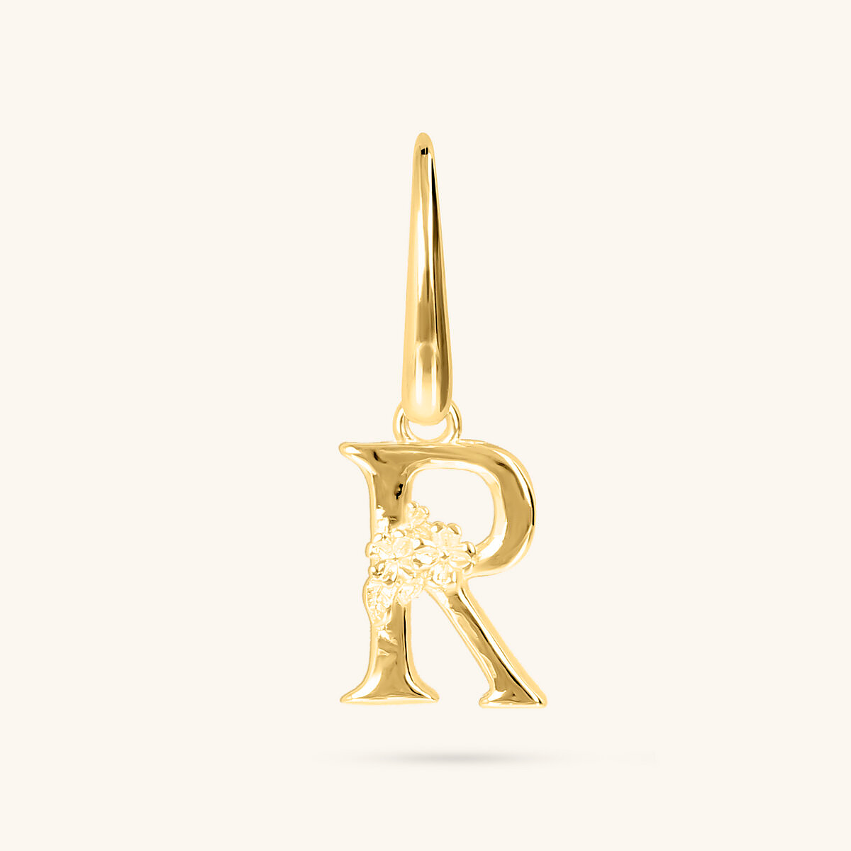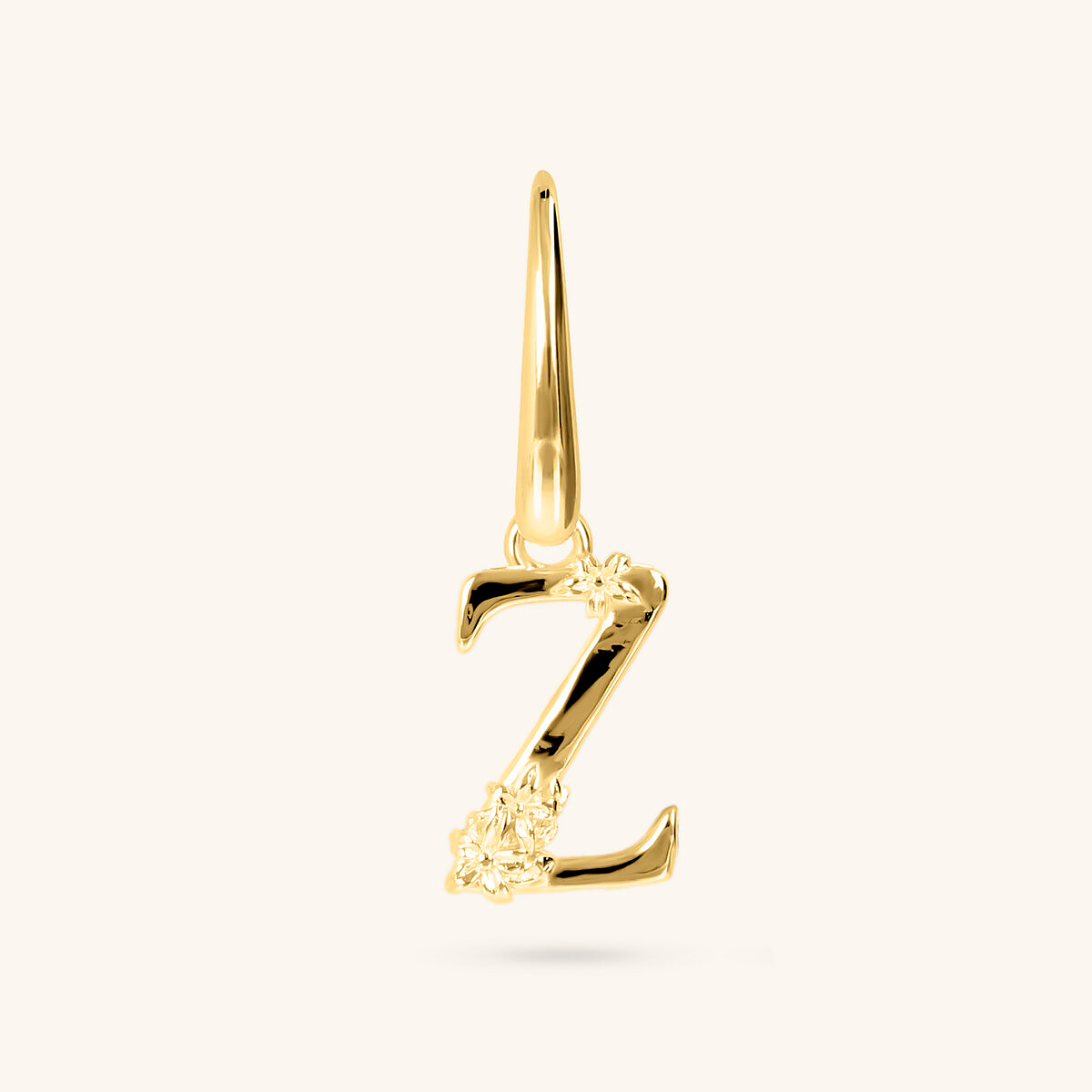 Boucle d'oreille unique initiale avec fleur et surface martelée