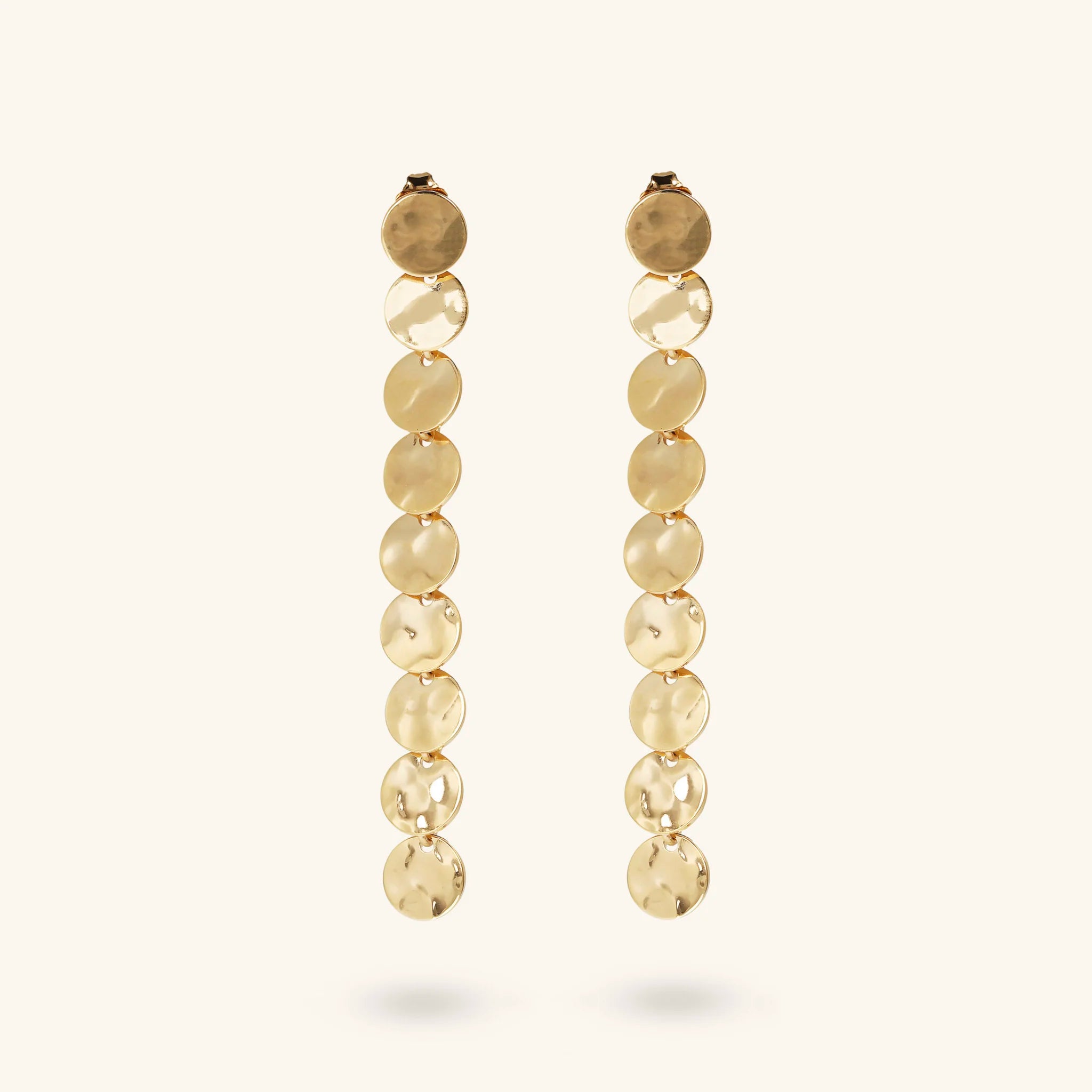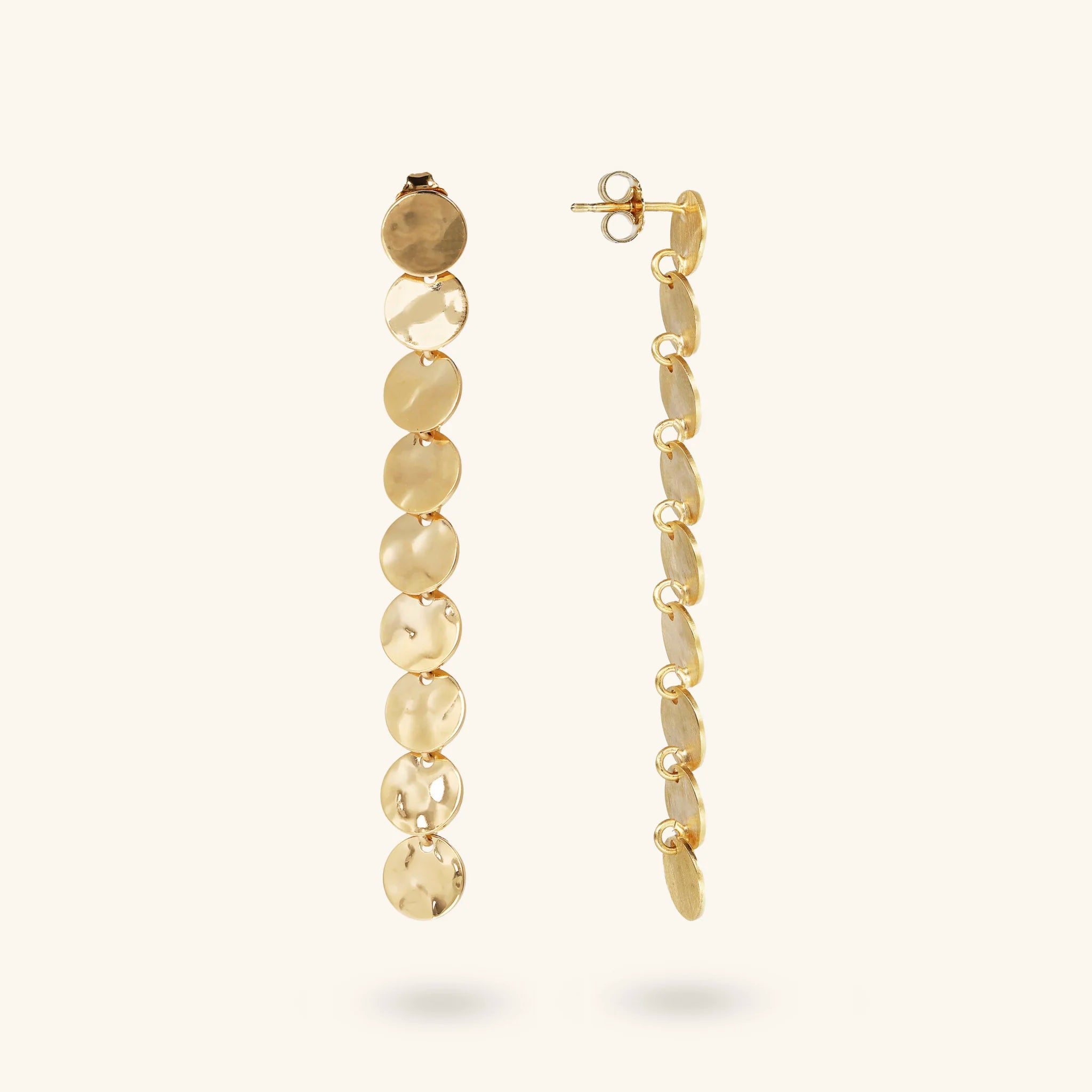 Boucles d'Oreilles Pendantes Fil avec Petits Disques Martelés