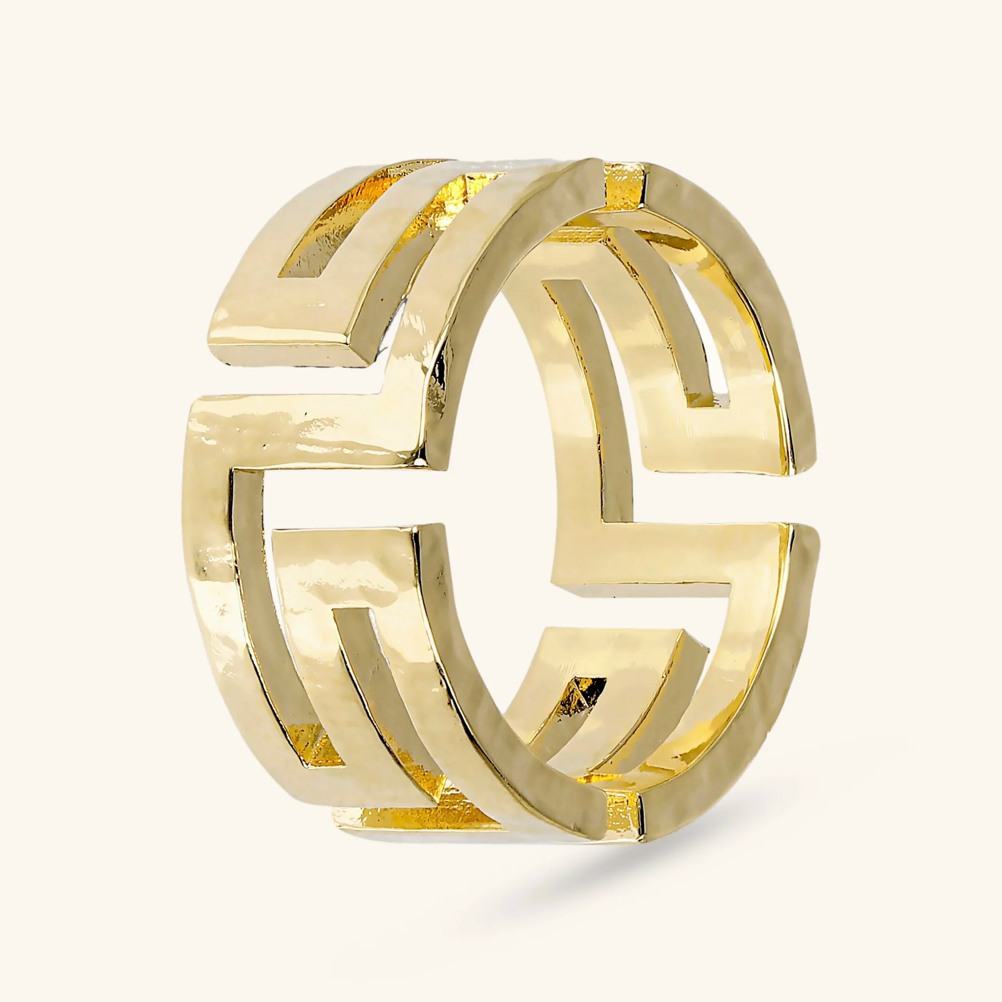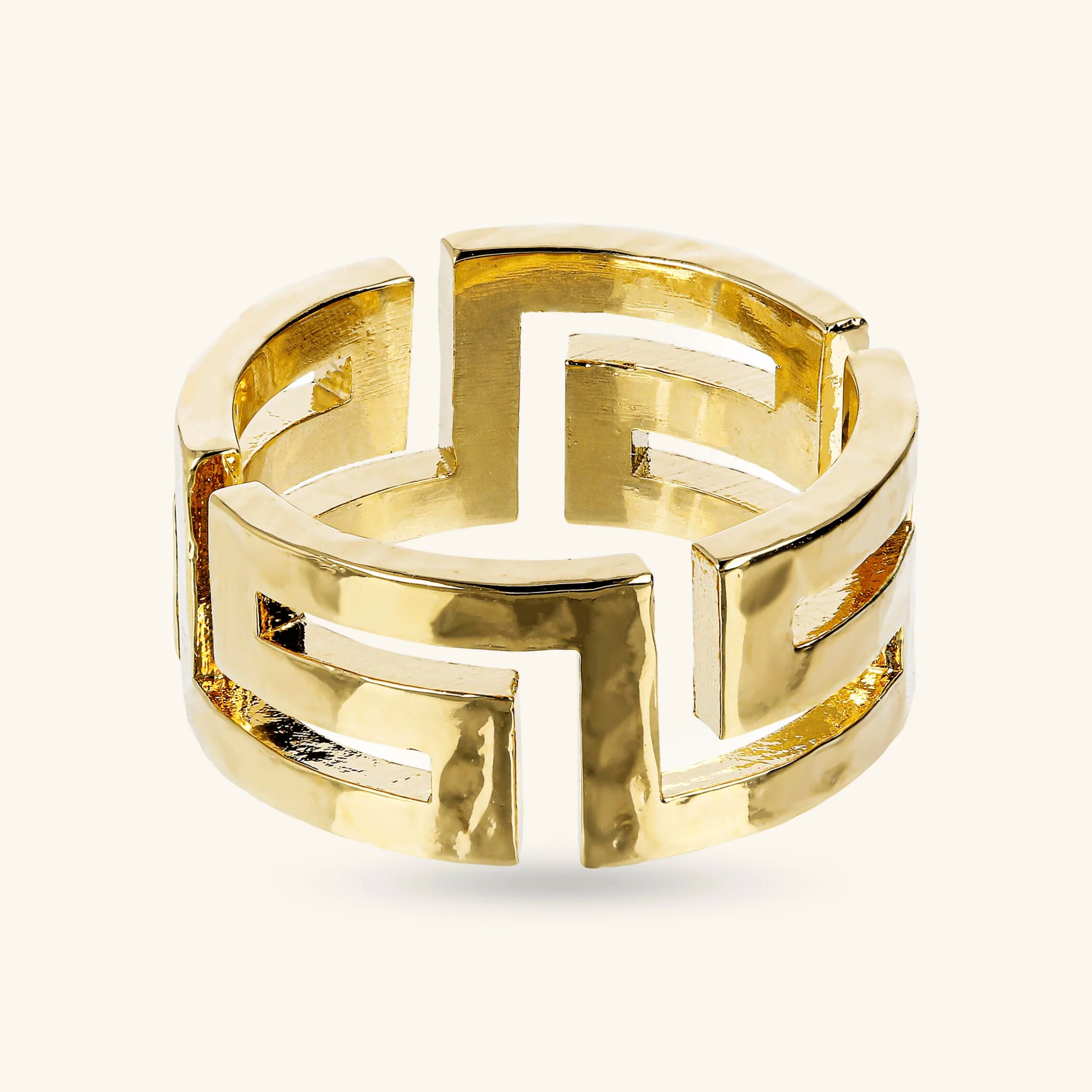 Anneau martelé avec grec perforé
