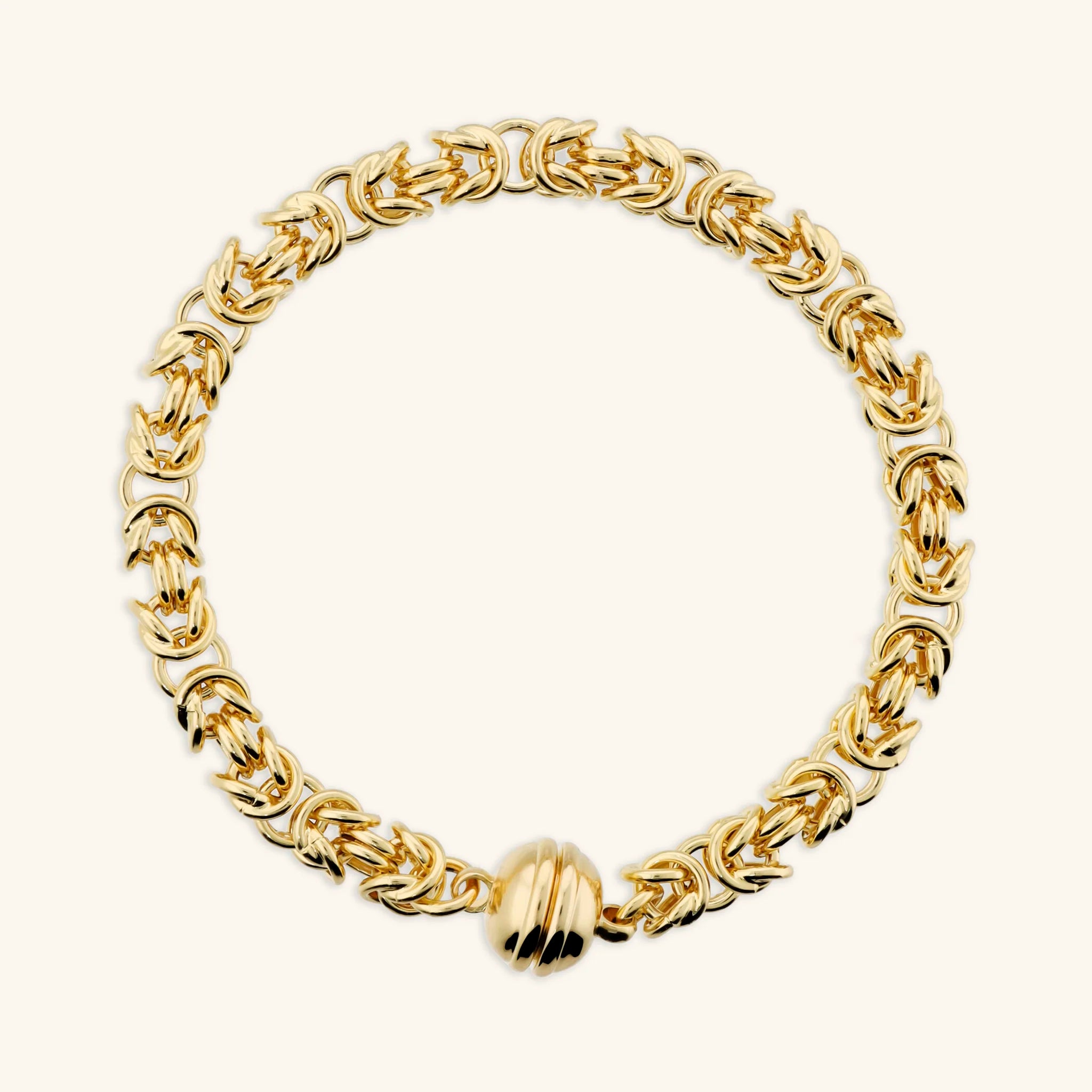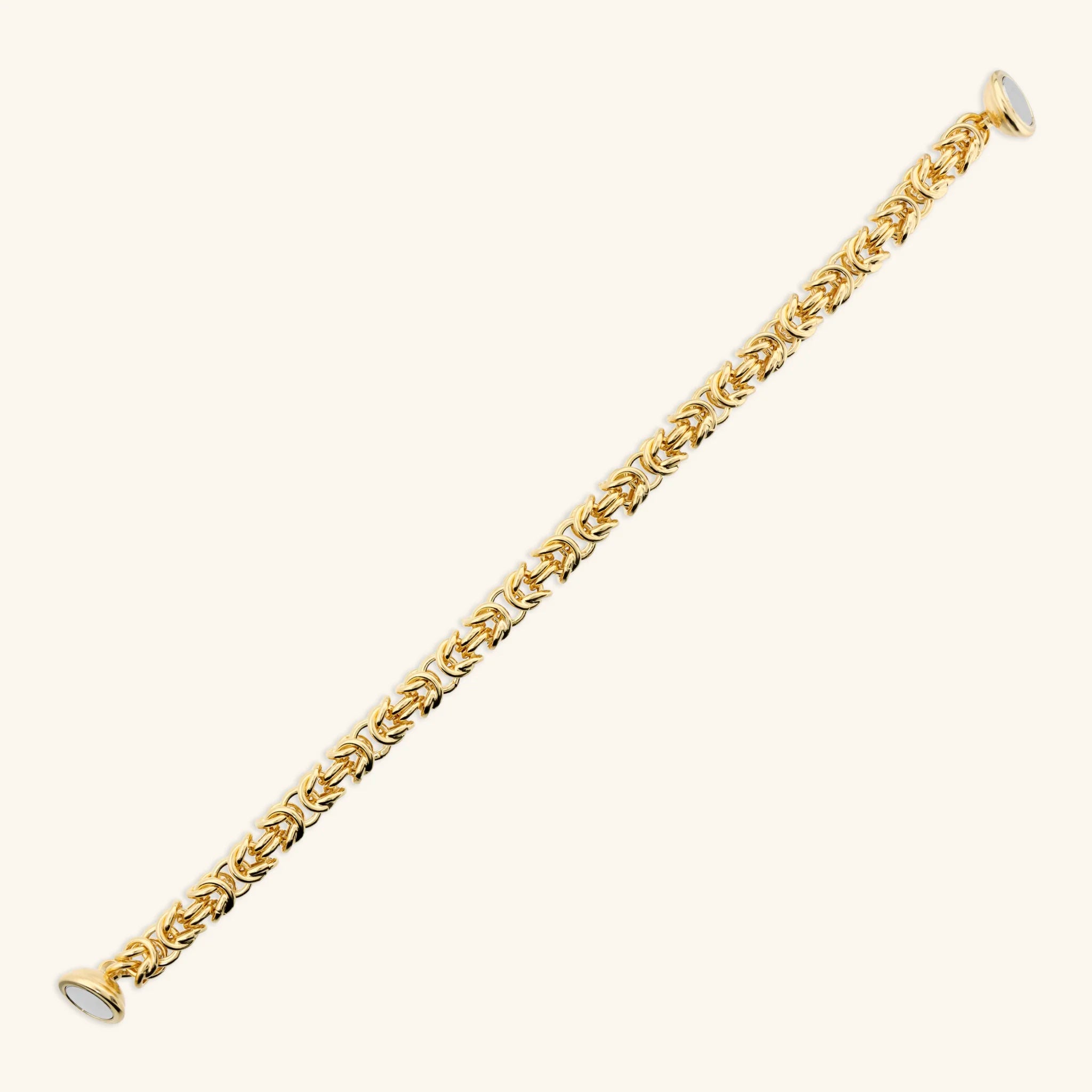 Bracelet Etrusca Gioielli réalisé en alliage Golden, plaqué or jaune 18kt, avec maille byzantine. Finition brillante. Fermeture magnétique.
