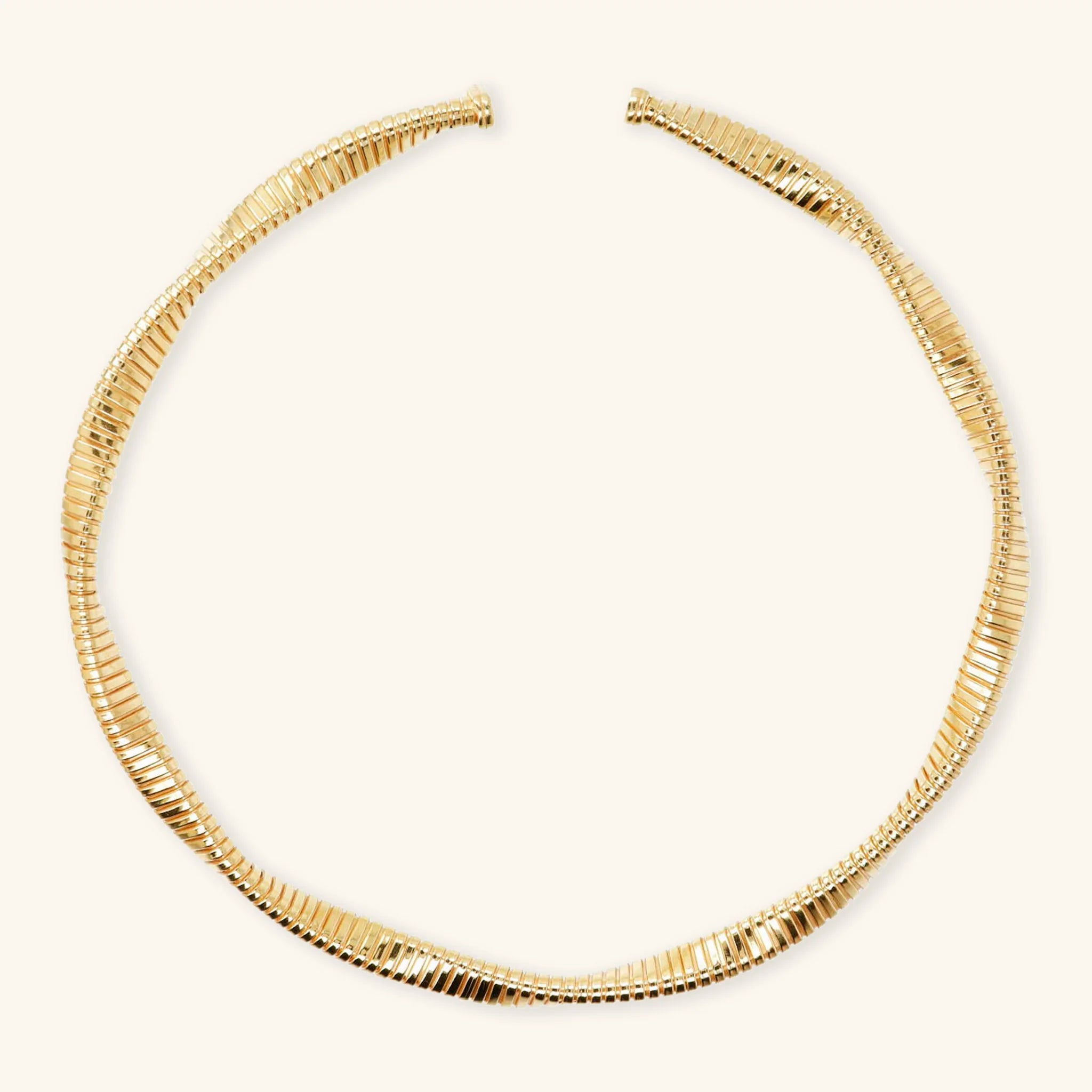 Collier ras de cou Tubogas en alliage Golden, doré à l'or fin 18ct, au design torsadé.