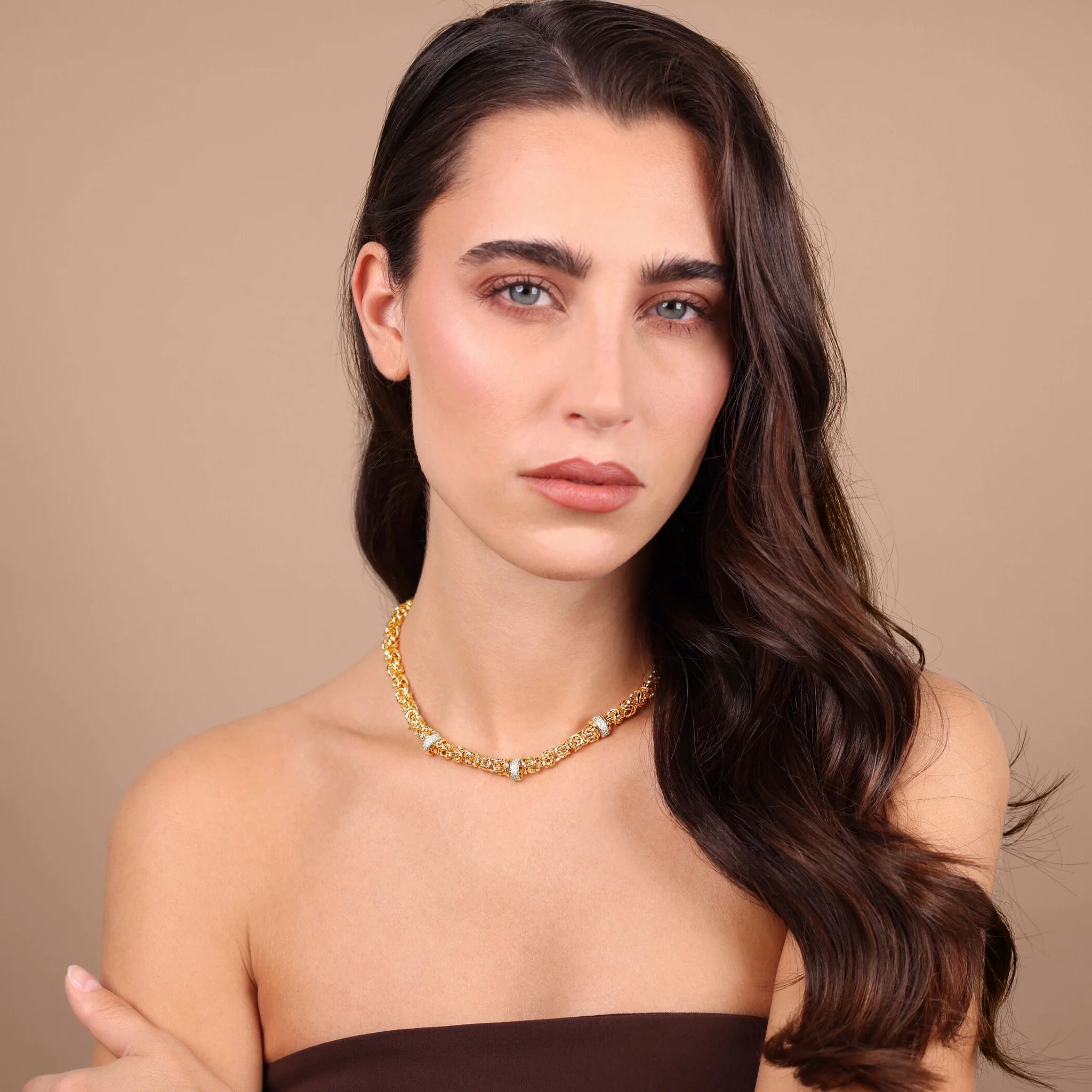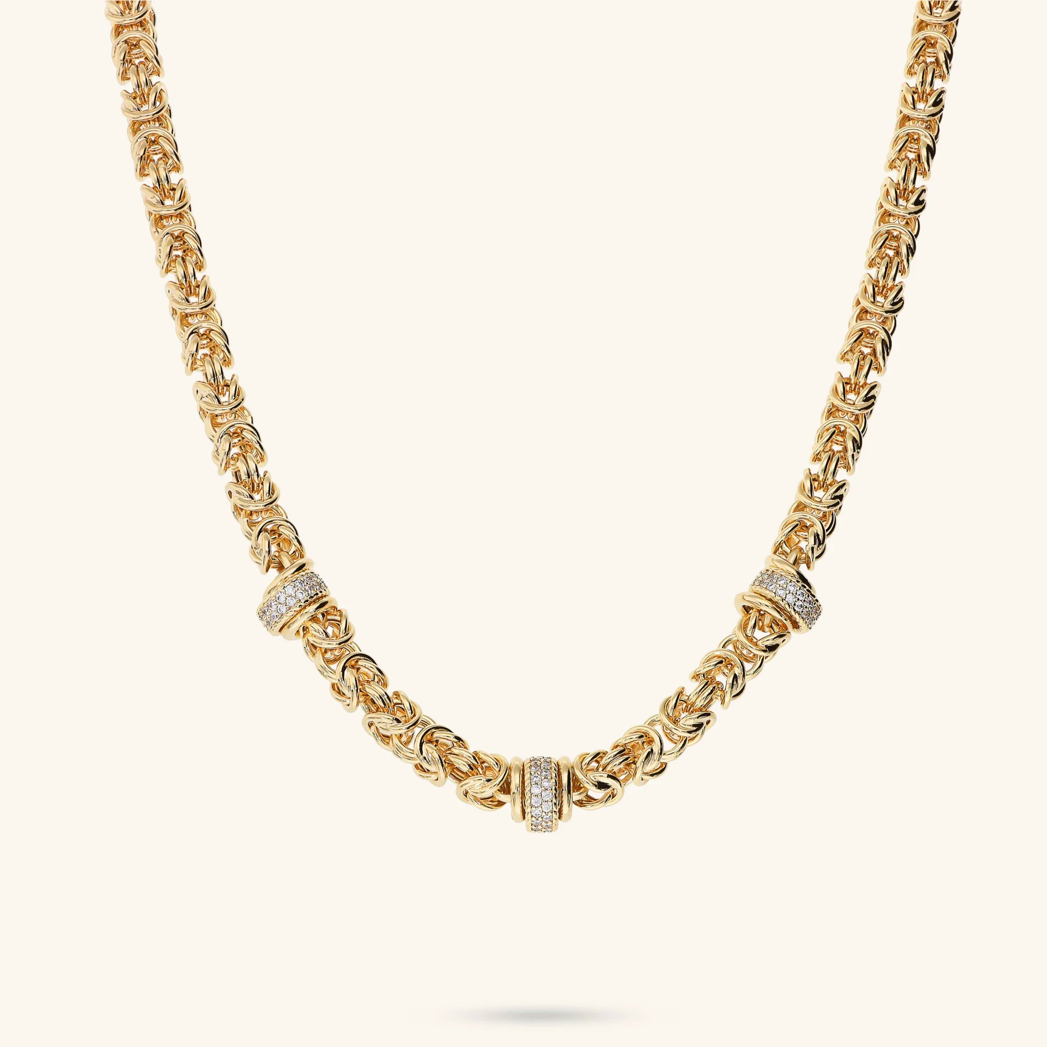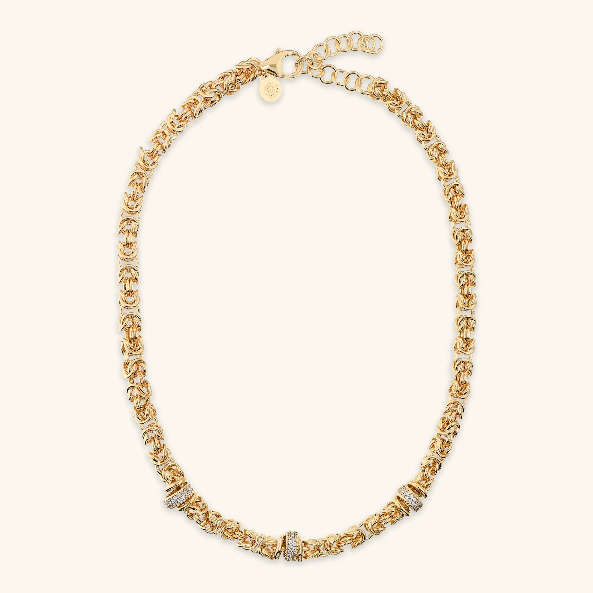 Collier Ras du Cou Chaîne Byzantine avec Rondelles en Pavé de Zircon Cubique