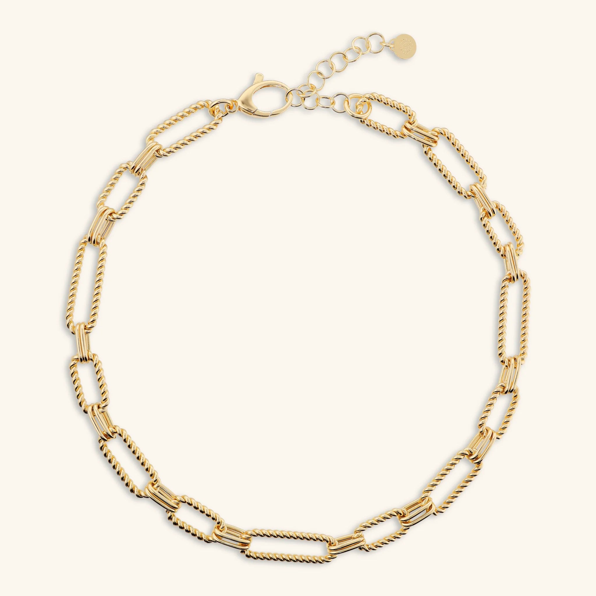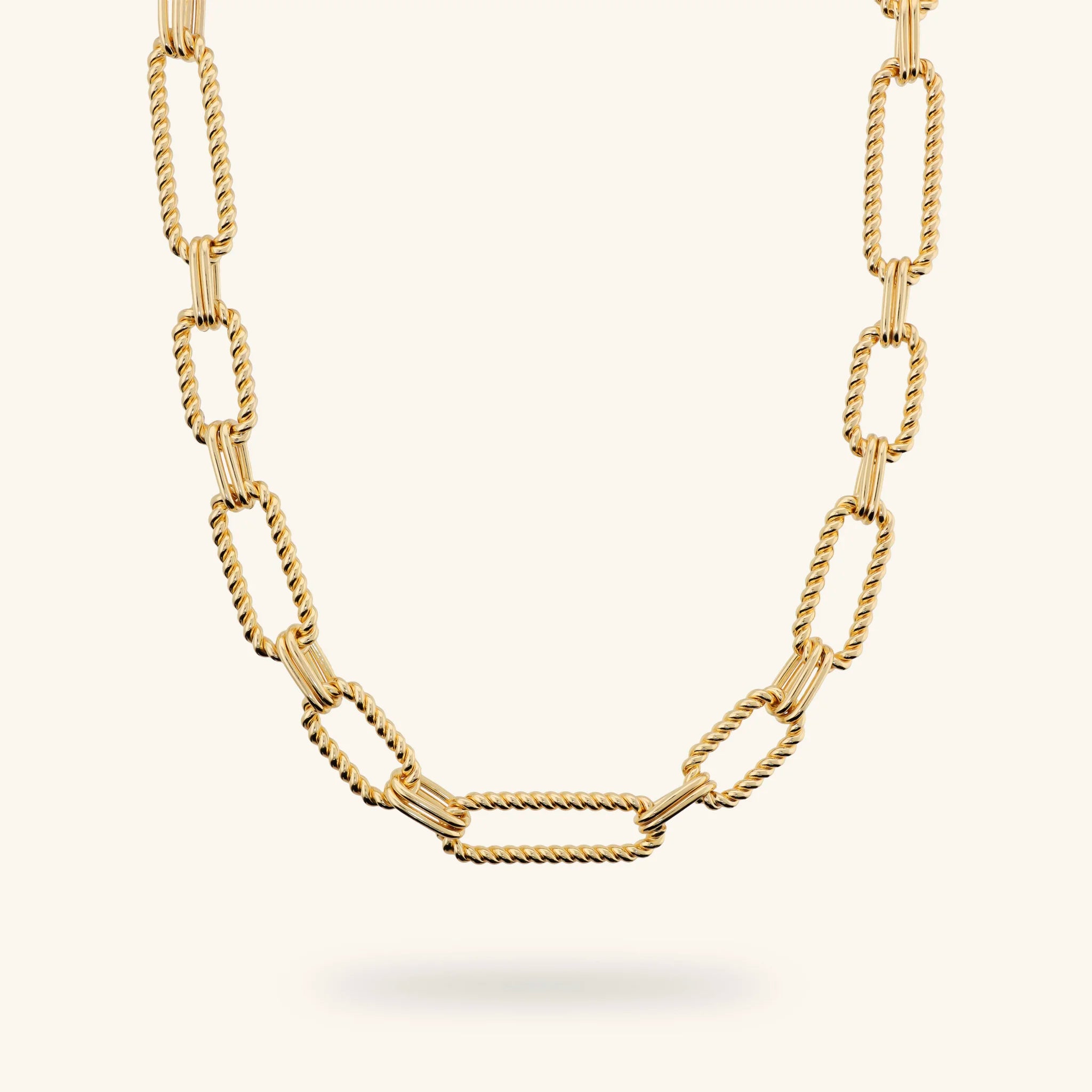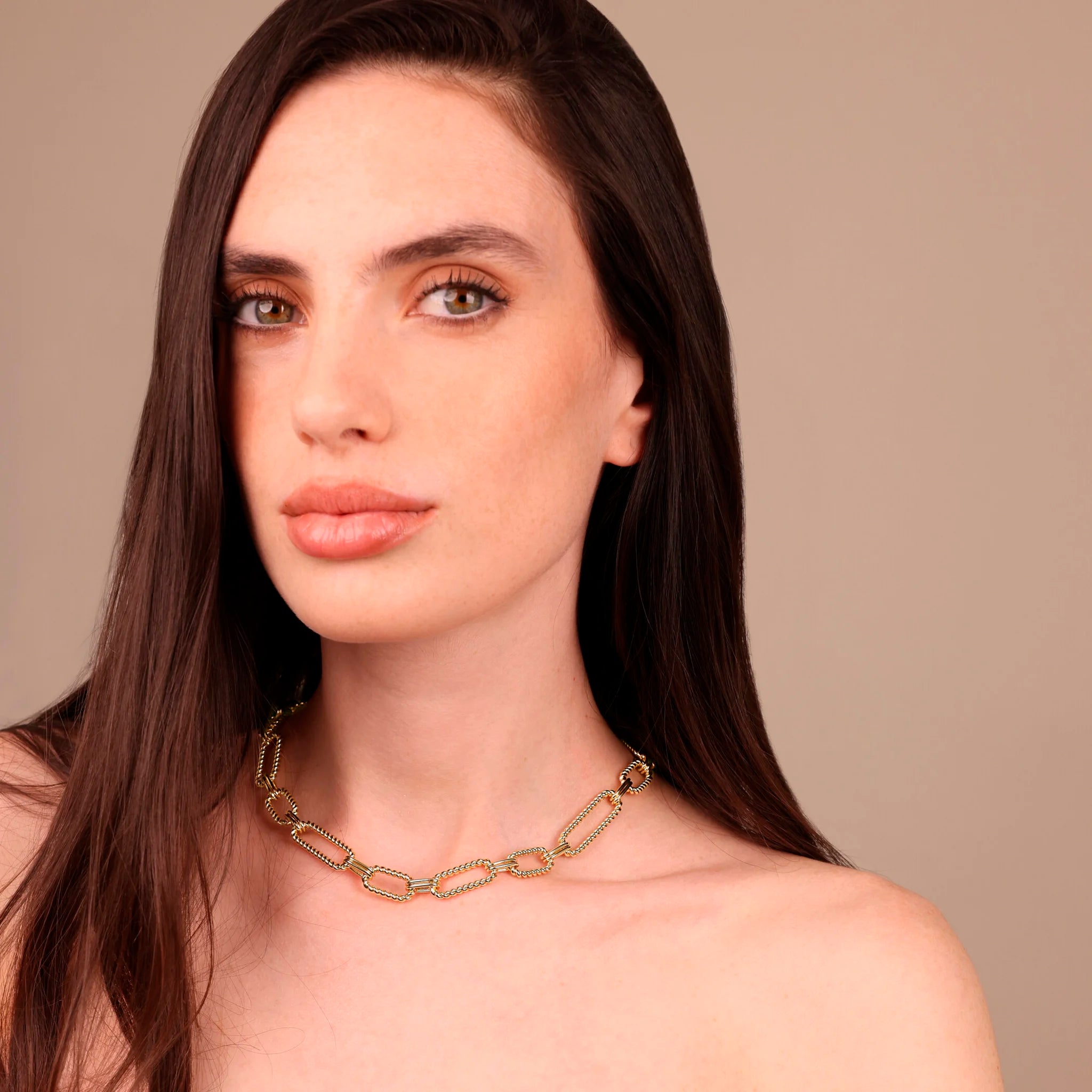 Collier ras du cou Etrusca Gioielli réalisé en alliage Golden, plaqué or jaune 18kt, avec des maillons ovales à texture corde. Fermoir mousqueton.