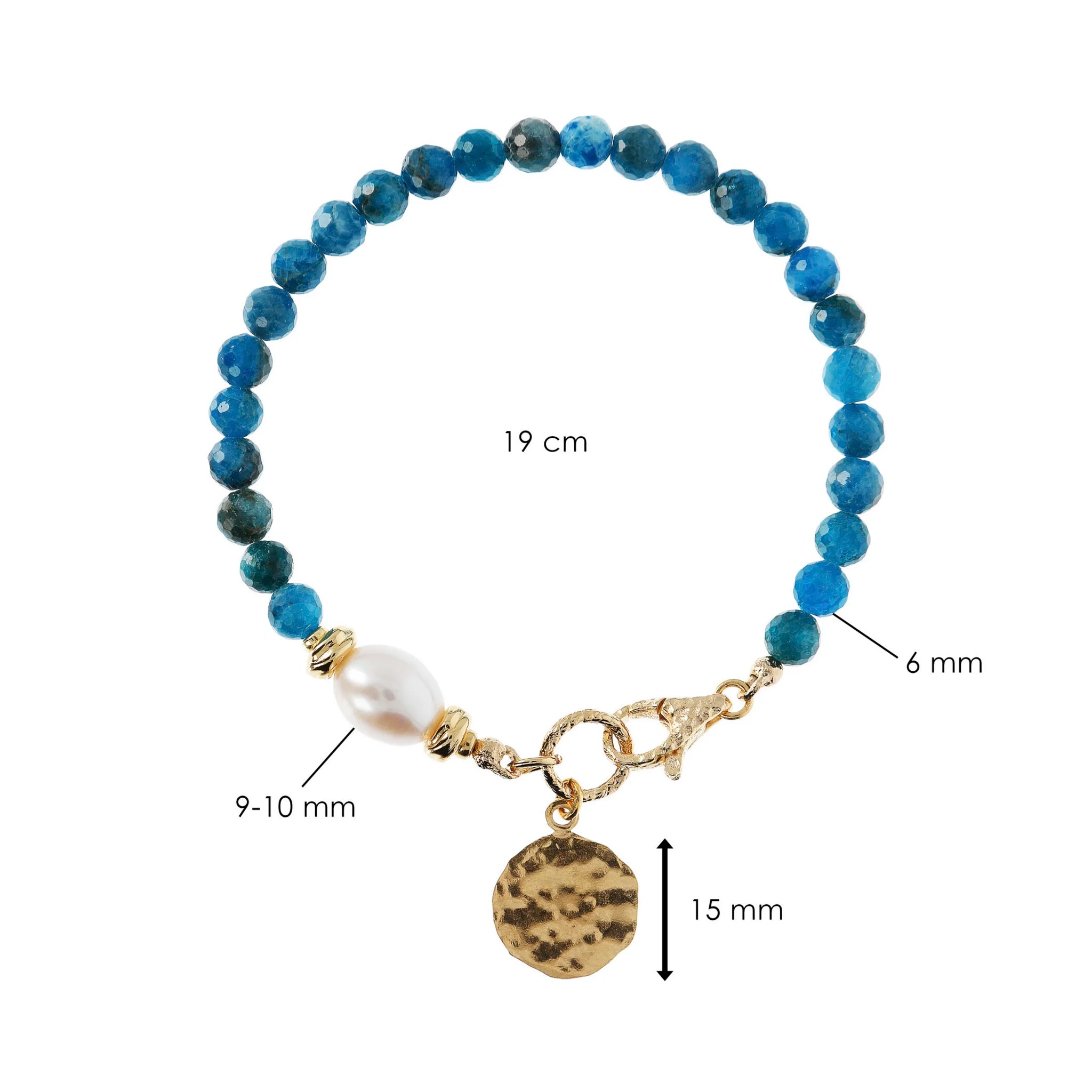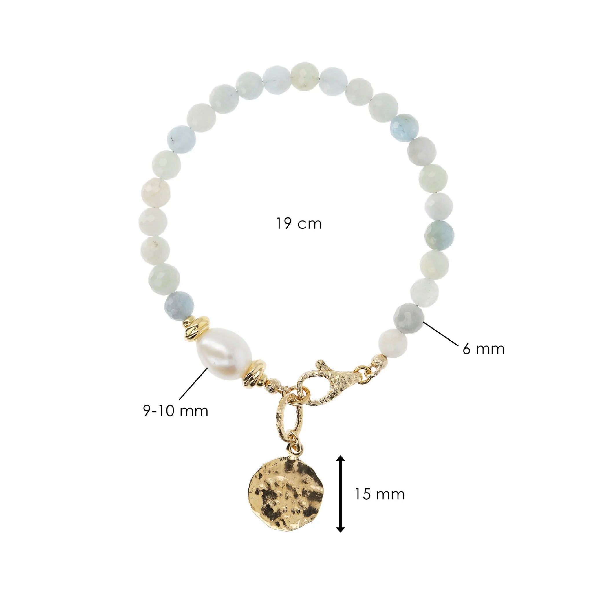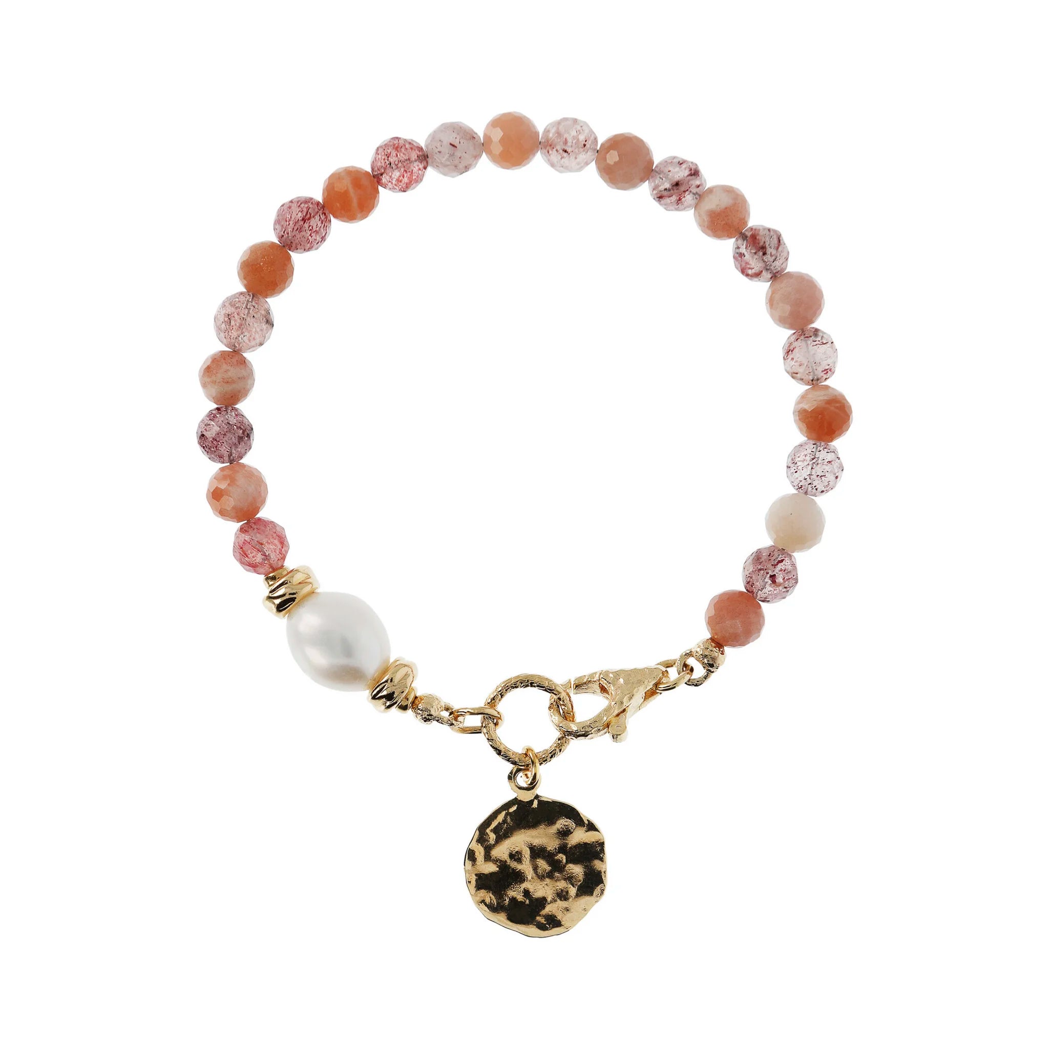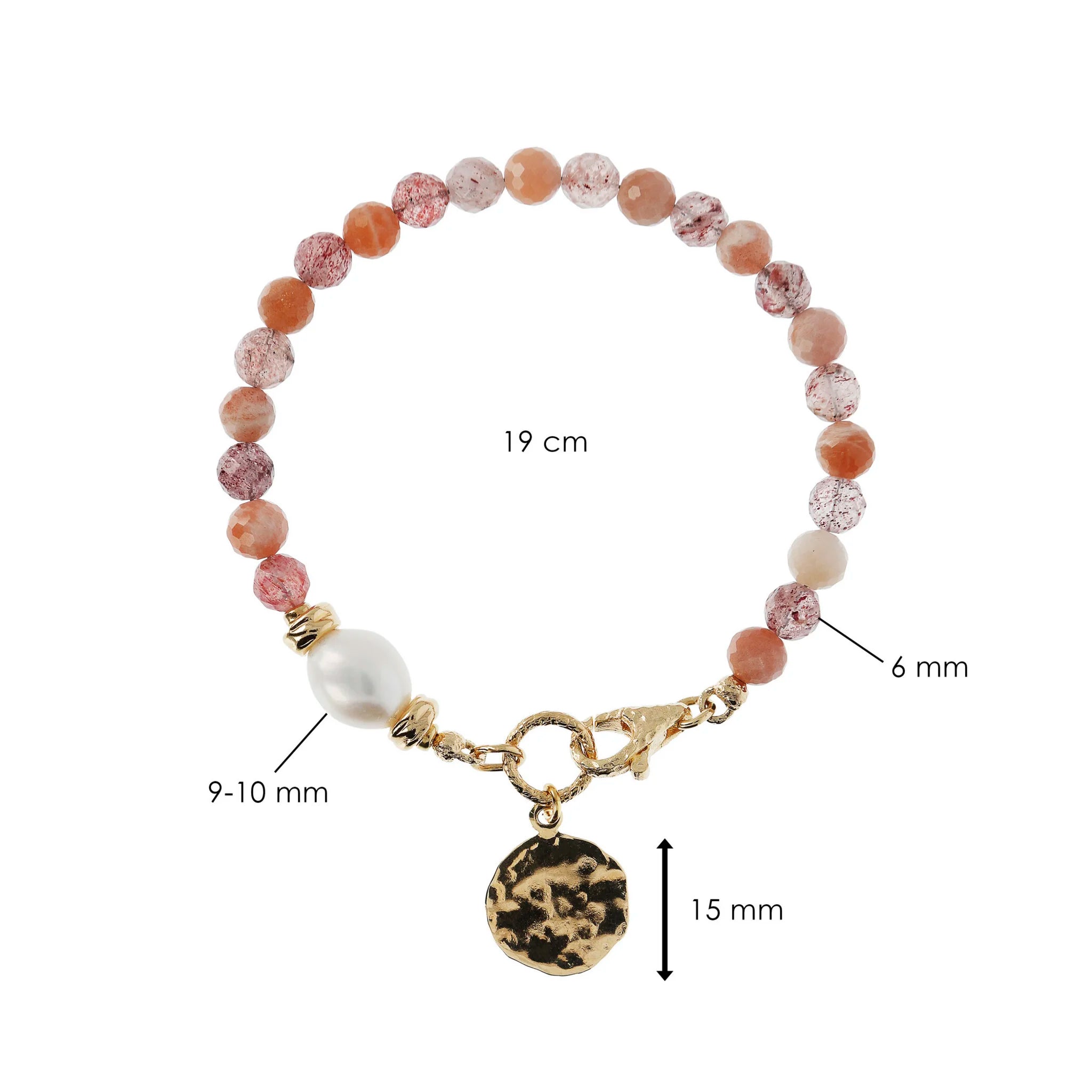 Bracciale con Pietre Naturali Pendente Martellato e Perla Barocca Bianca d'Acqua Dolce Ø 9/10 mm