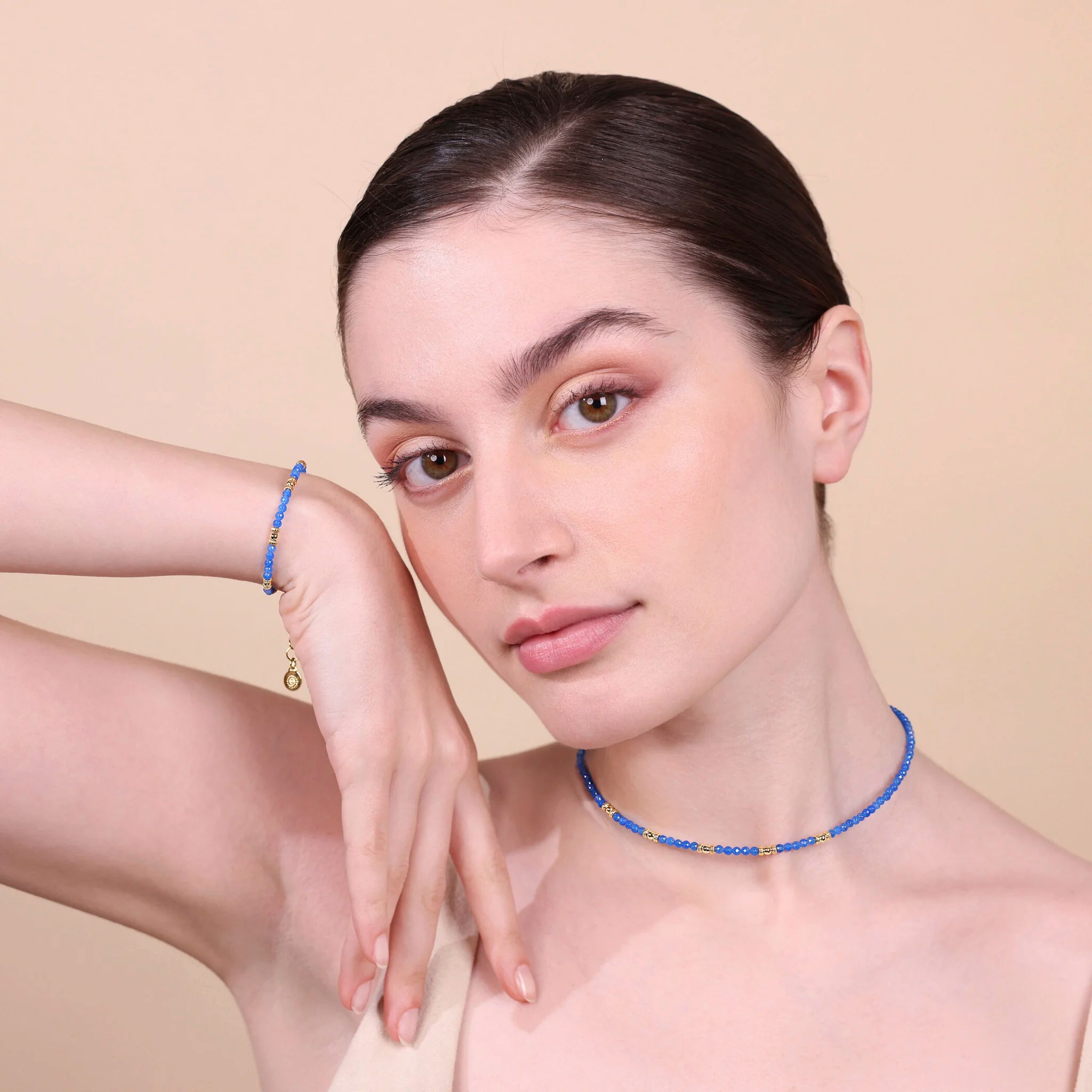 Collana Girocollo con Sfere Golden e Pietra Naturale Quarzite