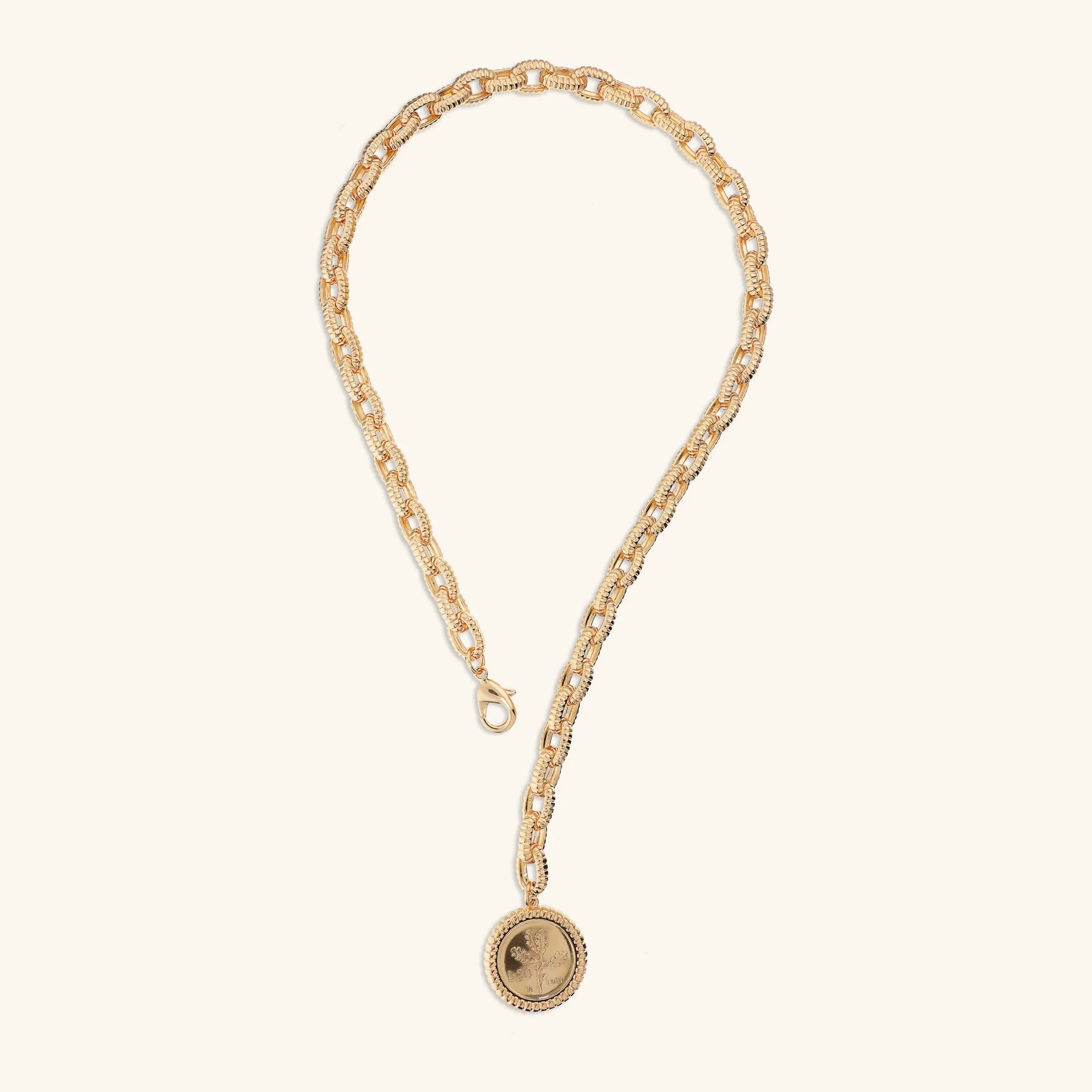 Collana Maglie Ovali Texture Rigata con Ciondolo Moneta
