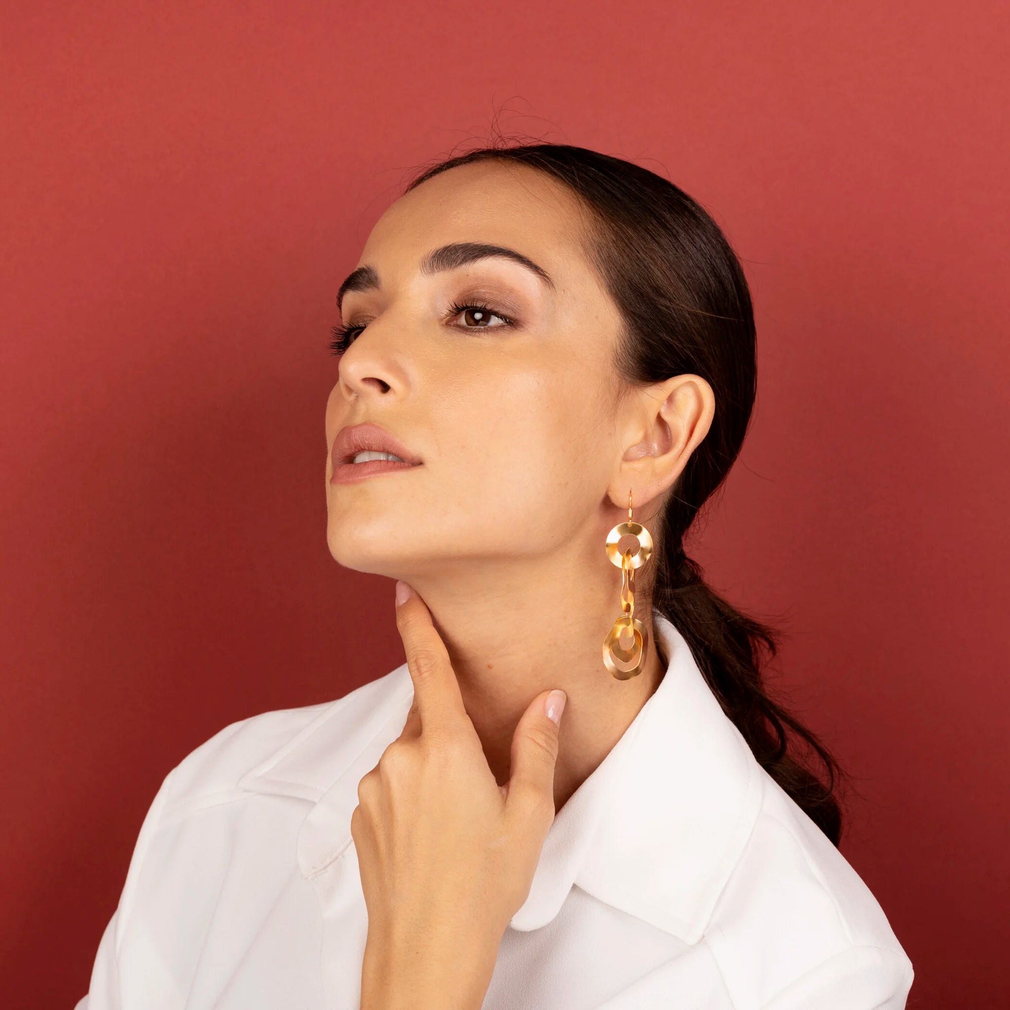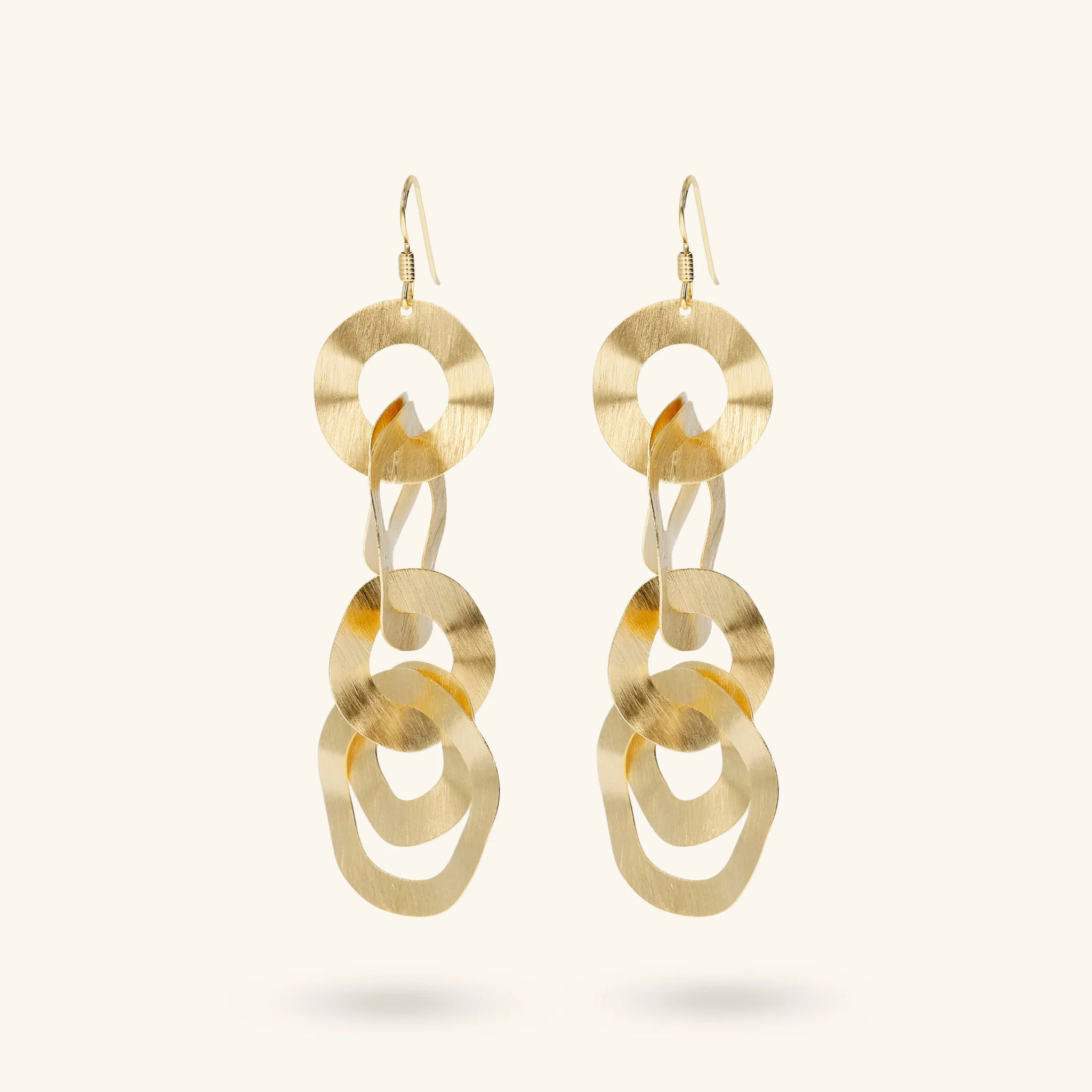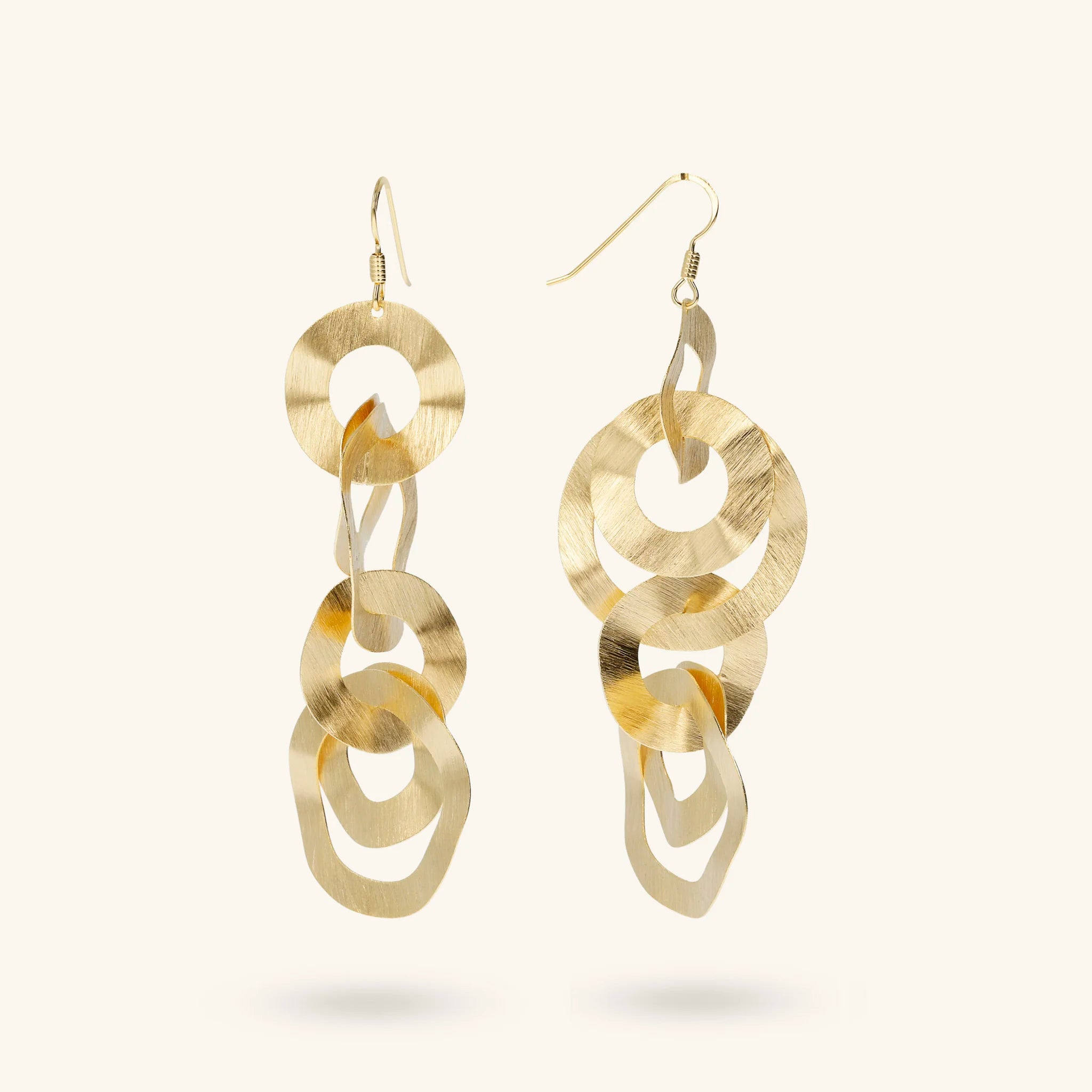 Orecchini Pendenti con Anelli Superficie Irregolare e Satinata