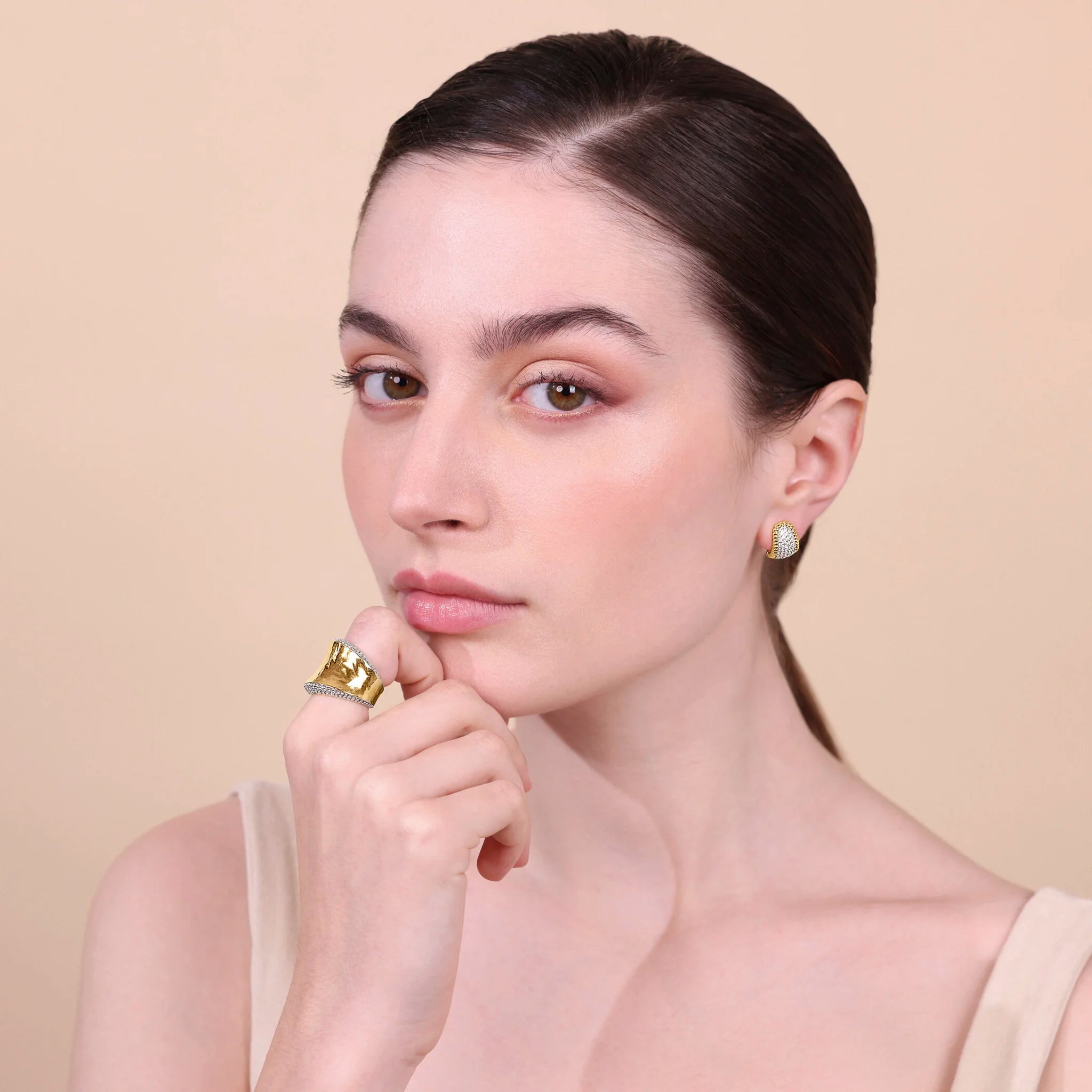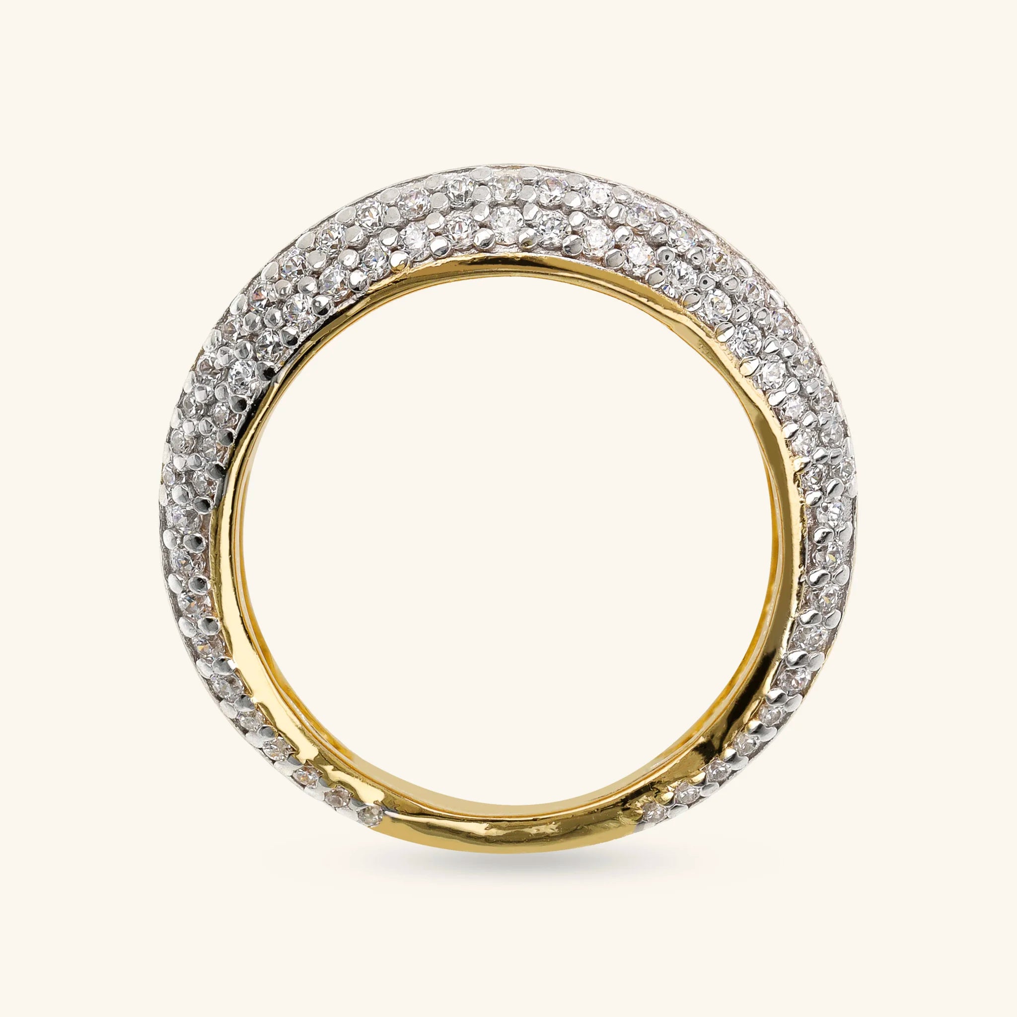 Anello a Fascia Martellato con Pavé in Cubic Zirconia