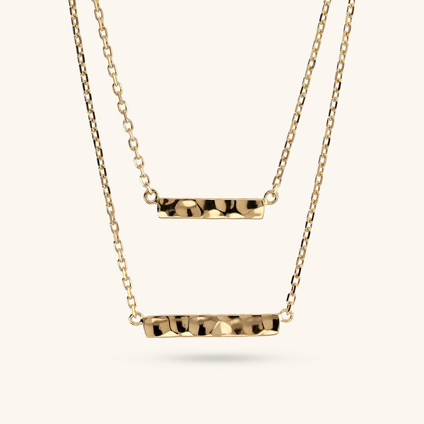 Collana multi-filo Etrusca Gioielli realizzata in lega Golden, placcata Oro giallo 18kt, con 10 file graduate di maglie ovali martellate. Lunghezza 56+x cm di estensione. Chiusura a moschettone.